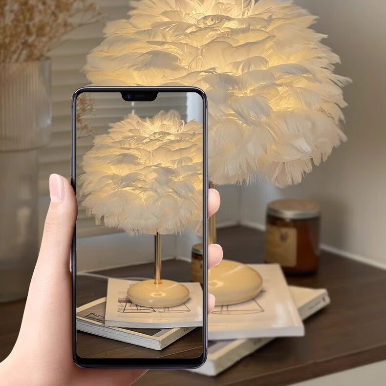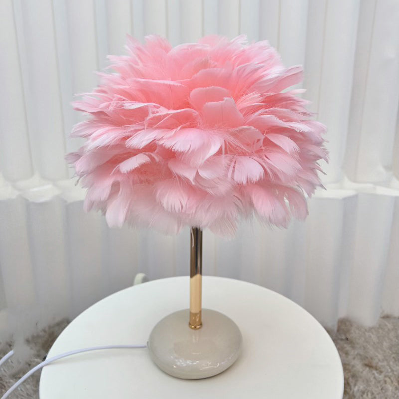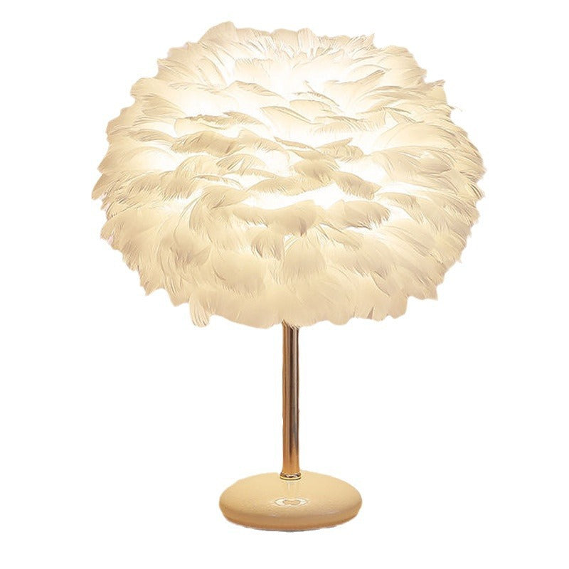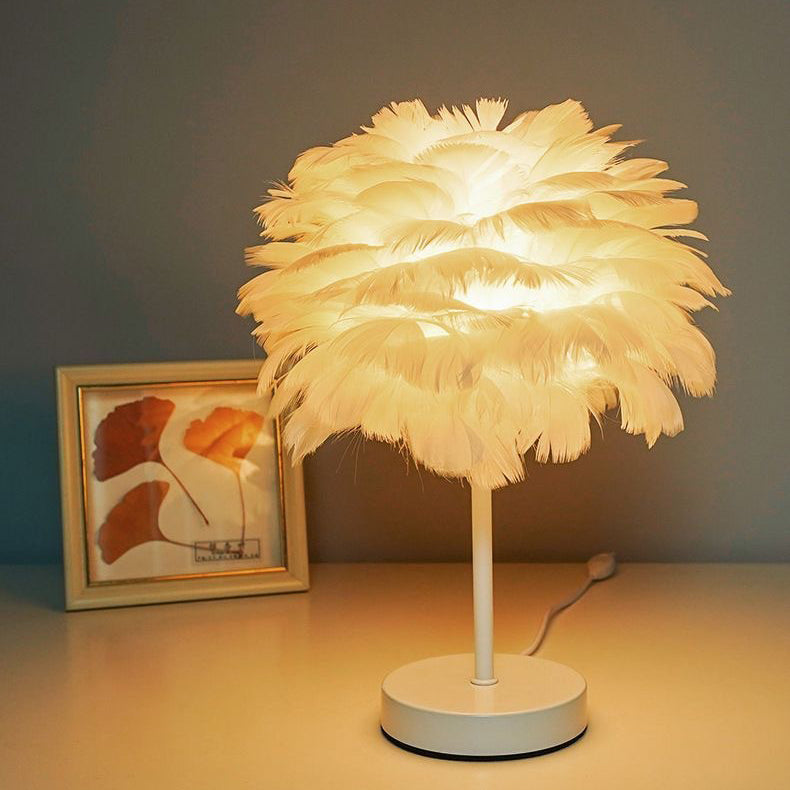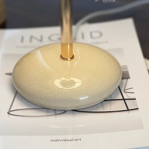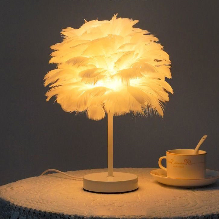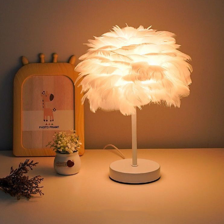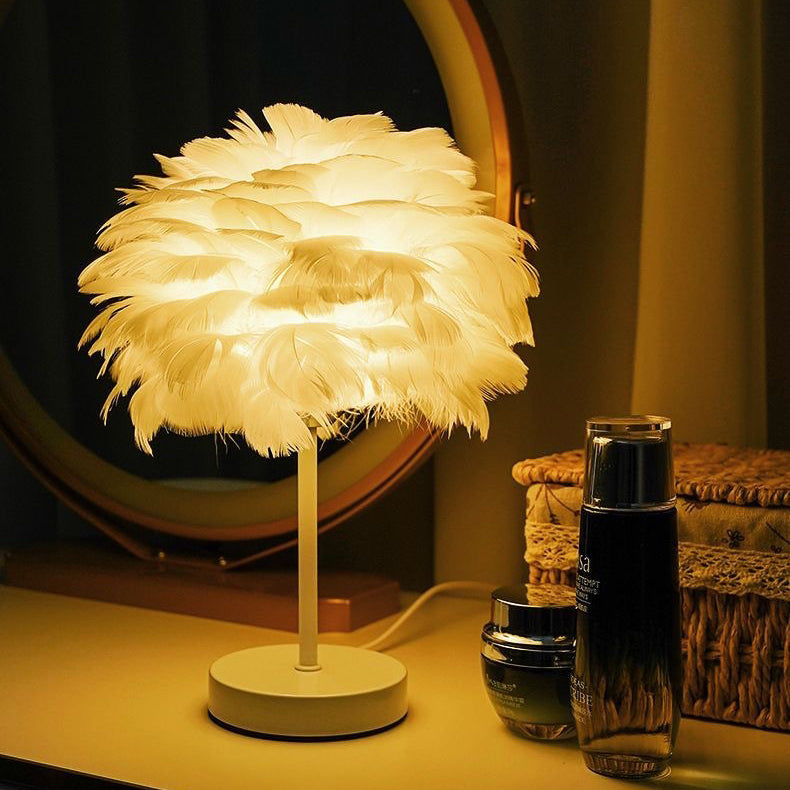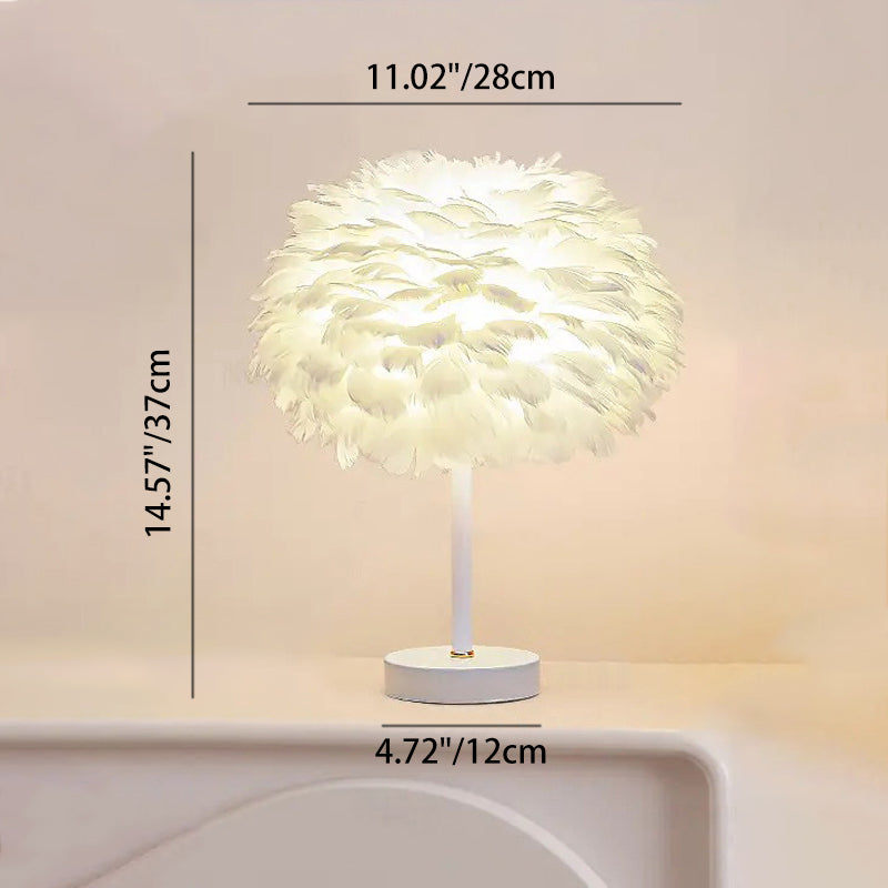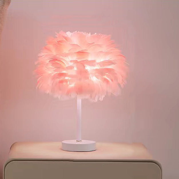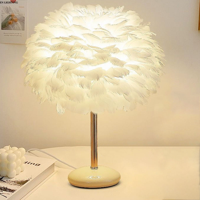 Contemporary Creative Feather Oval Shade Ice Cracked Ceramic Base 1-Light Table Lamp For Bedroom
