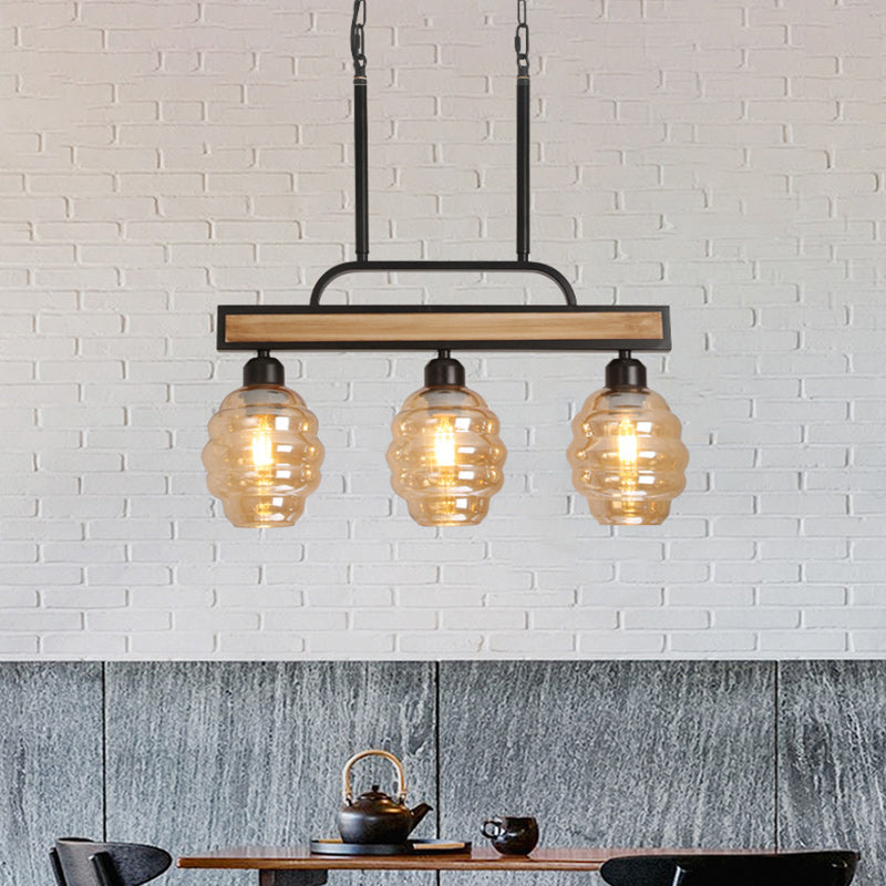 現代的でクリエイティブな鉄と木、ガラス、ハニージャー型、3/4ライトアイランドライトシャンデリア、ダイニングルーム用