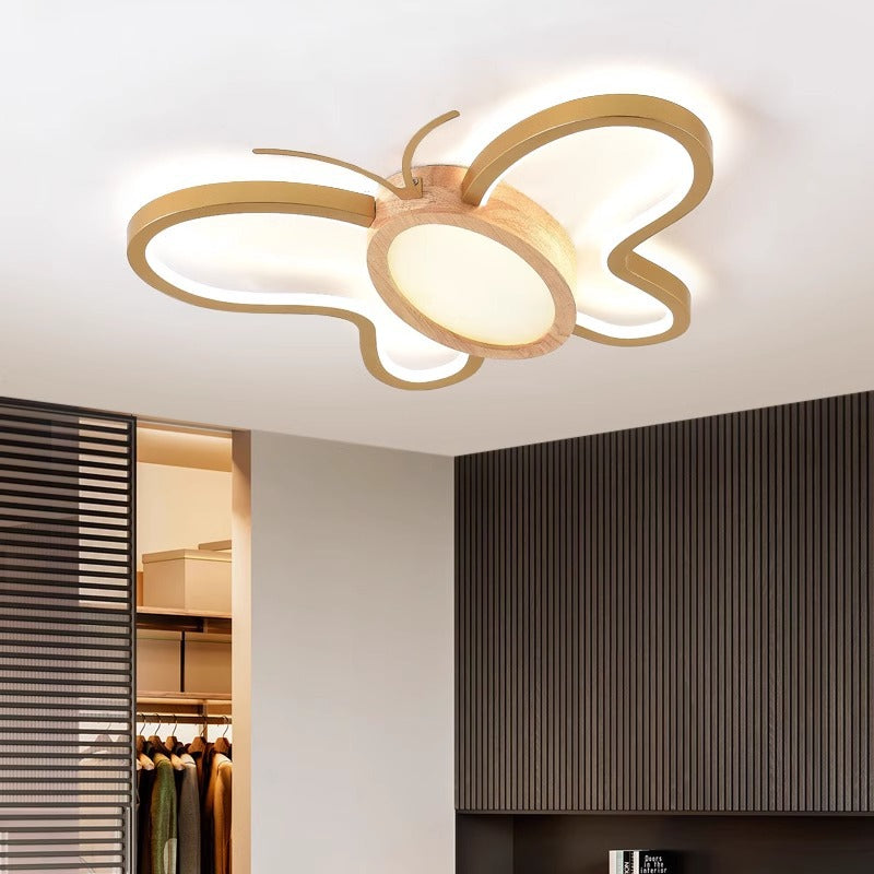 現代的でクリエイティブな子供用バタフライシェイプハードウェアアクリルラバーウッドLEDフラッシュマウントシーリングライト寝室用