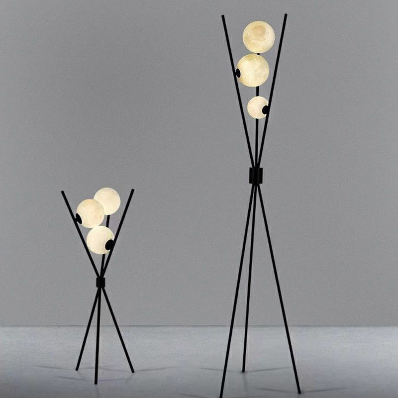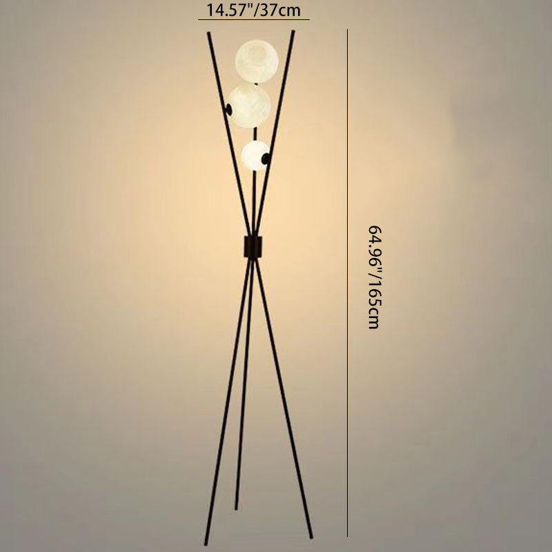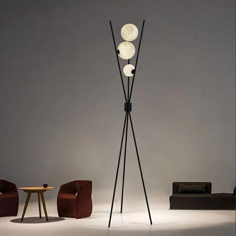 Contemporary Creative PLA 3D Moon Shade Iron Geometric Straight Line 3-Light Standing Floor Lamp For Living Room