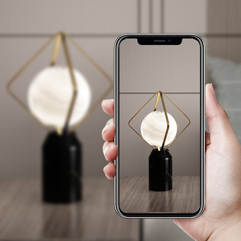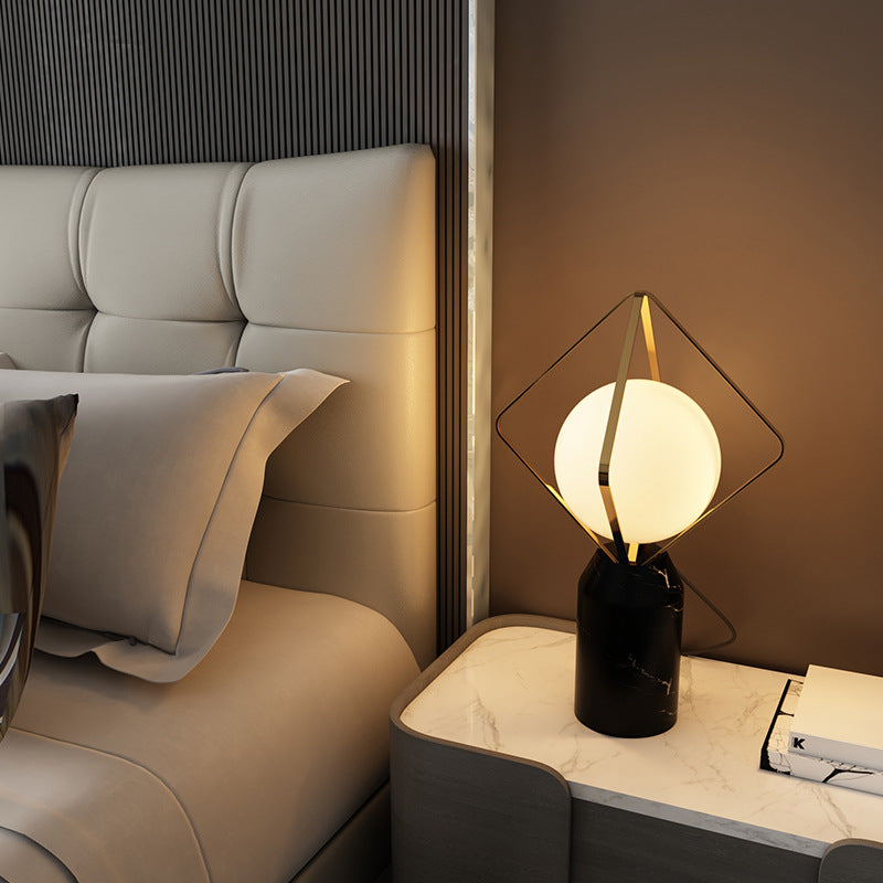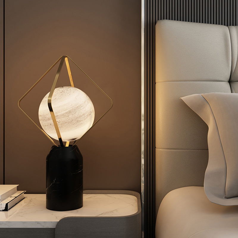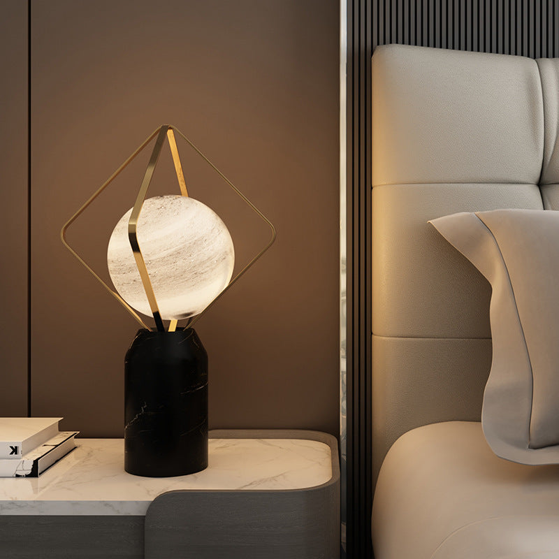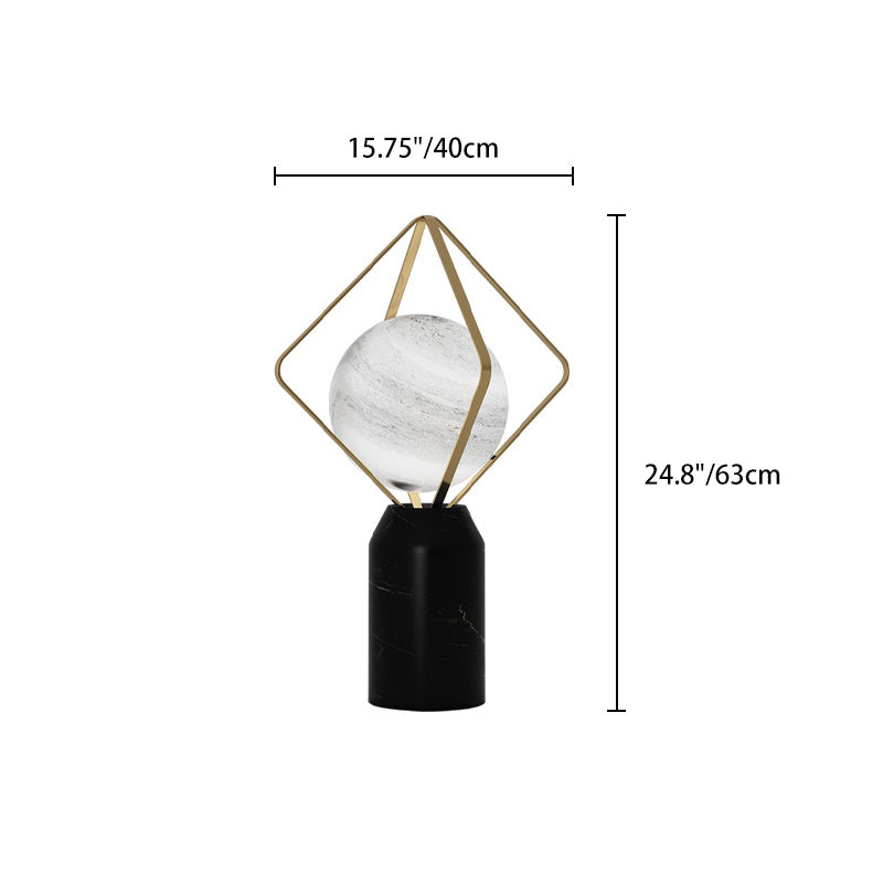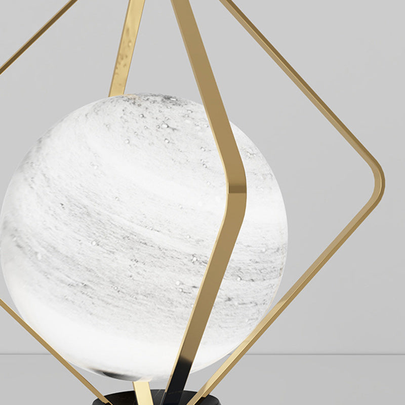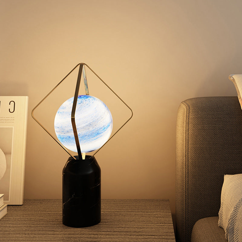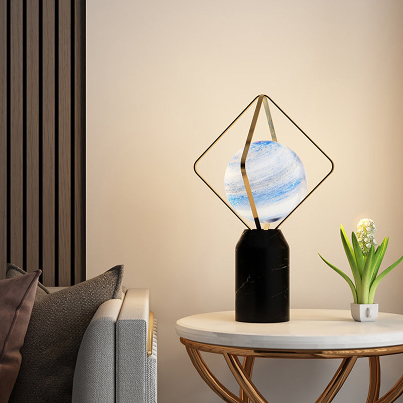 Contemporary Creative Planet Glass Shade Iron Rhombus Frame Marble Base 1-Light Table Lamp For Home Office