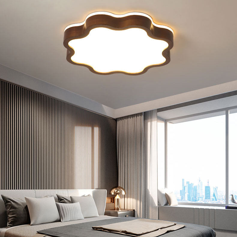 現代的でクリエイティブなプラム型の木製アクリル製LEDフラッシュマウントシーリングライト(寝室用)