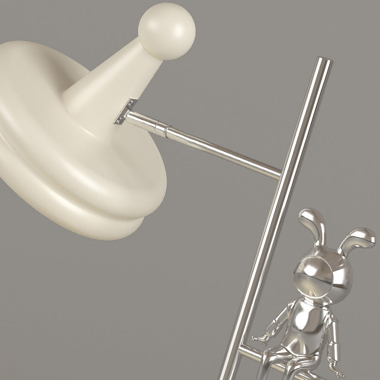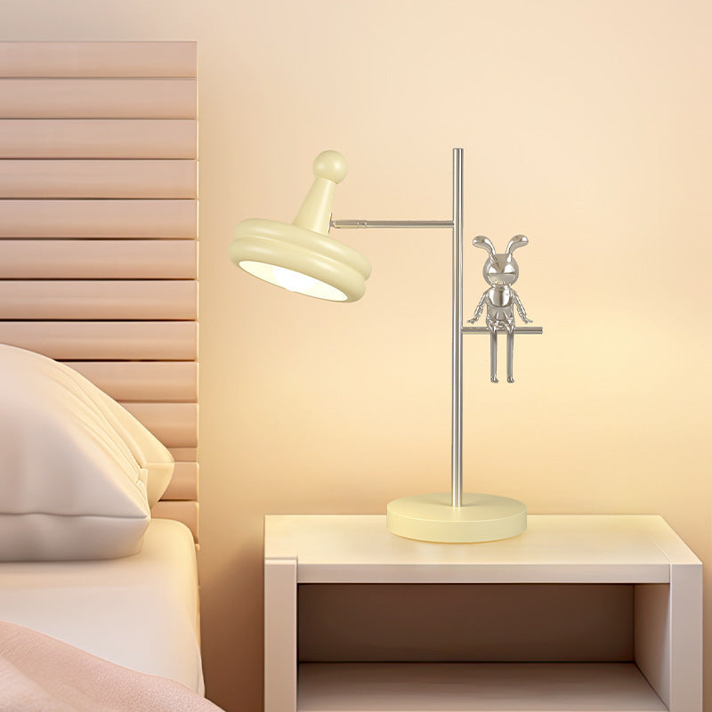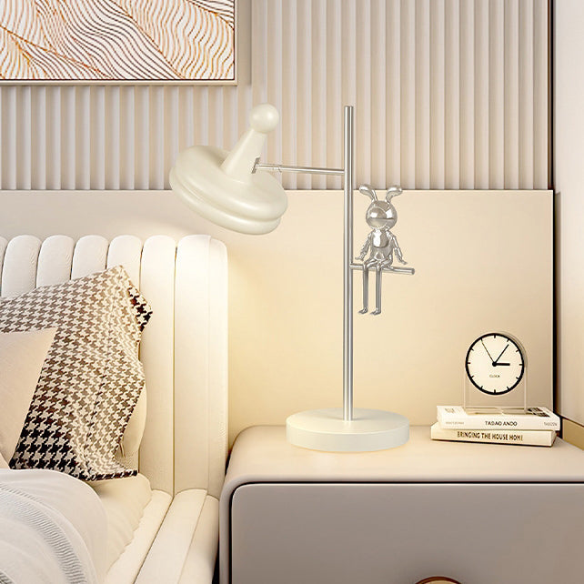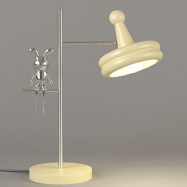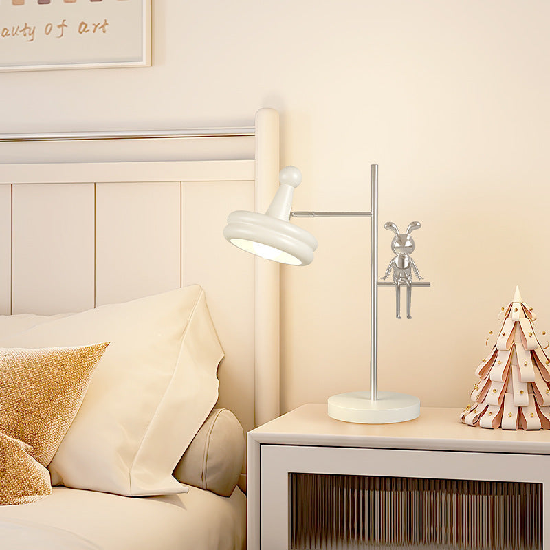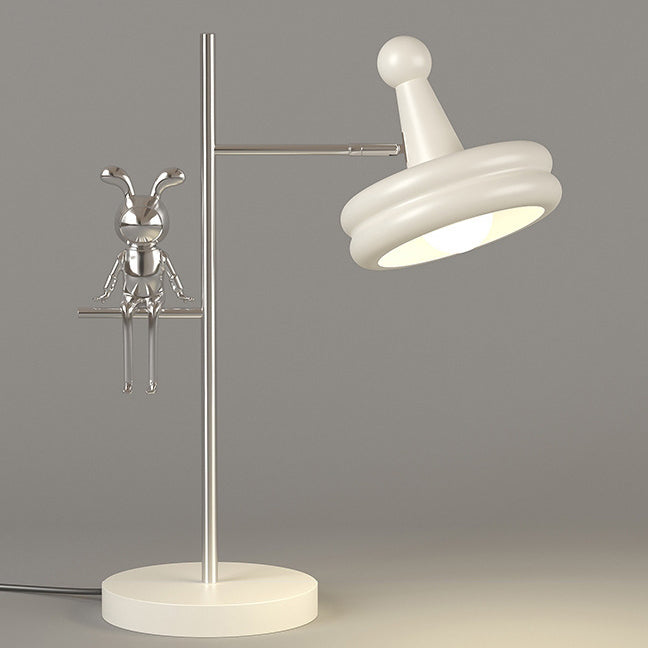 Contemporary Creative Rabbit Decoration Iron Hardware Adjustable Round Shade 1-Light Table Lamp For Bedroom