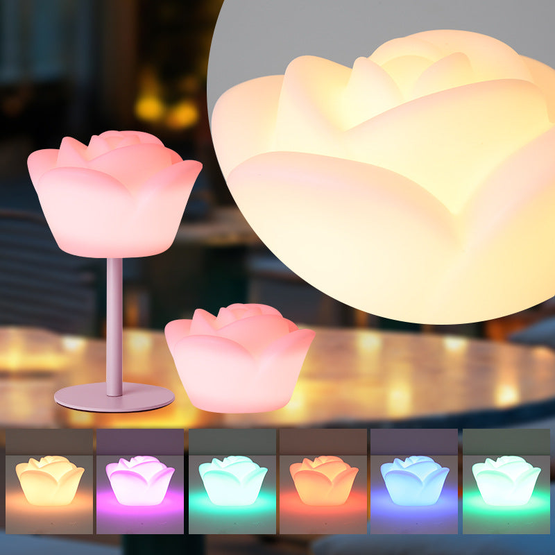Contemporary Creative Rechargeable Waterproof PE Rose LED Table Lamp Night Light For Bedside