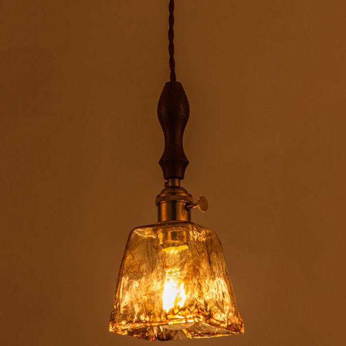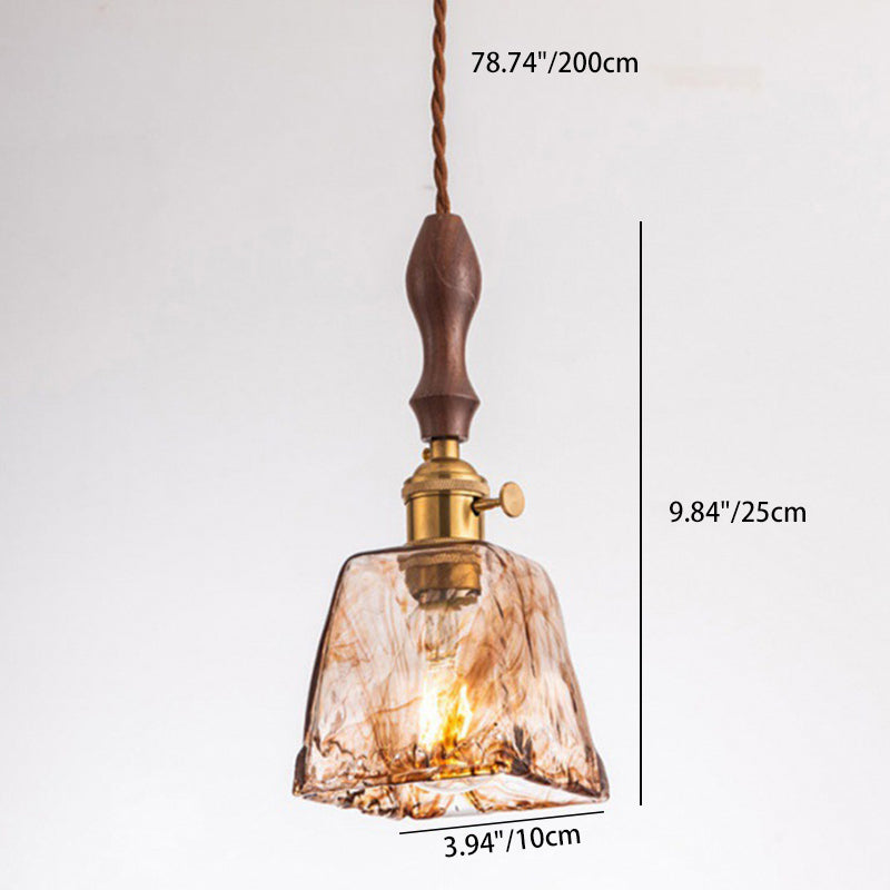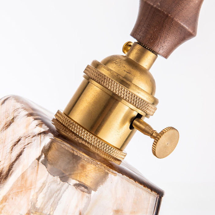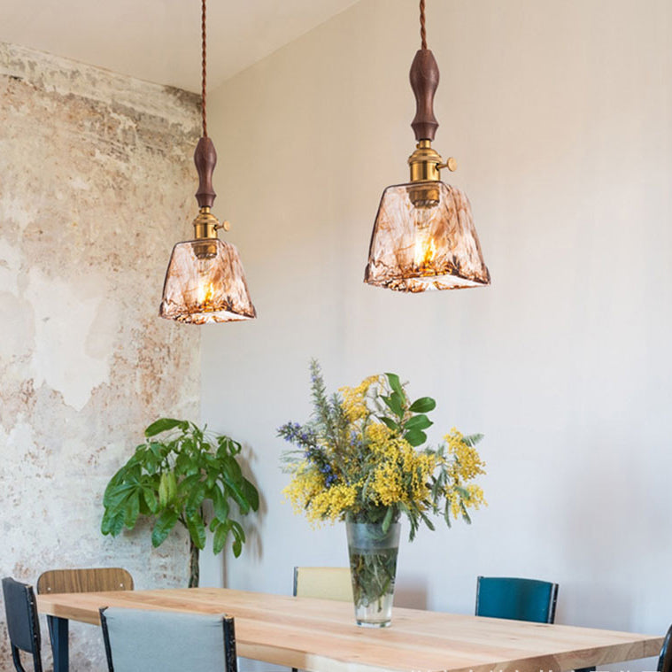現代的でクリエイティブなスクエア長方形の真鍮木製ガラス1灯ペンダントライトリビングルーム用