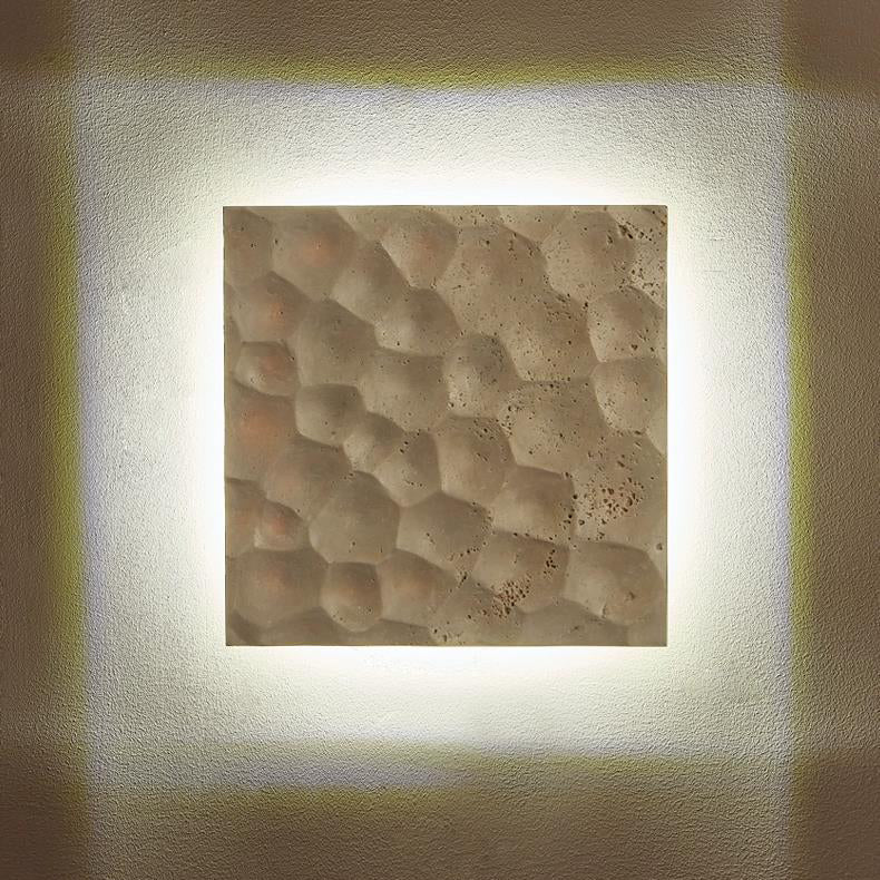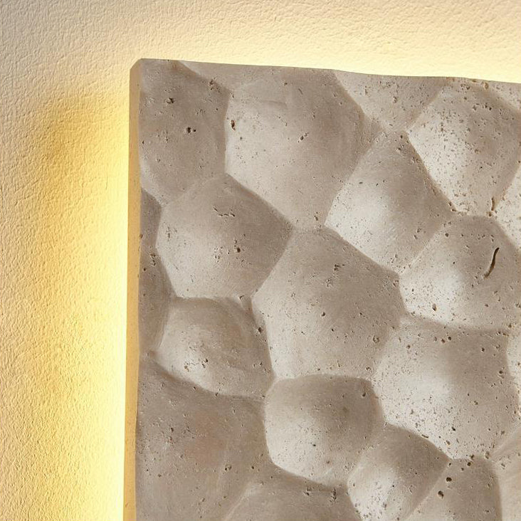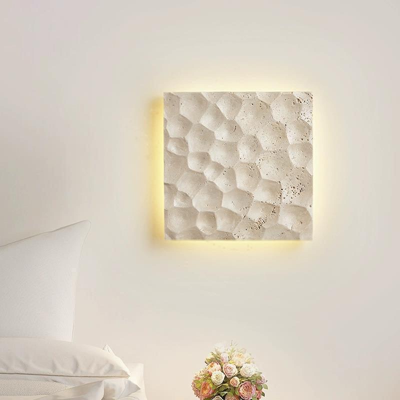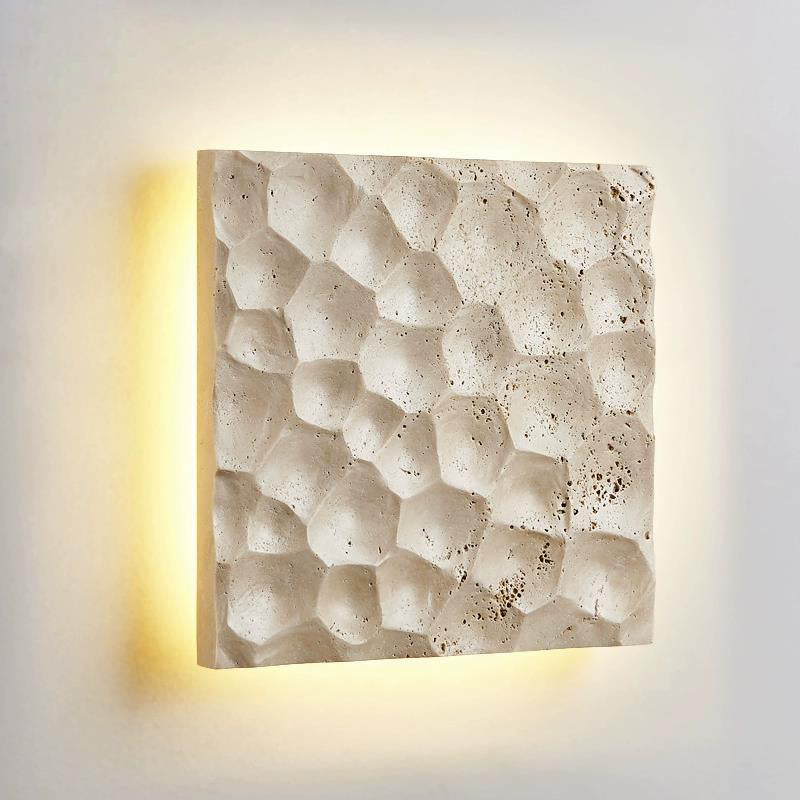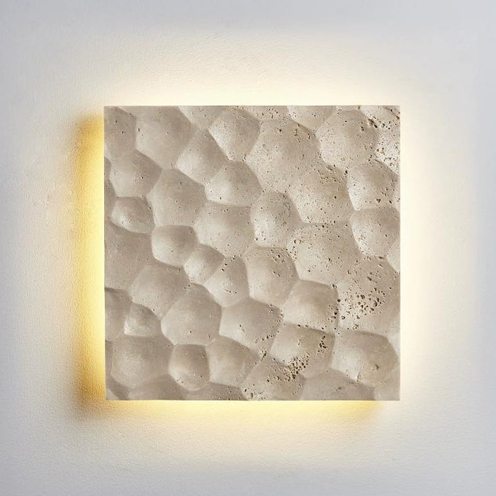 リビングルームに最適な、現代的でクリエイティブな石造りのスクエア型LEDウォールスコンセランプ