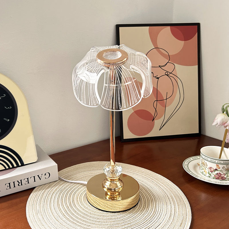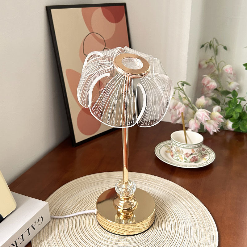 Contemporary Creative USB Petal Shape Round Metal Acrylic LED Table Lamp For Bedroom
