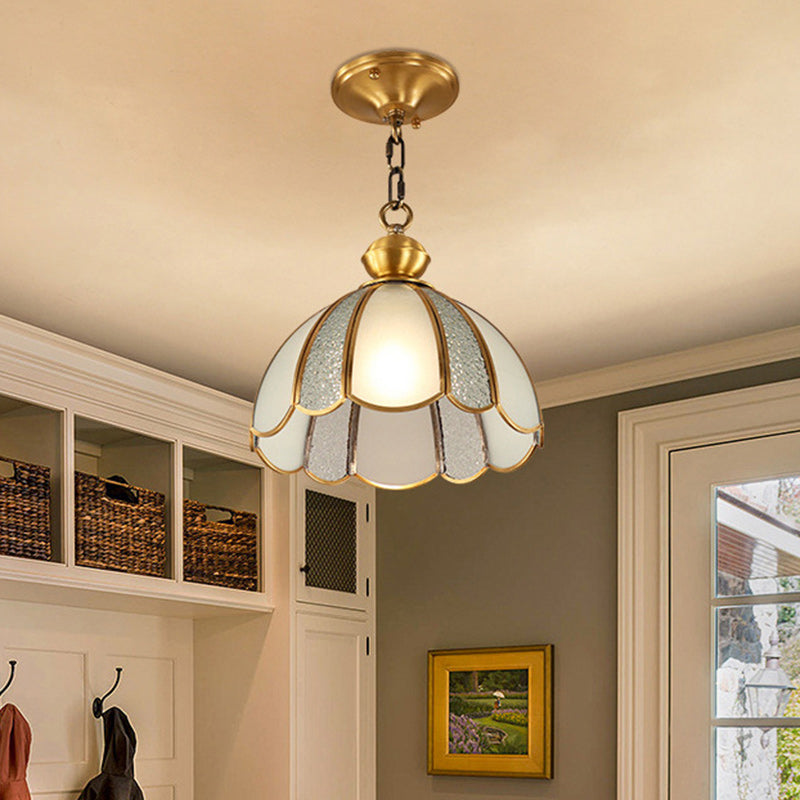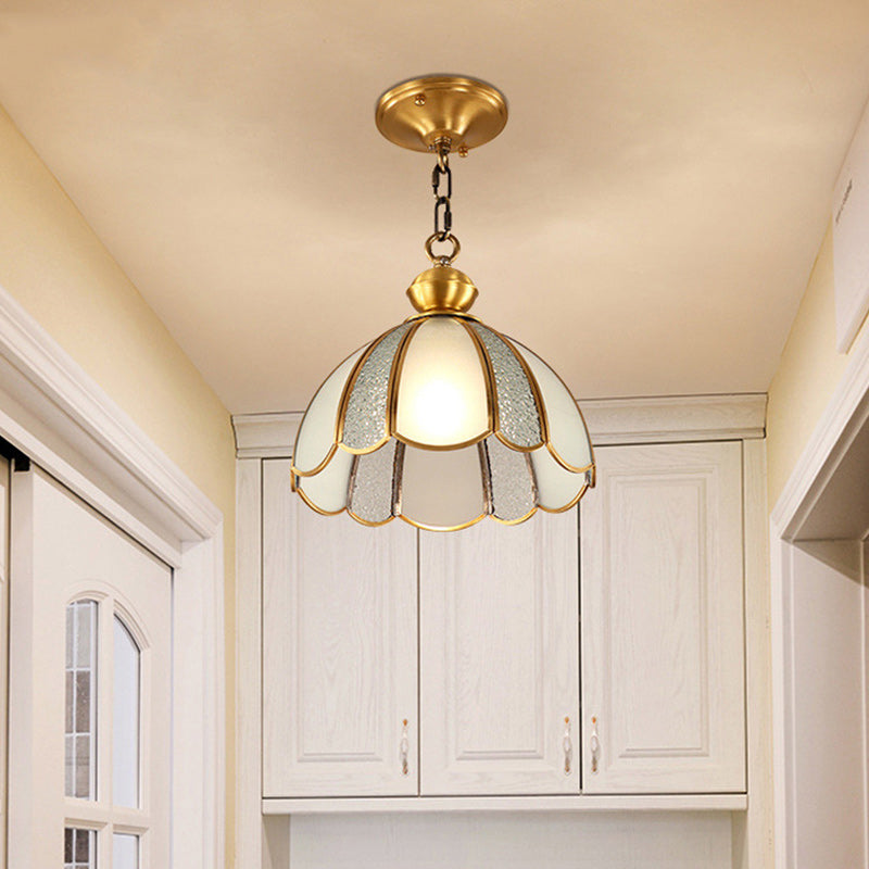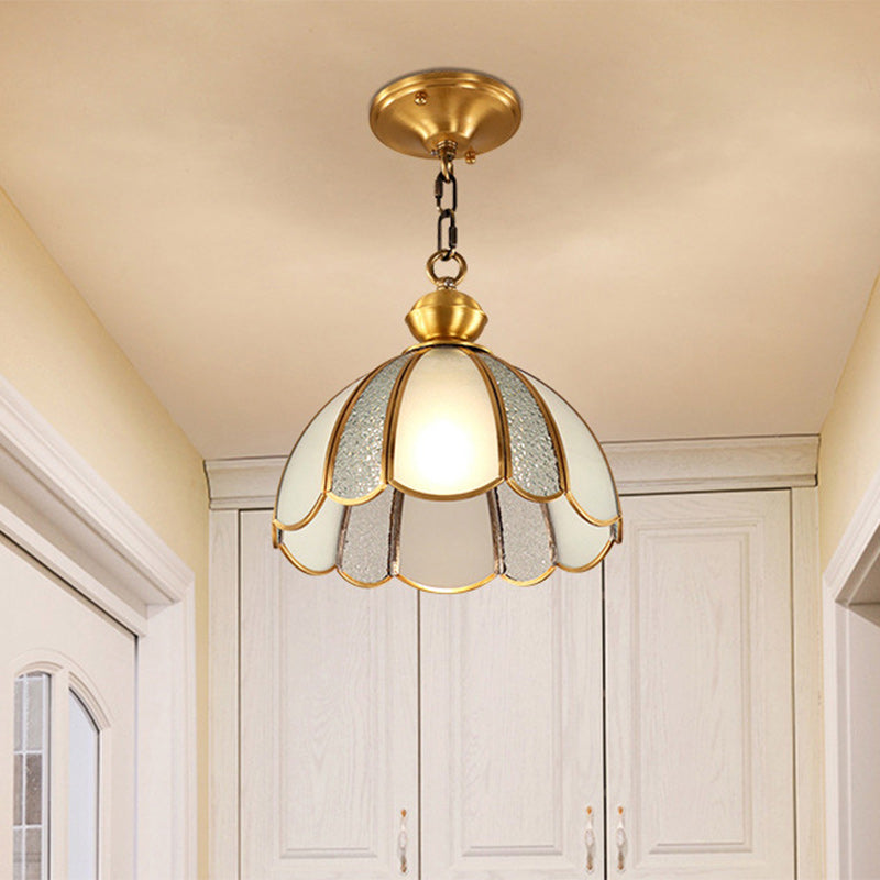 リビングルームに最適な、現代的な高級ドーム型銅ガラス1灯ペンダントライト