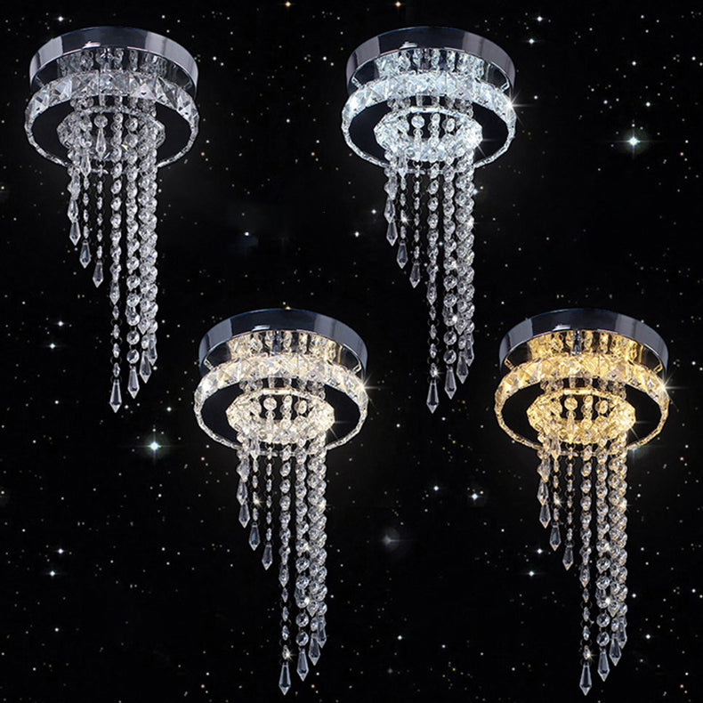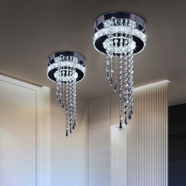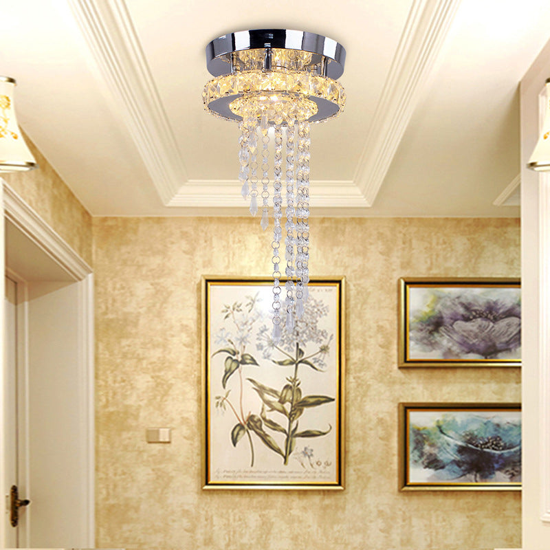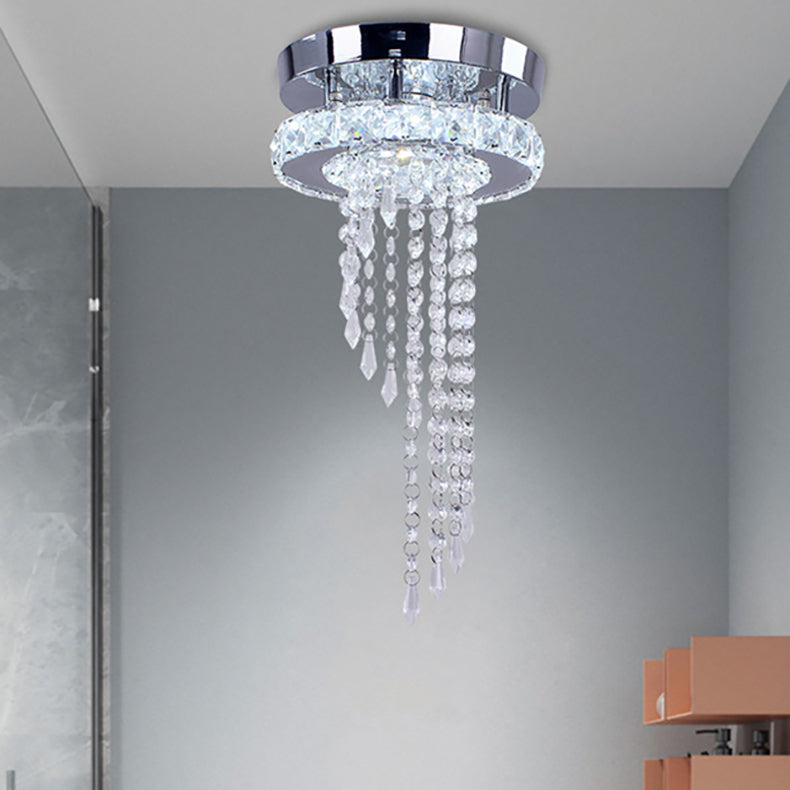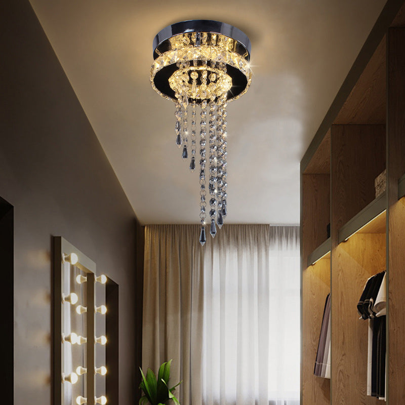 リビングルーム用、現代的な高級二重層ラウンドステンレススチールクリスタルビーズLEDフラッシュマウントシーリングライト