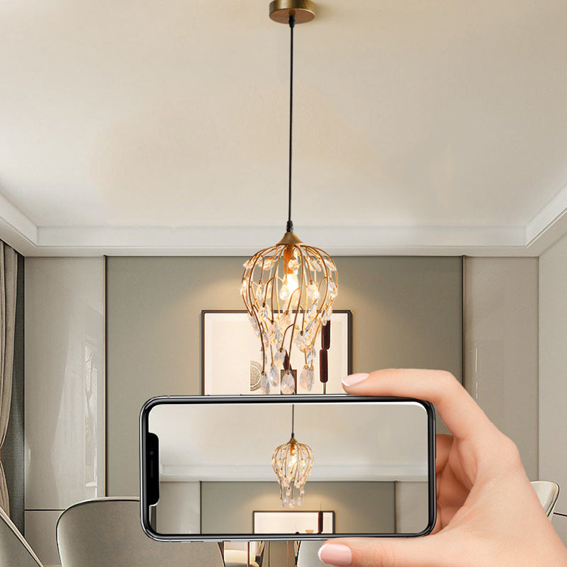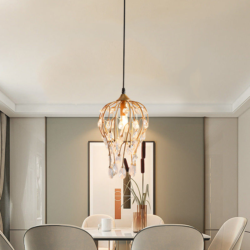 リビングルームに最適な、現代的な高級ドラムガラスアイアンペンダントライト1灯