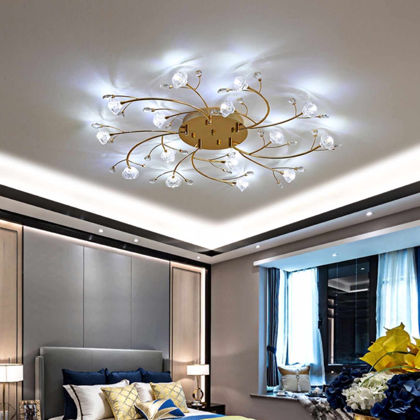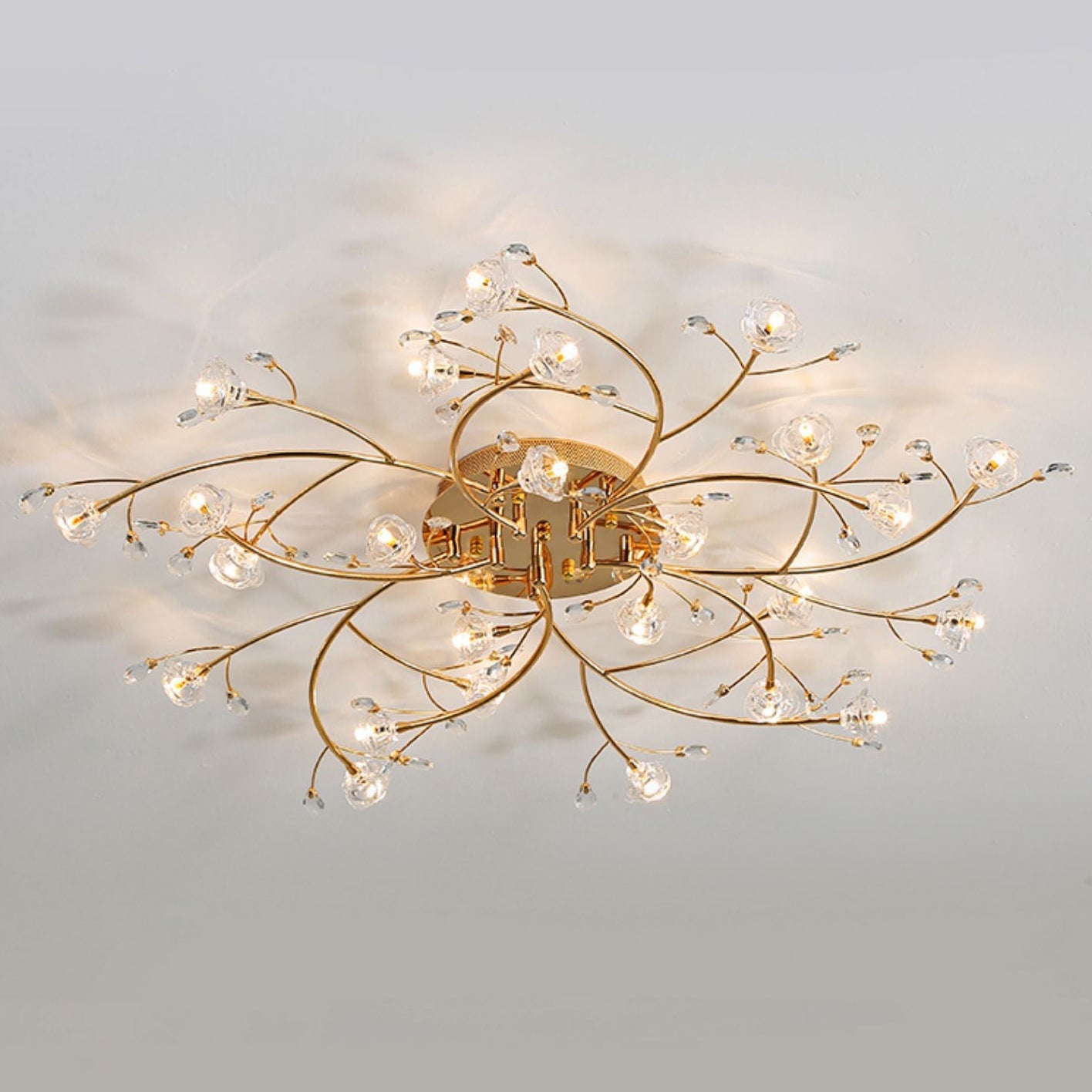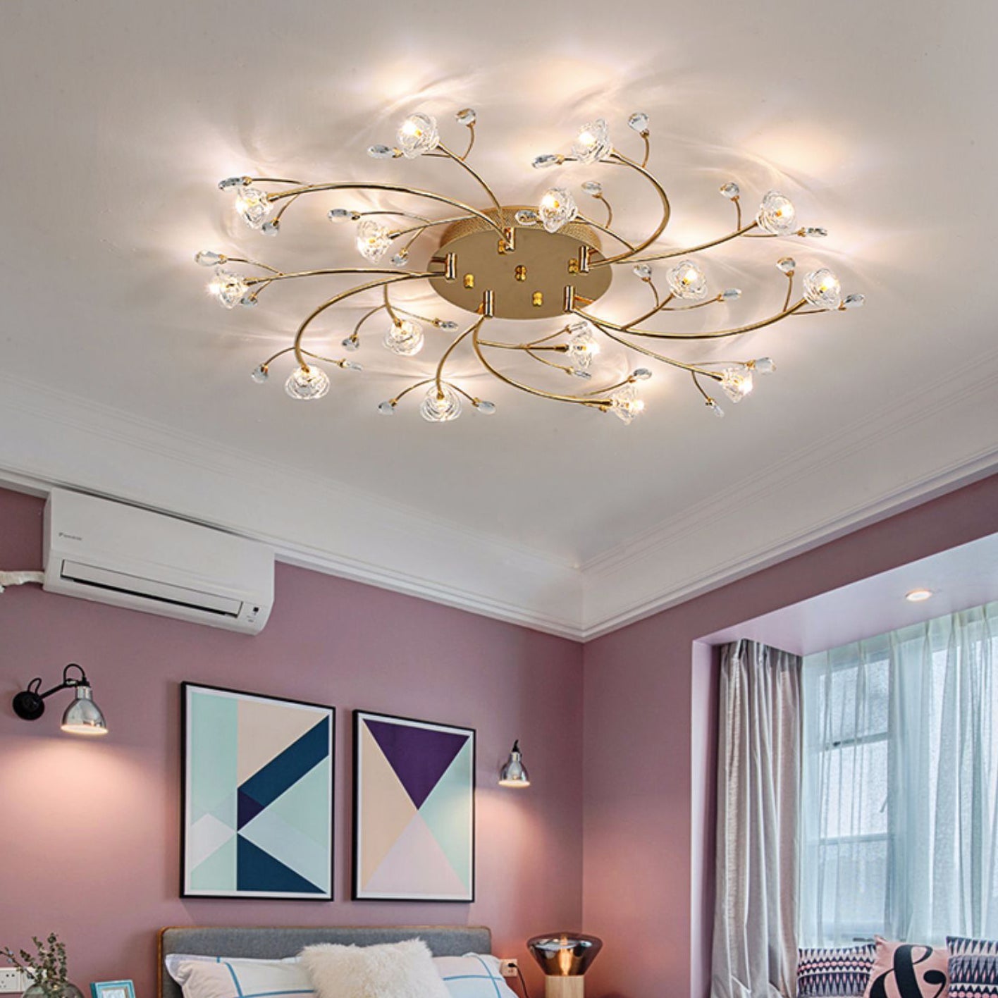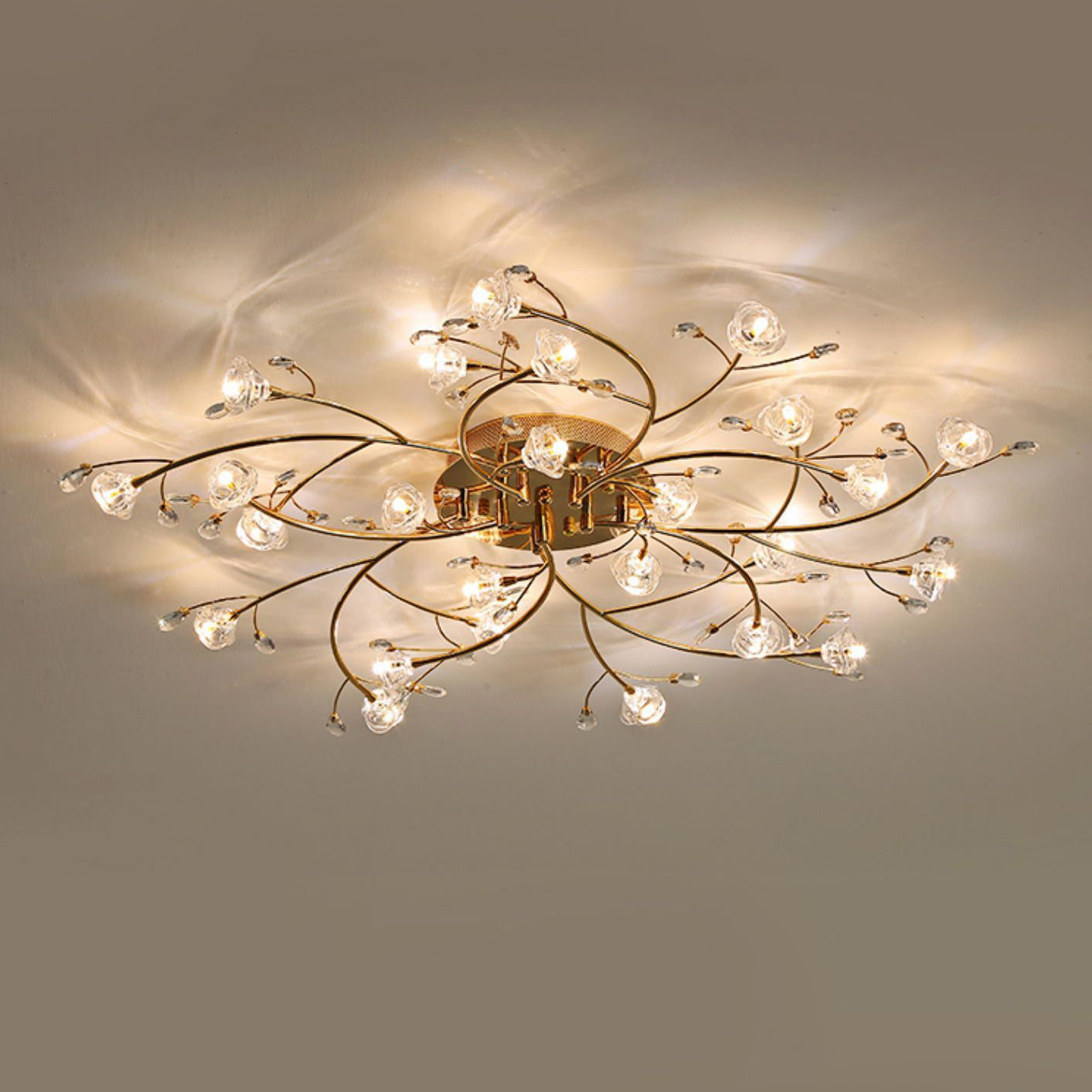 現代的な高級ハードウェアクリスタルガラスフラワーシェードスパイラルブランチ15/25/30ライトフラッシュマウントシーリングライト寝室用