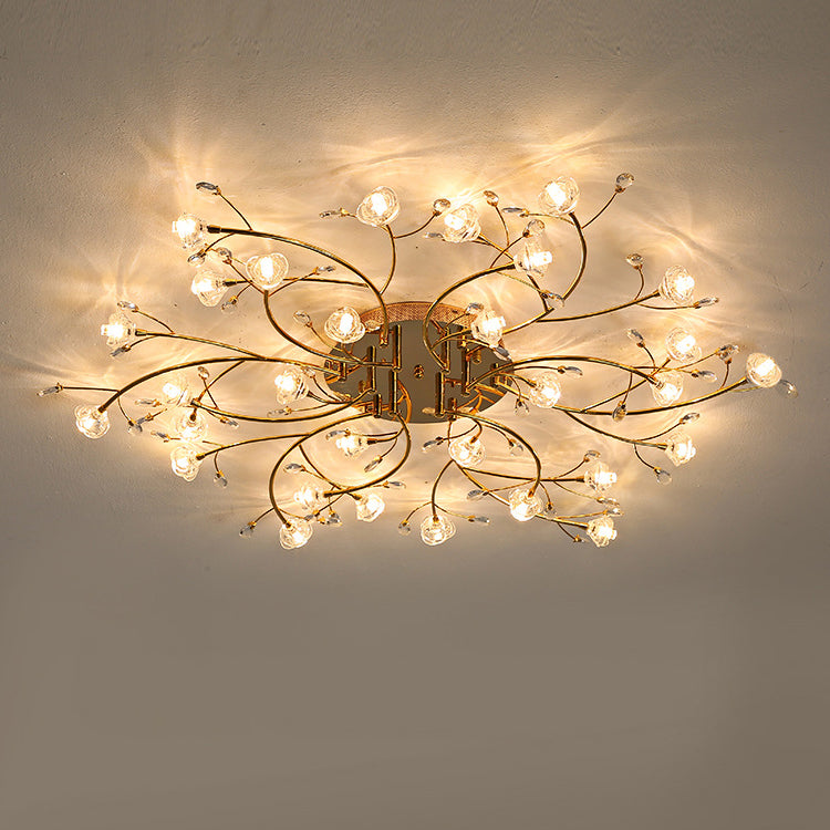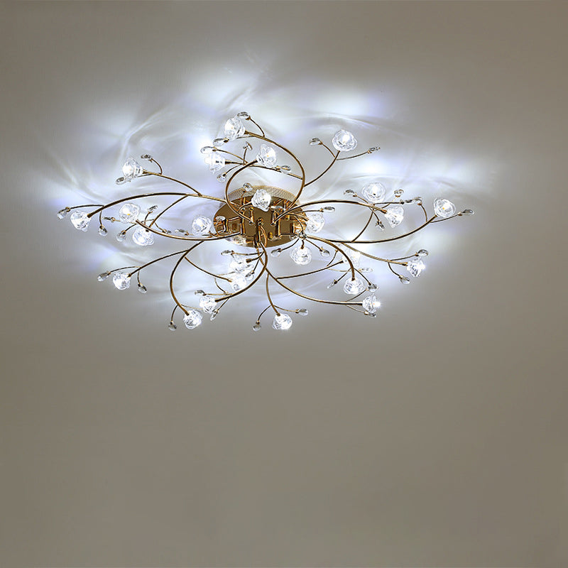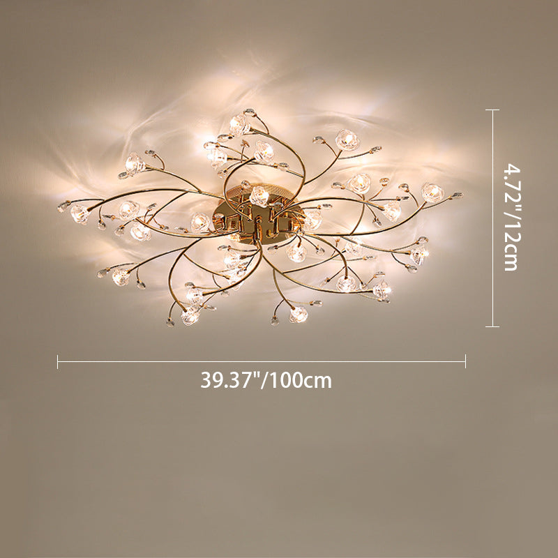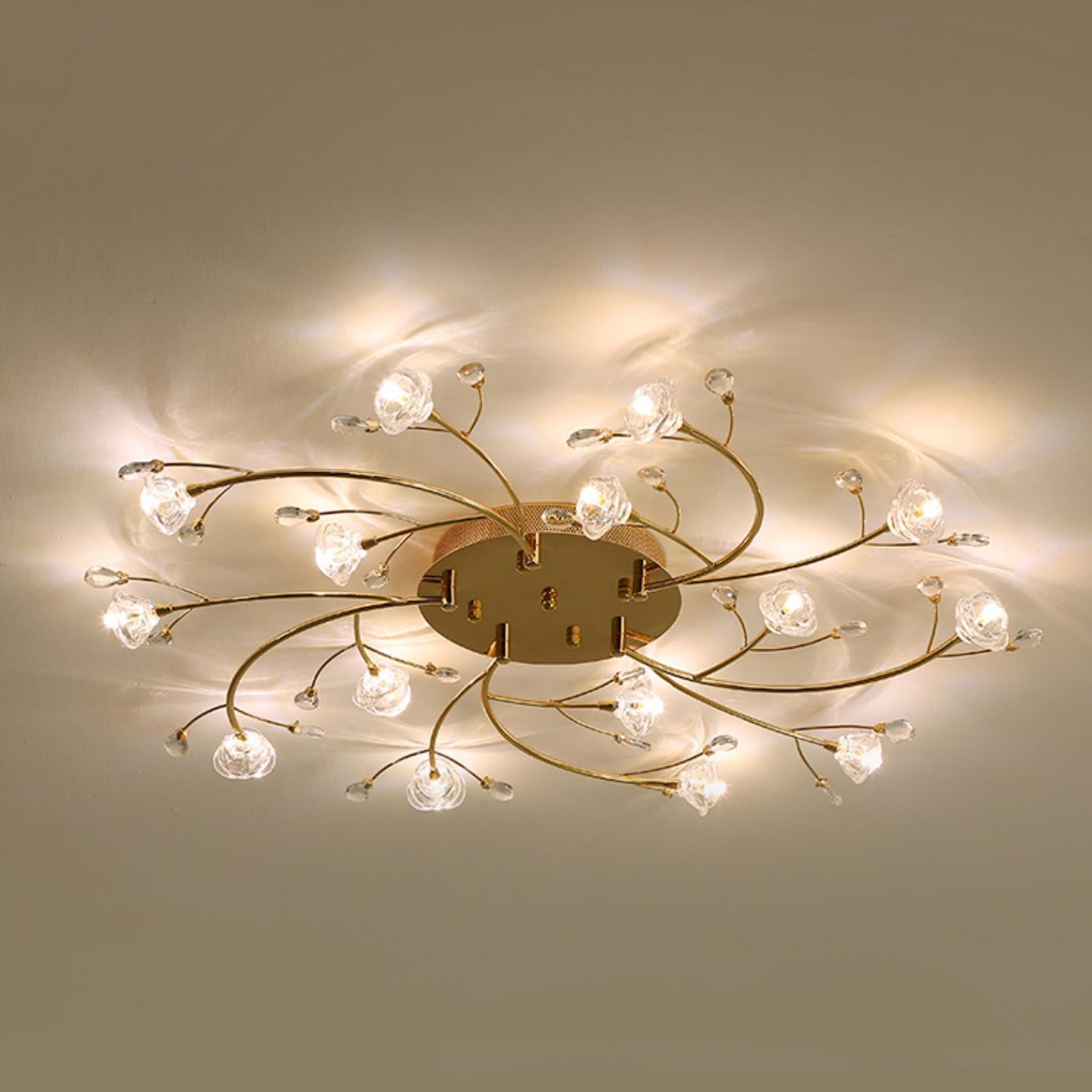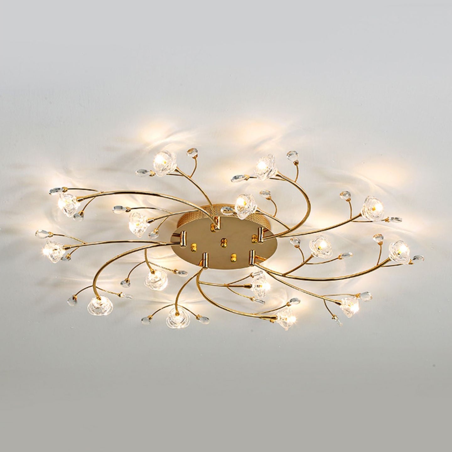 現代的な高級ハードウェアクリスタルガラスフラワーシェードスパイラルブランチ15/25/30ライトフラッシュマウントシーリングライト寝室用