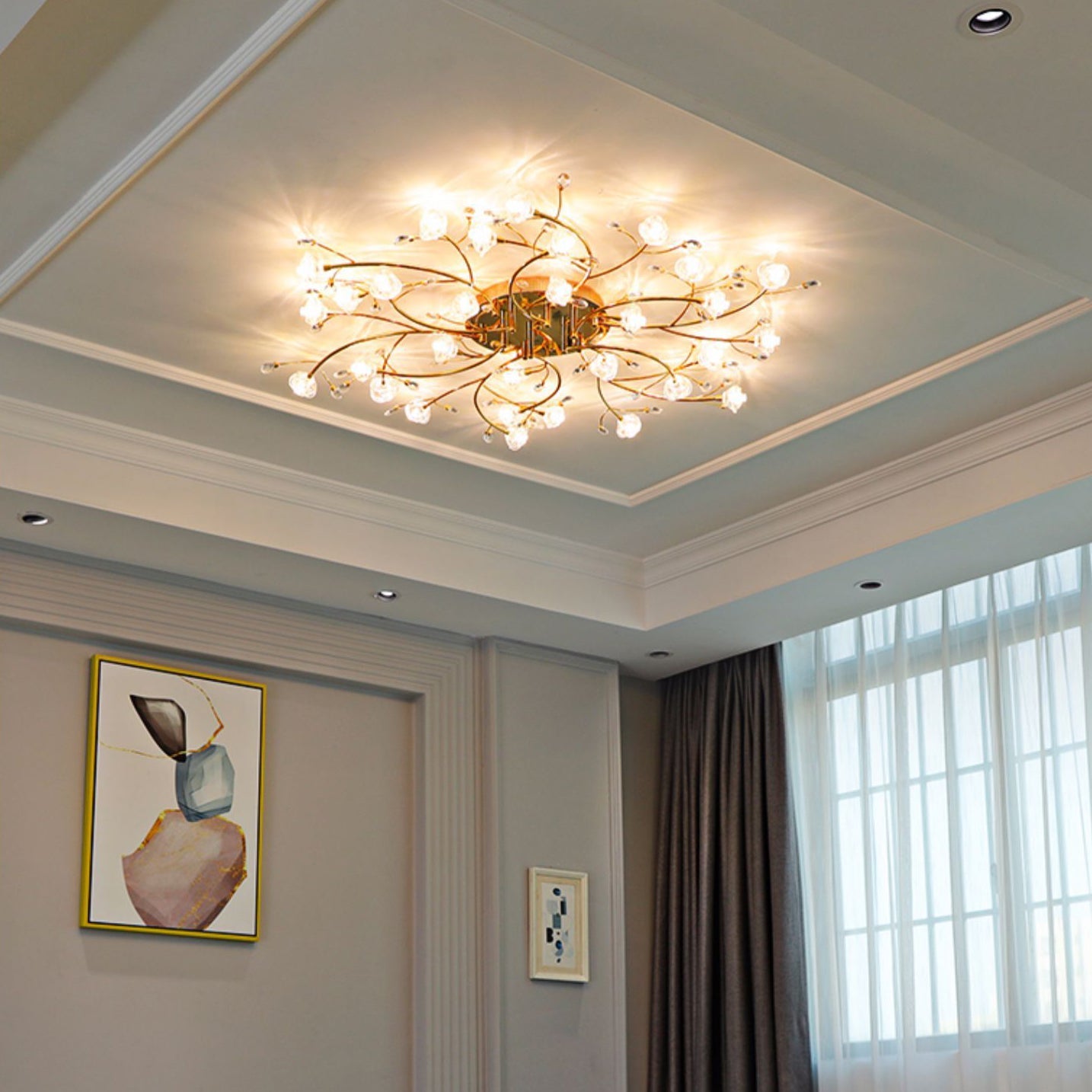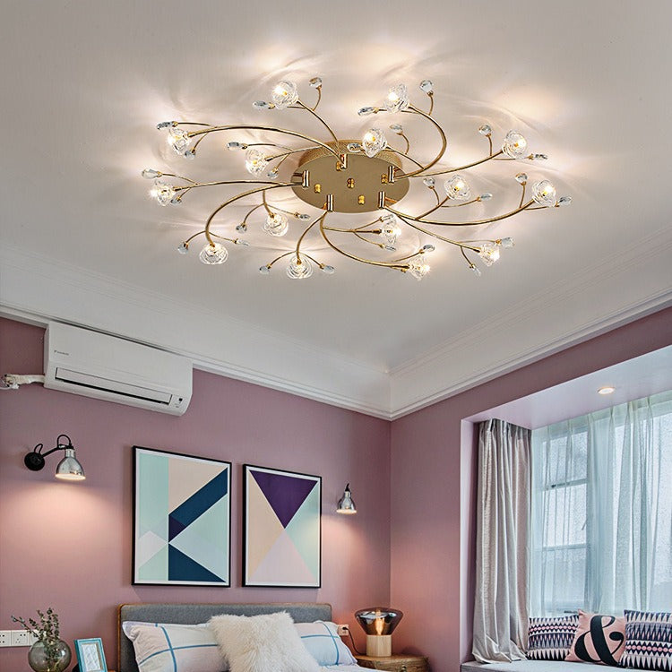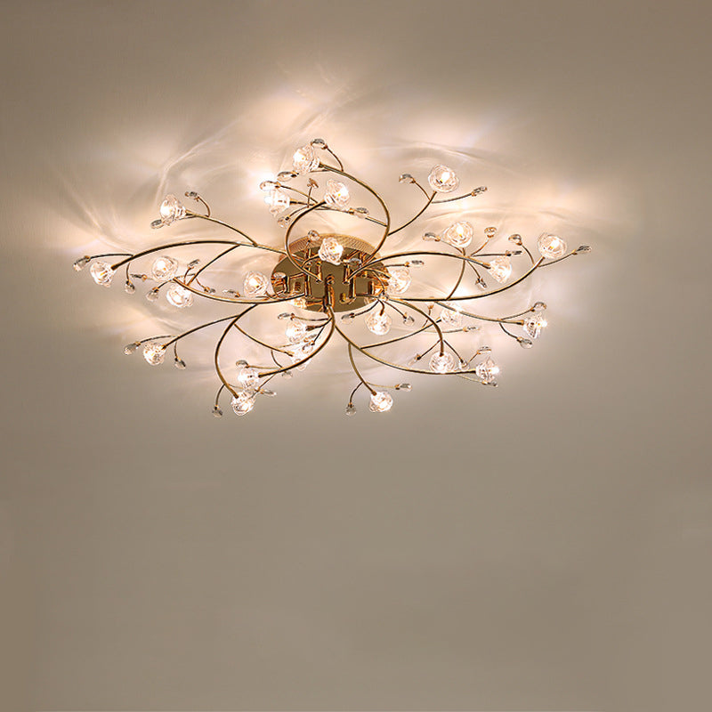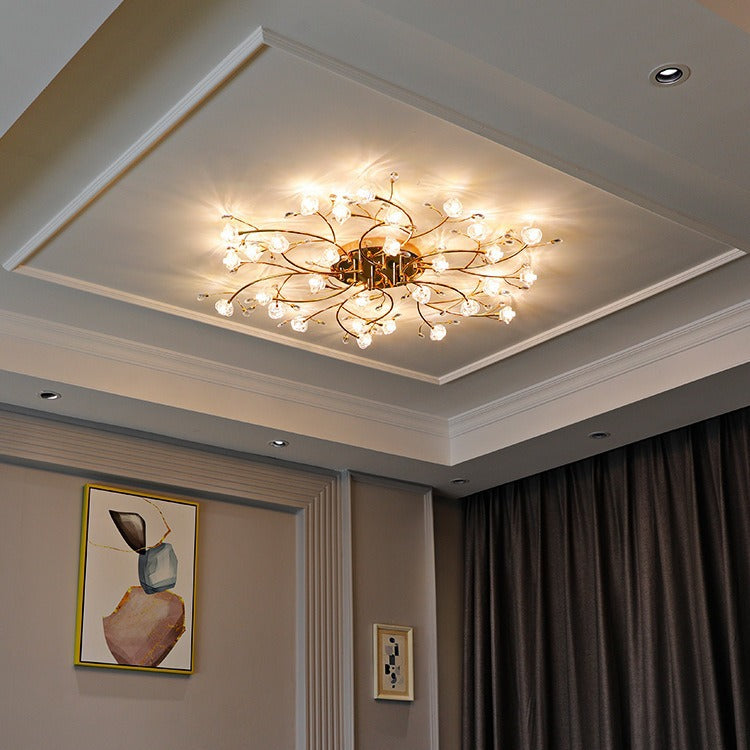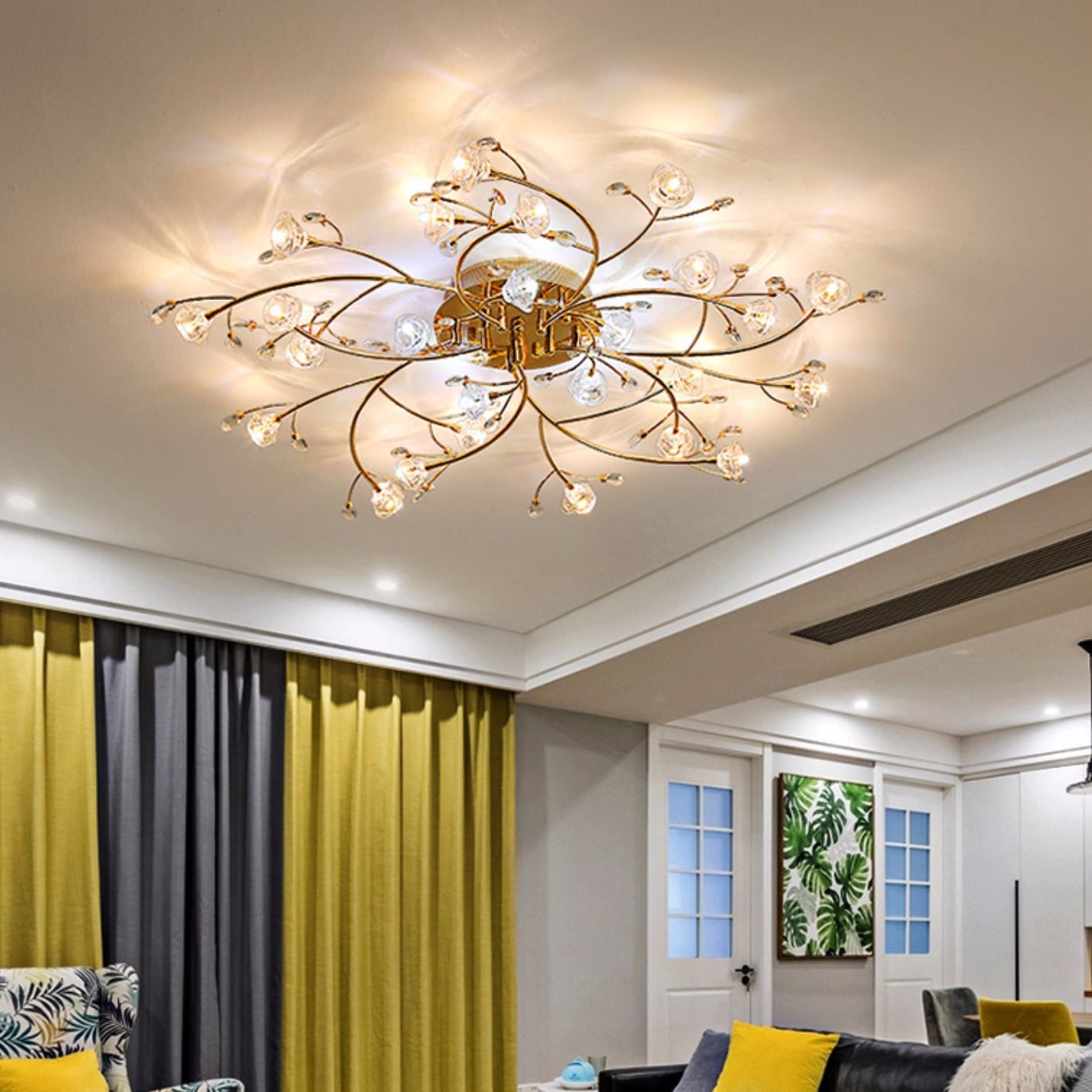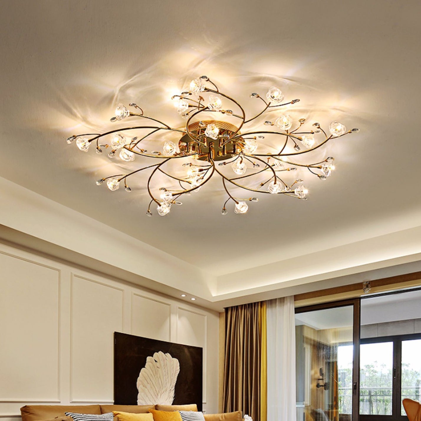 現代的な高級ハードウェアクリスタルガラスフラワーシェードスパイラルブランチ15/25/30ライトフラッシュマウントシーリングライト寝室用