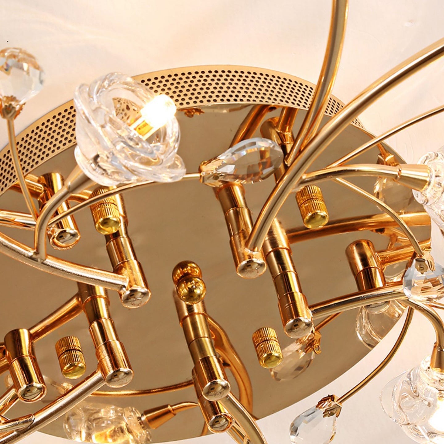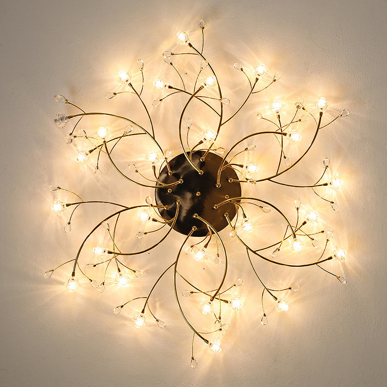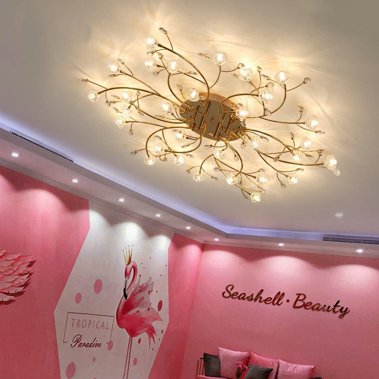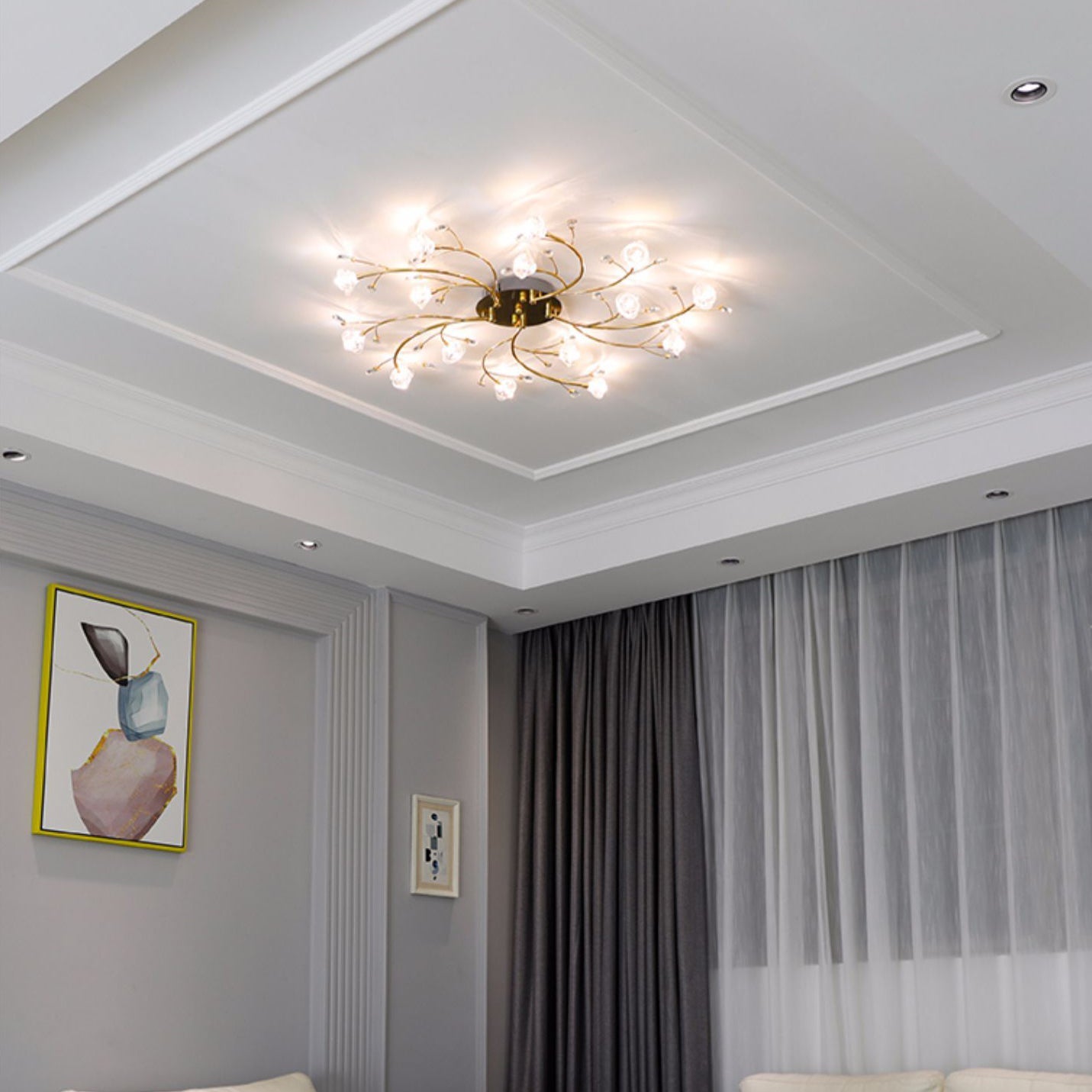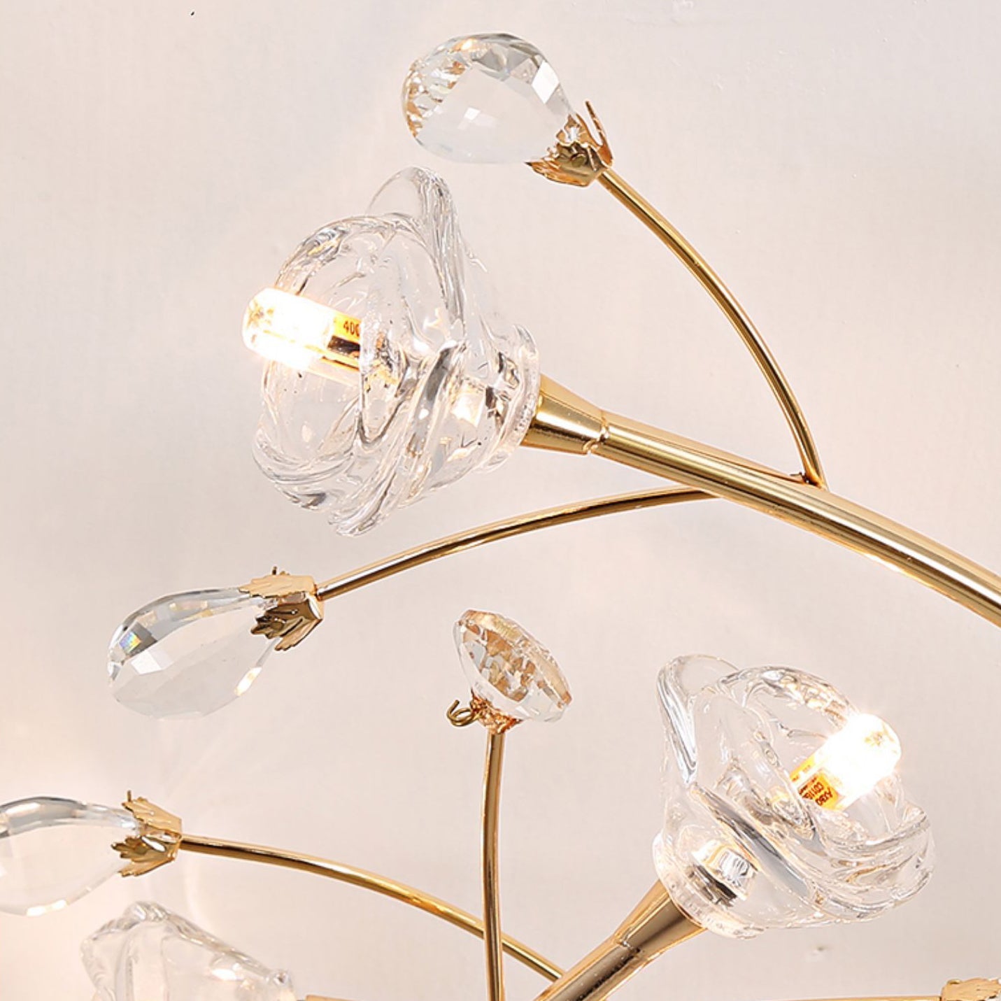 現代的な高級ハードウェアクリスタルガラスフラワーシェードスパイラルブランチ15/25/30ライトフラッシュマウントシーリングライト寝室用