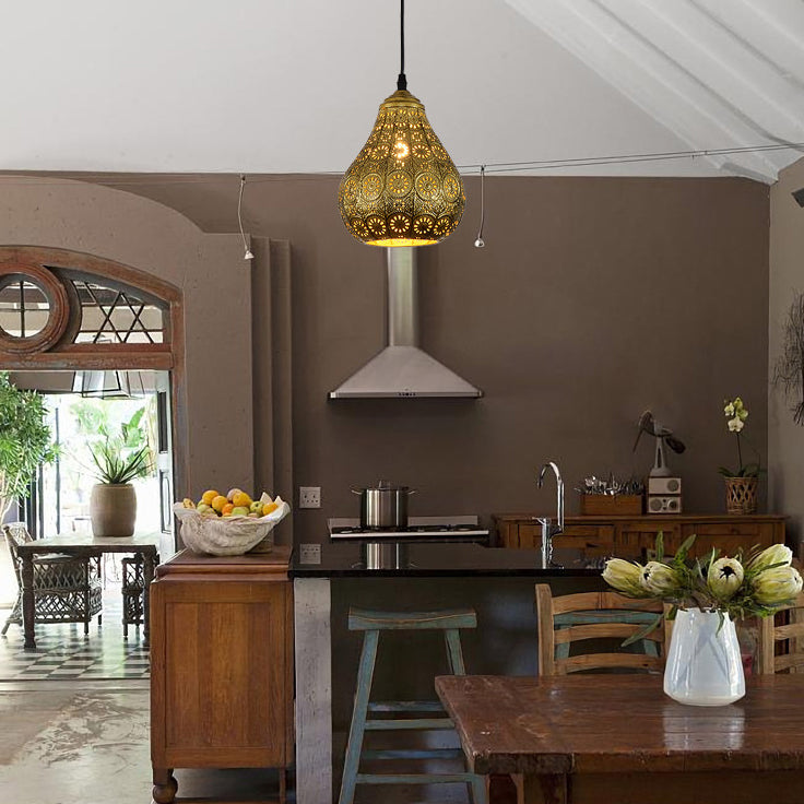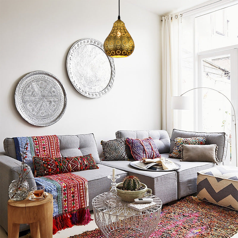 現代的で豪華な中空錬鉄ケージ1灯ペンダントライトリビングルーム用