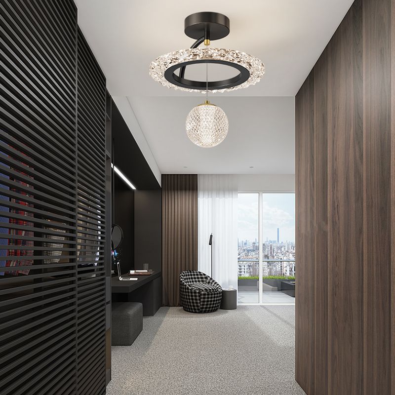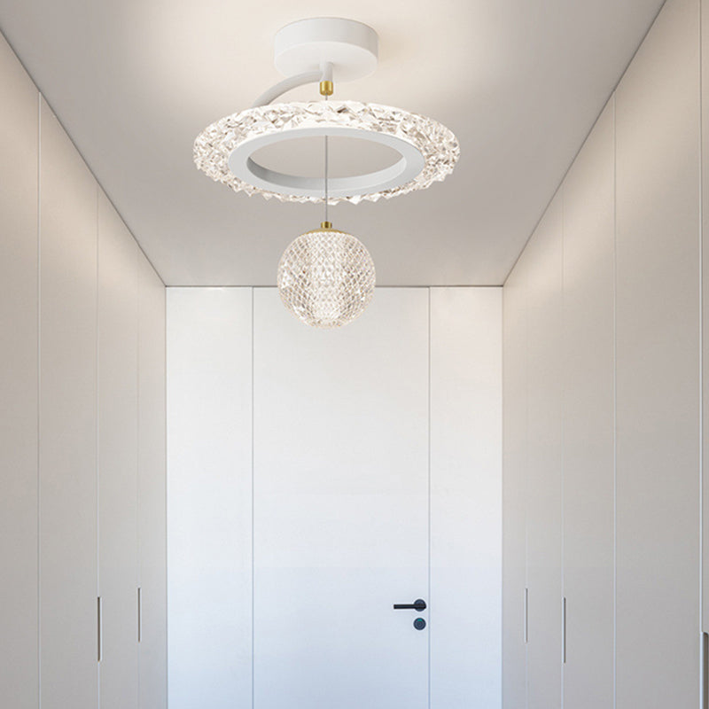 現代的で豪華な鉄製アクリル製幾何学模様の円形リングLED半埋め込み式天井照明(リビングルーム用)