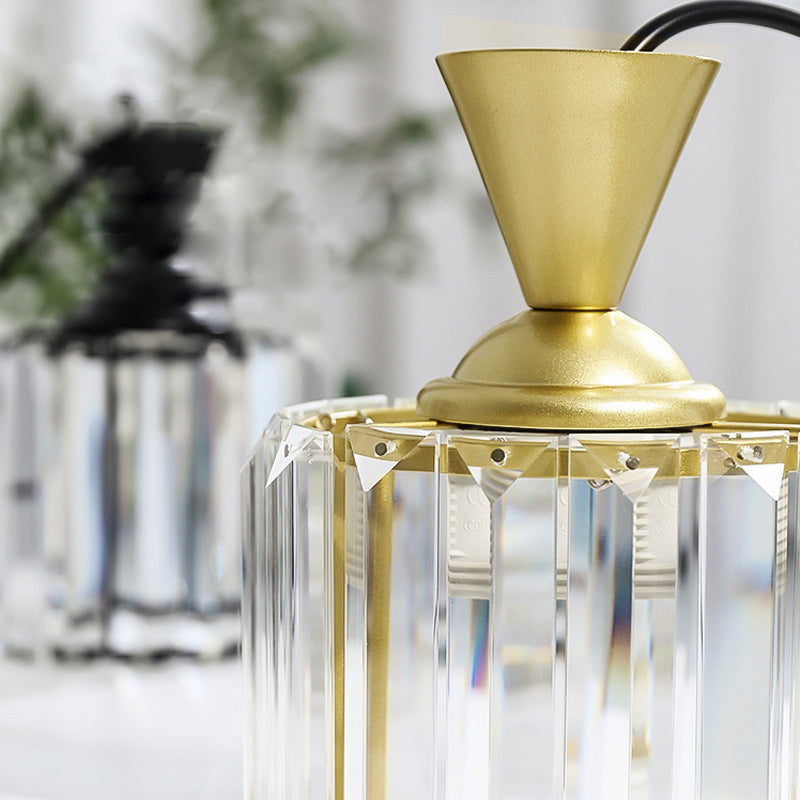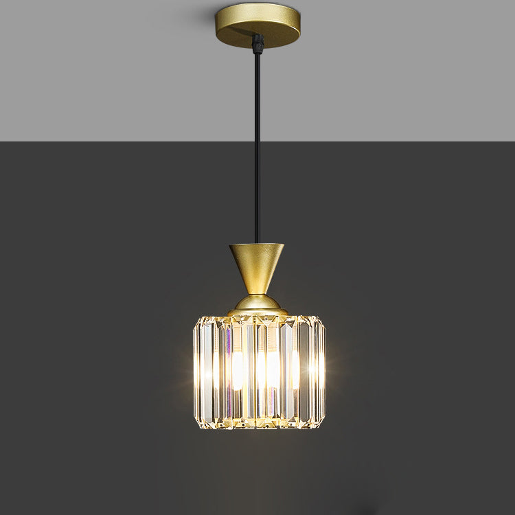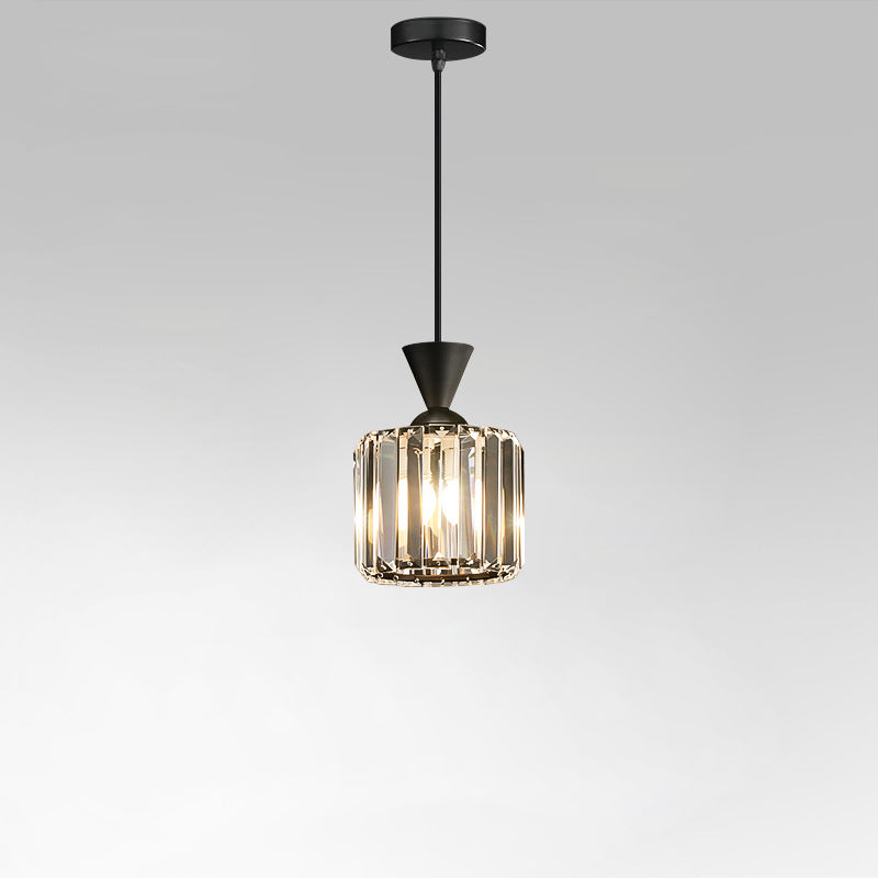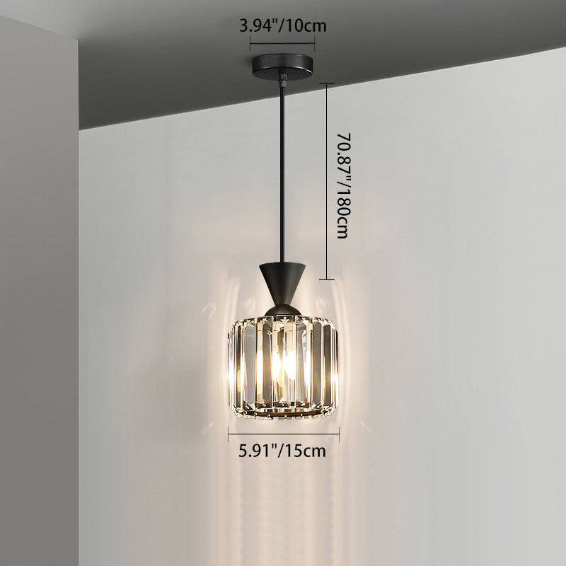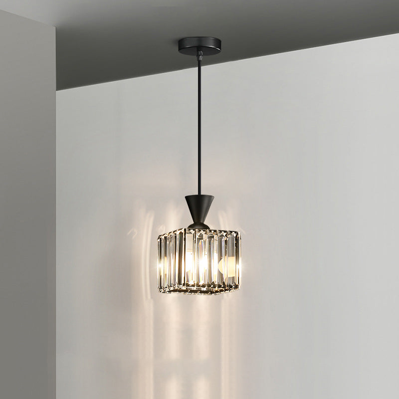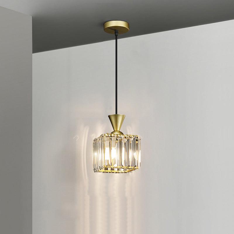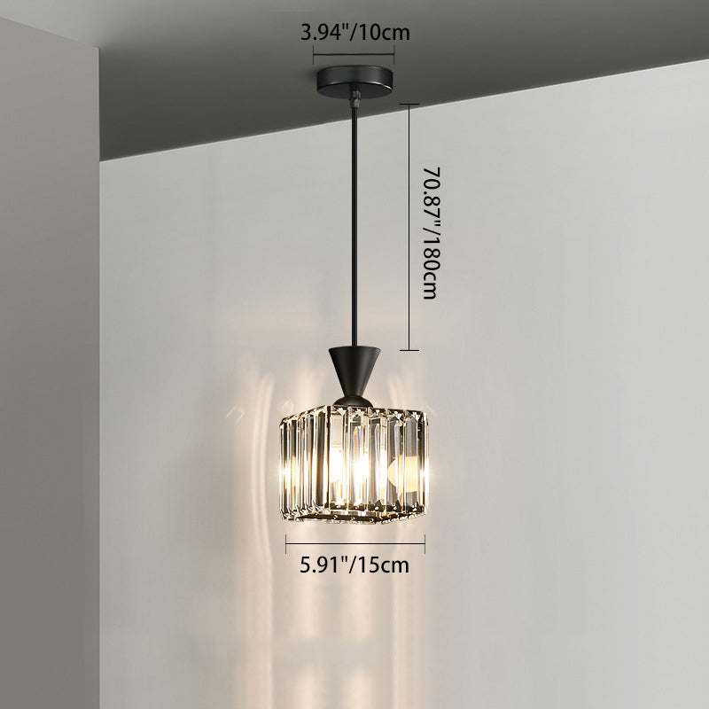 現代的で高級感のある、輝くプリズマティッククリアクリスタルシェードの1灯ペンダントライト(リビングルーム用)