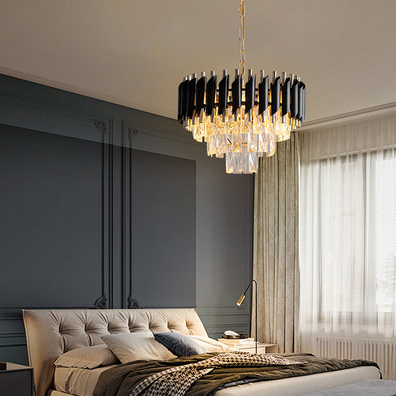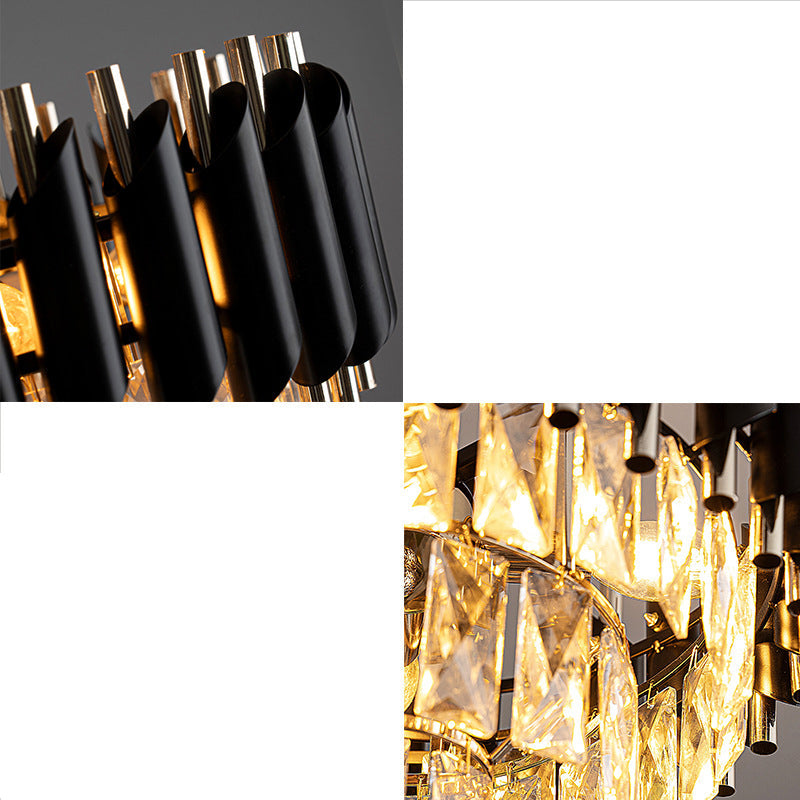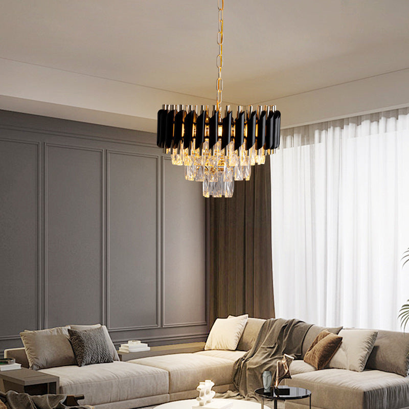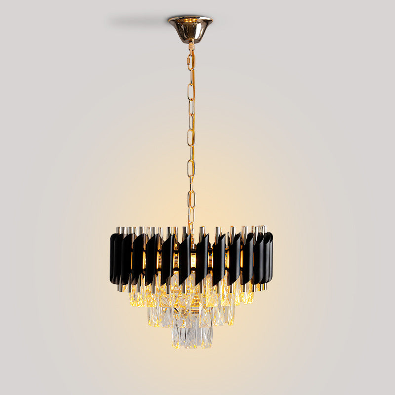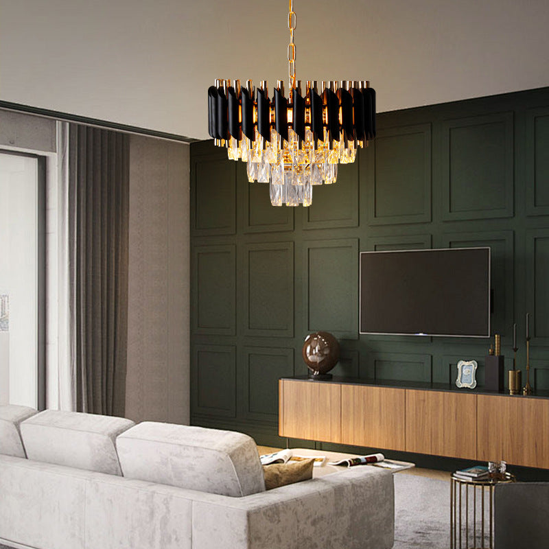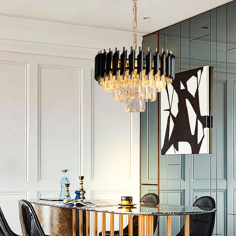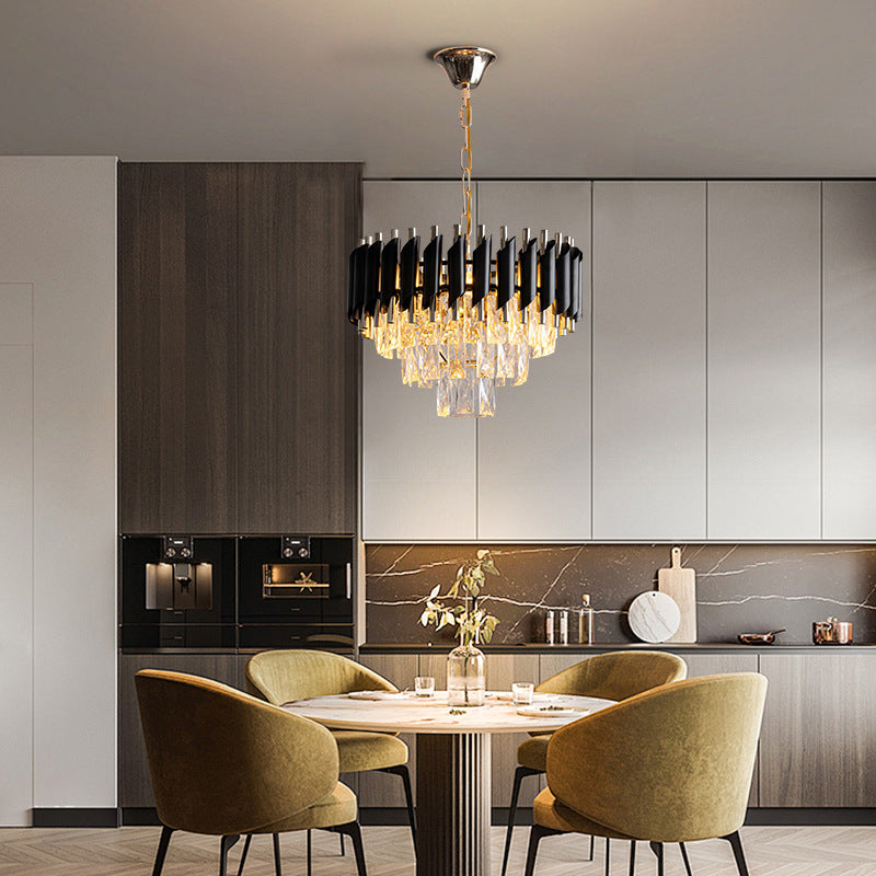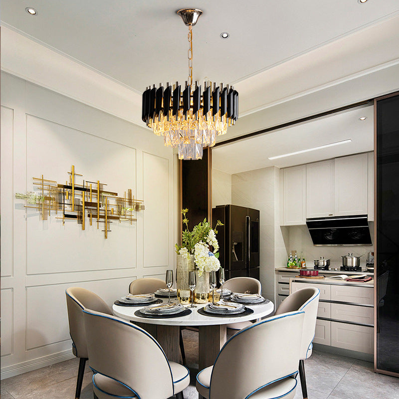 現代的な高級ラウンドクリスタルランプシェードアイアン3灯ペンダントライトダイニングルーム用