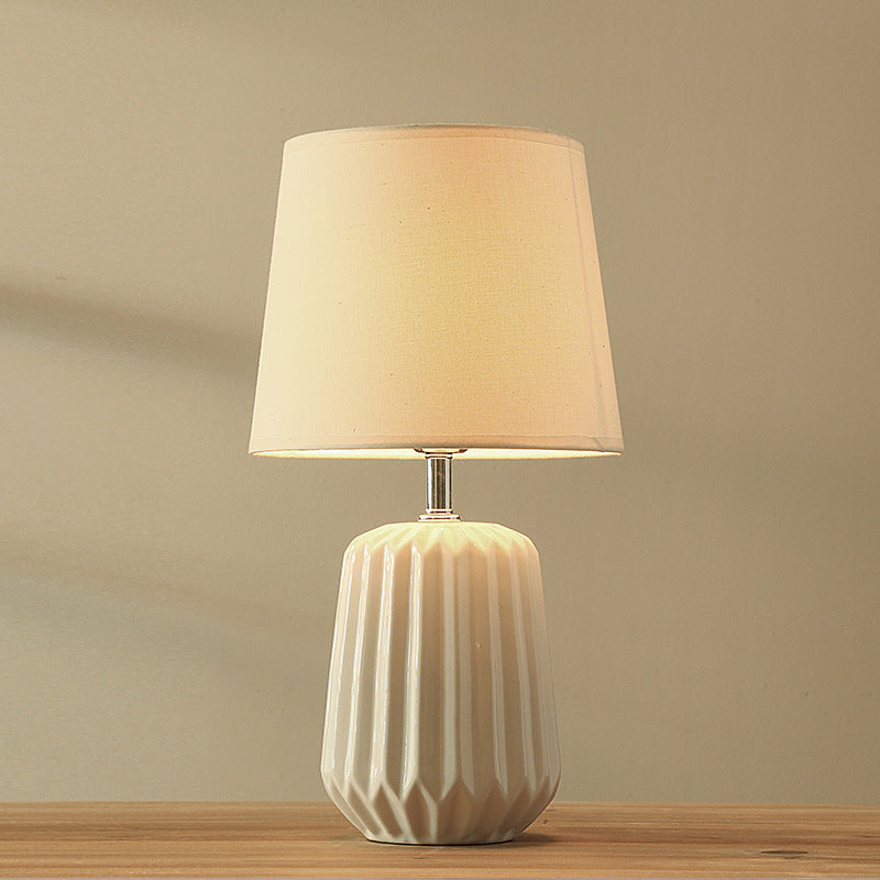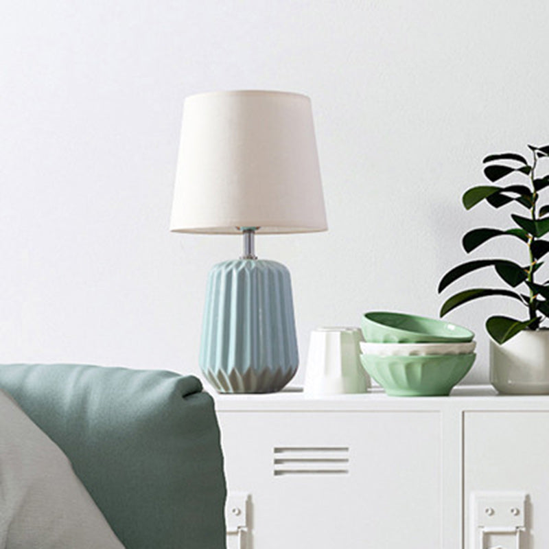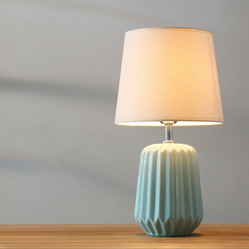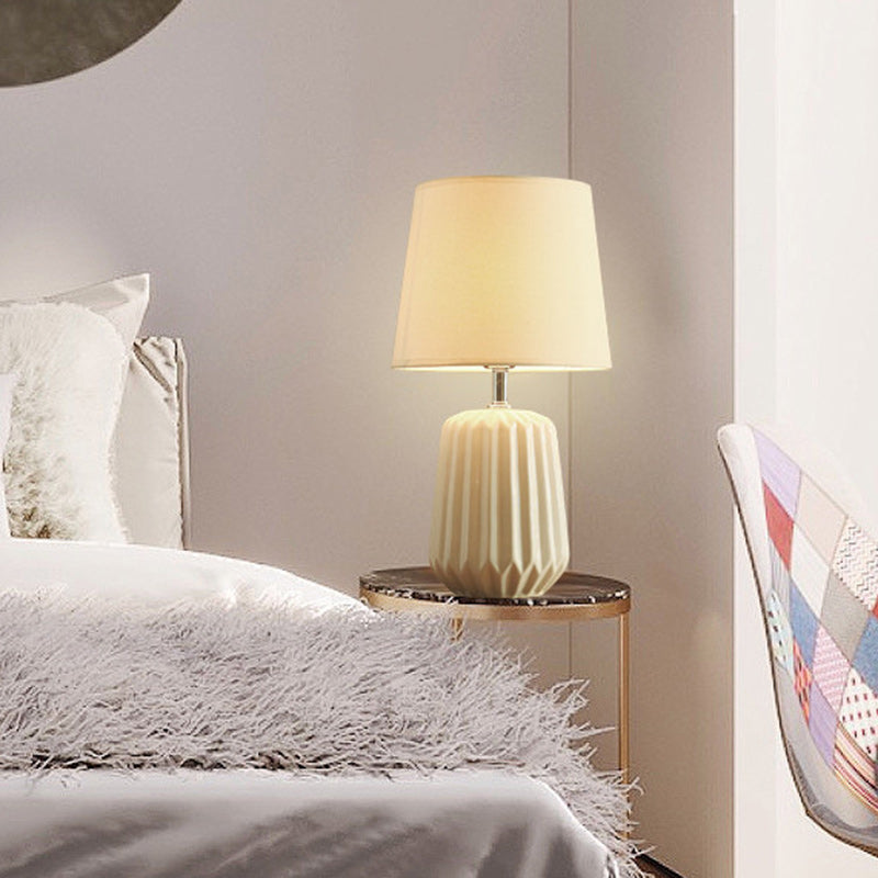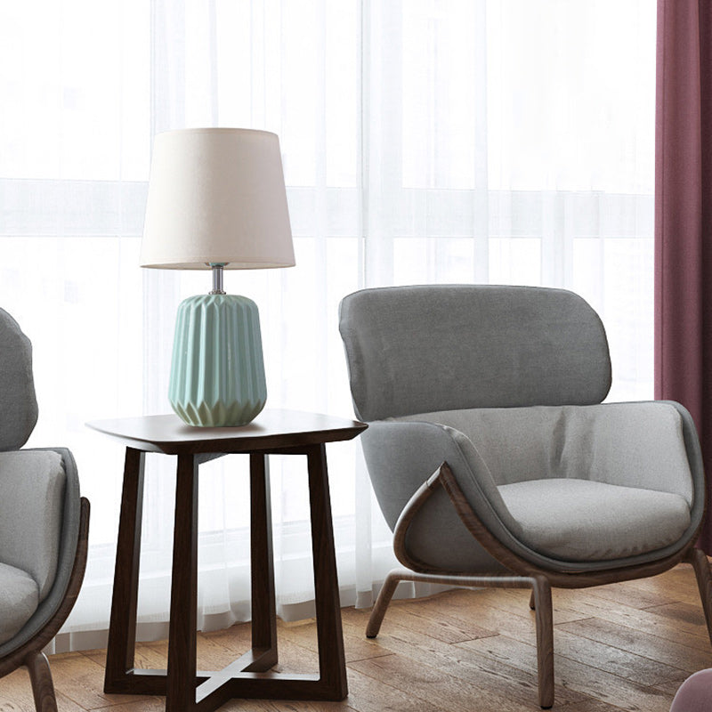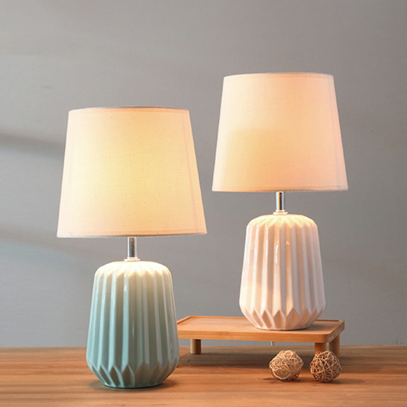 Contemporary Nordic Ceramic And Fabric 1-Light Table Lamp With Soft, Even Light For Bedroom & Living Room