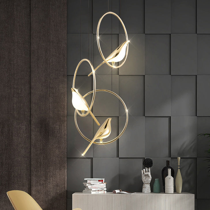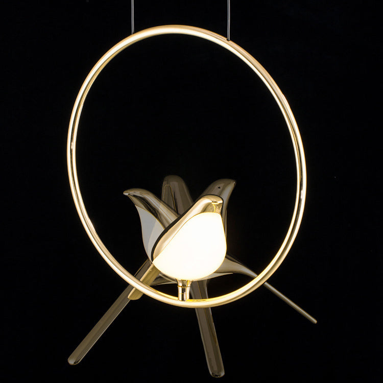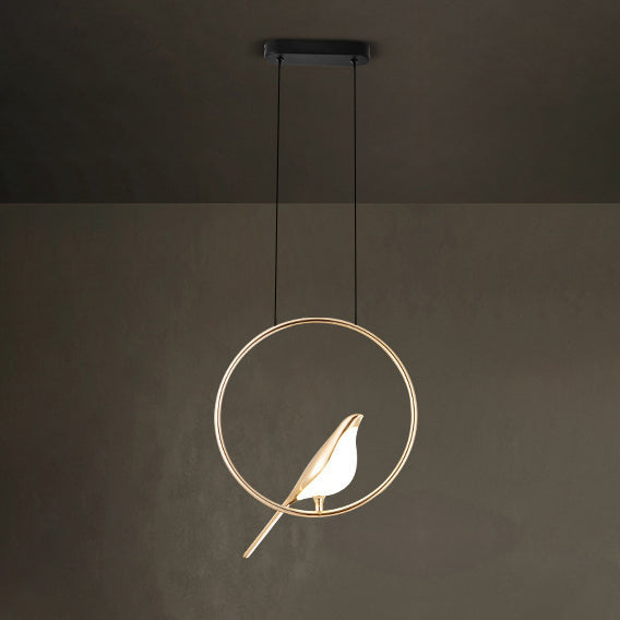 現代的な北欧風円形バードシェード亜鉛合金アクリルLEDペンダントライトリビングルーム用
