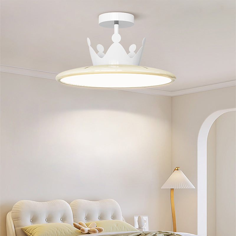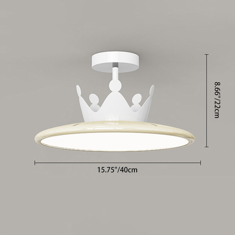 現代的な北欧風クリームクラウンラウンドアイアンLEDセミフラッシュマウントシーリングライト寝室用