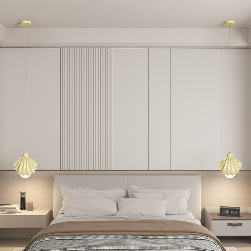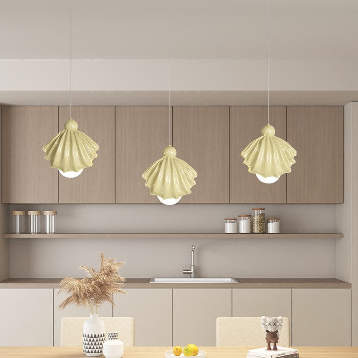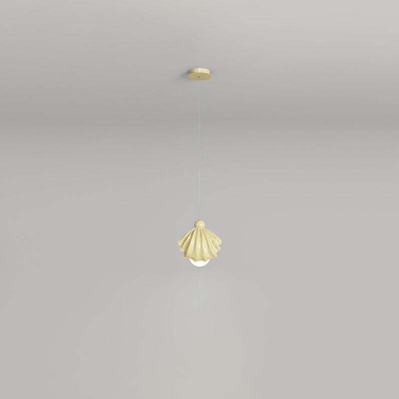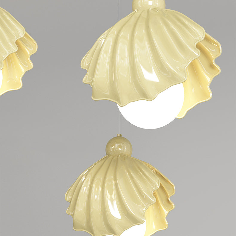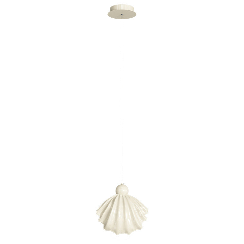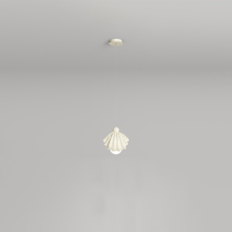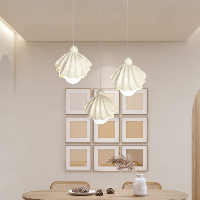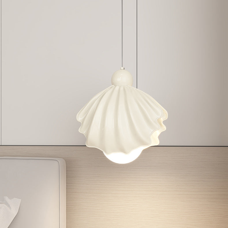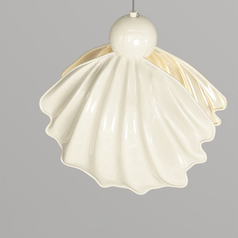 現代的な北欧風クリーム色の鉄樹脂シェルデザイン1灯ペンダントライト(リビングルーム用)