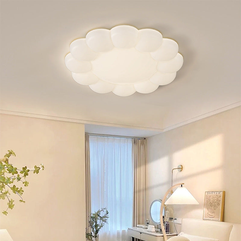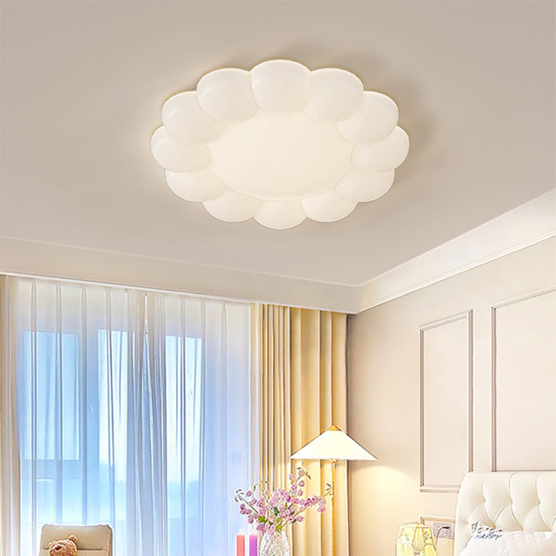 寝室用コンテンポラリー北欧クリームPEフラワーLEDフラッシュマウントシーリングライト