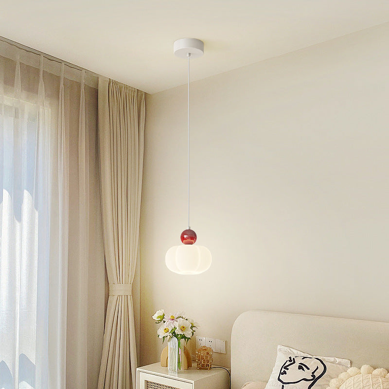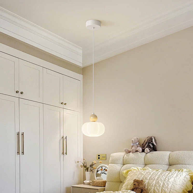 現代的な北欧風クリームパンプキンPEシェードアイアン1灯ペンダントライト(リビングルーム用)