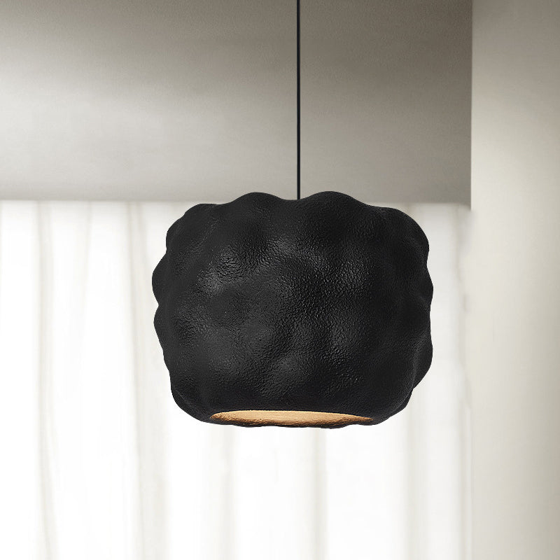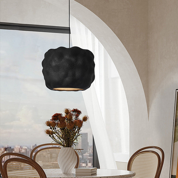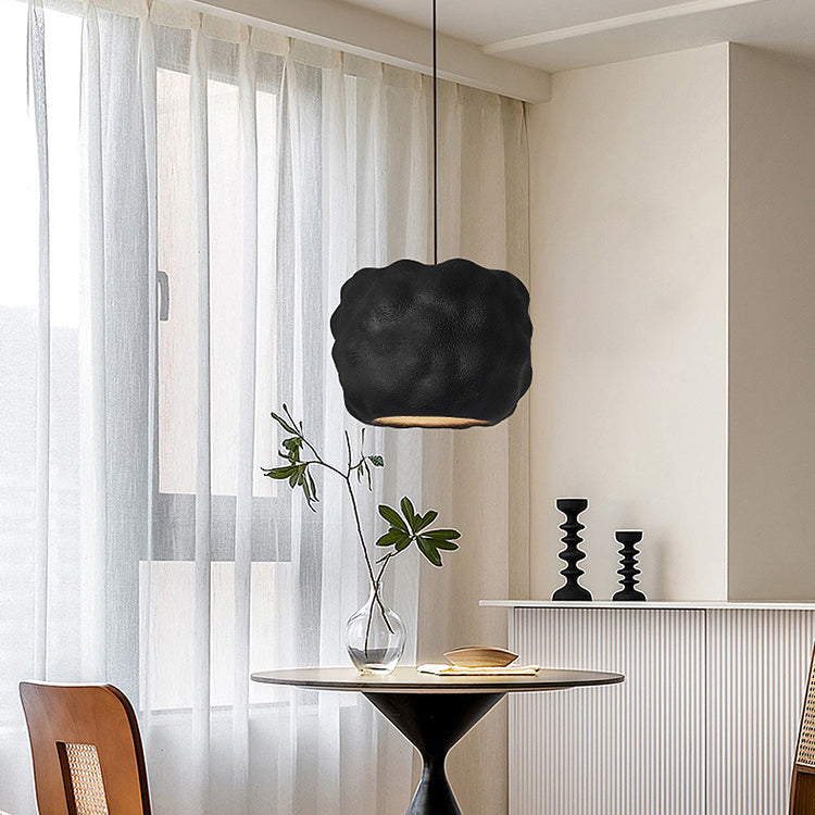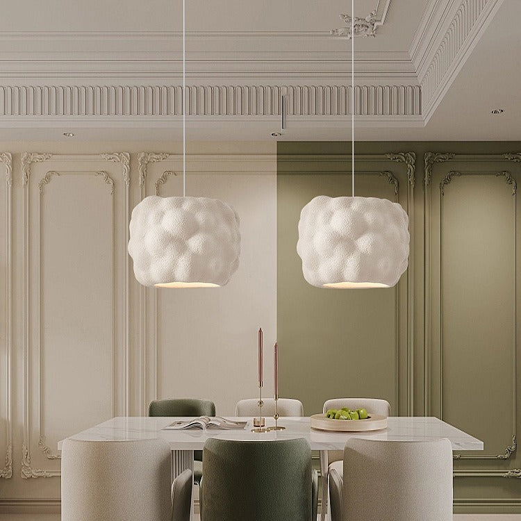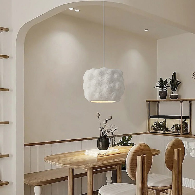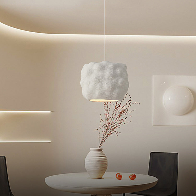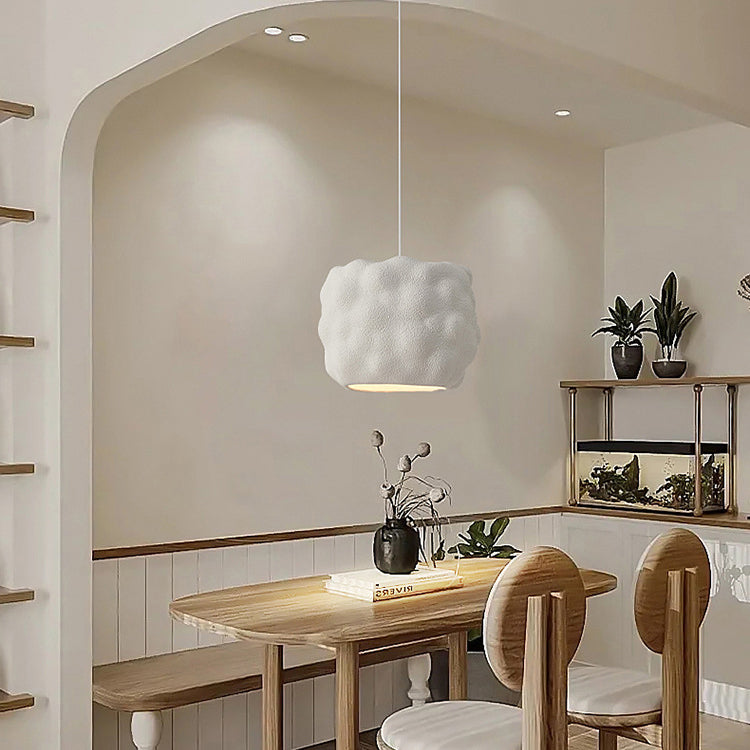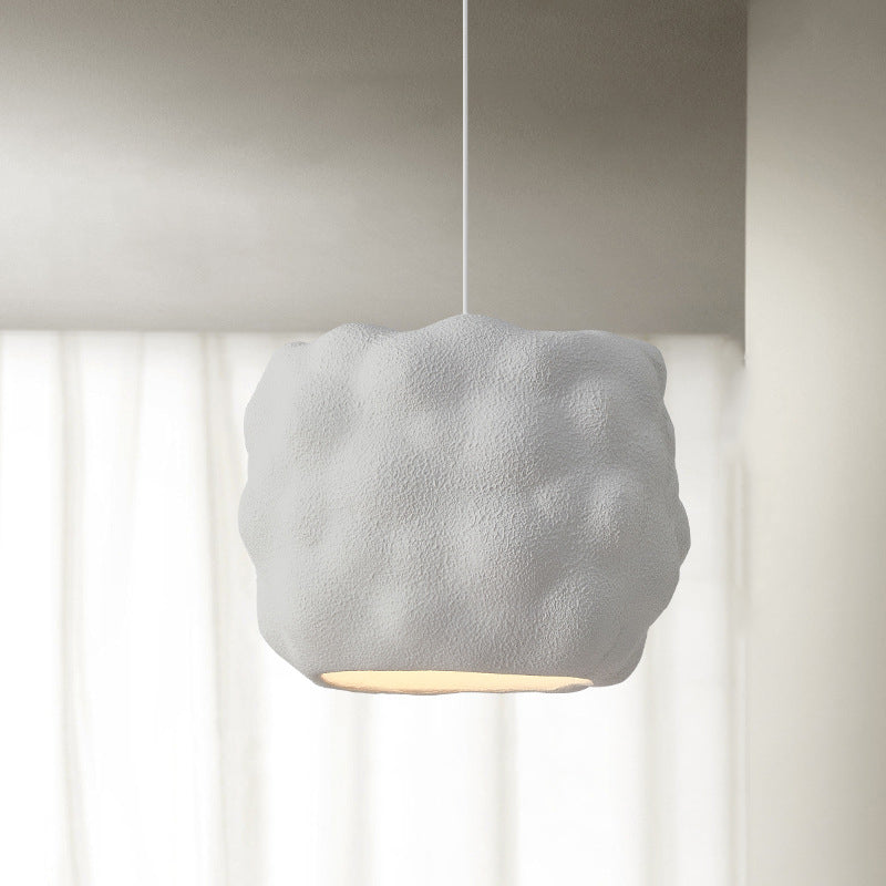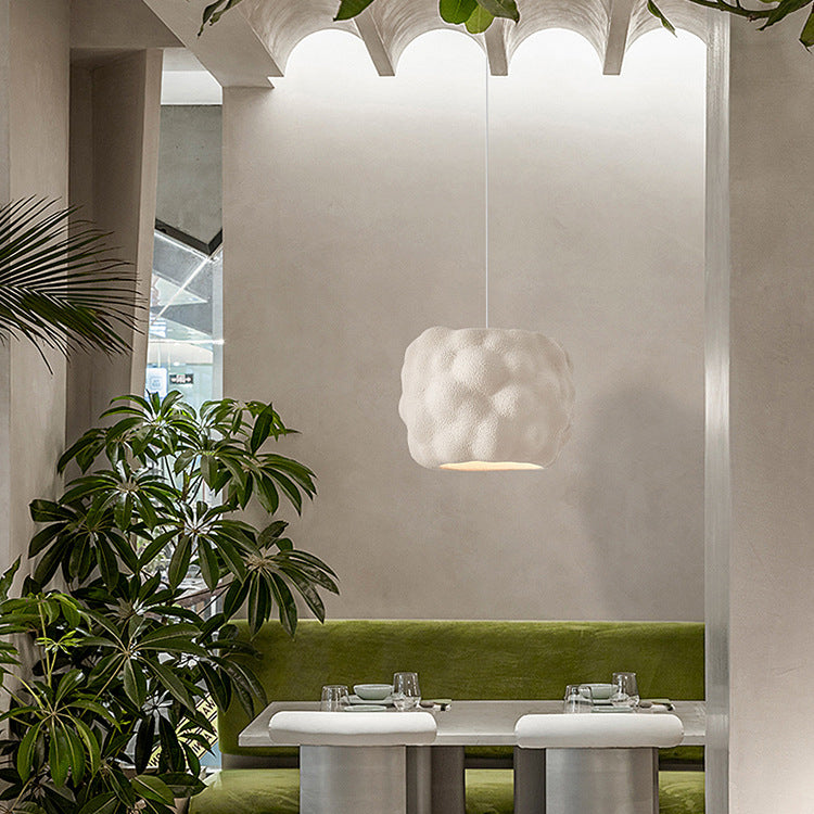 現代的な北欧風クリーム色の丸型シリンダー型ポリスチレン製1灯ペンダントライト(寝室用)