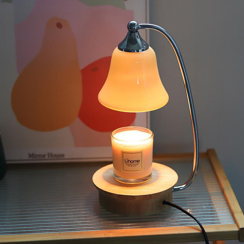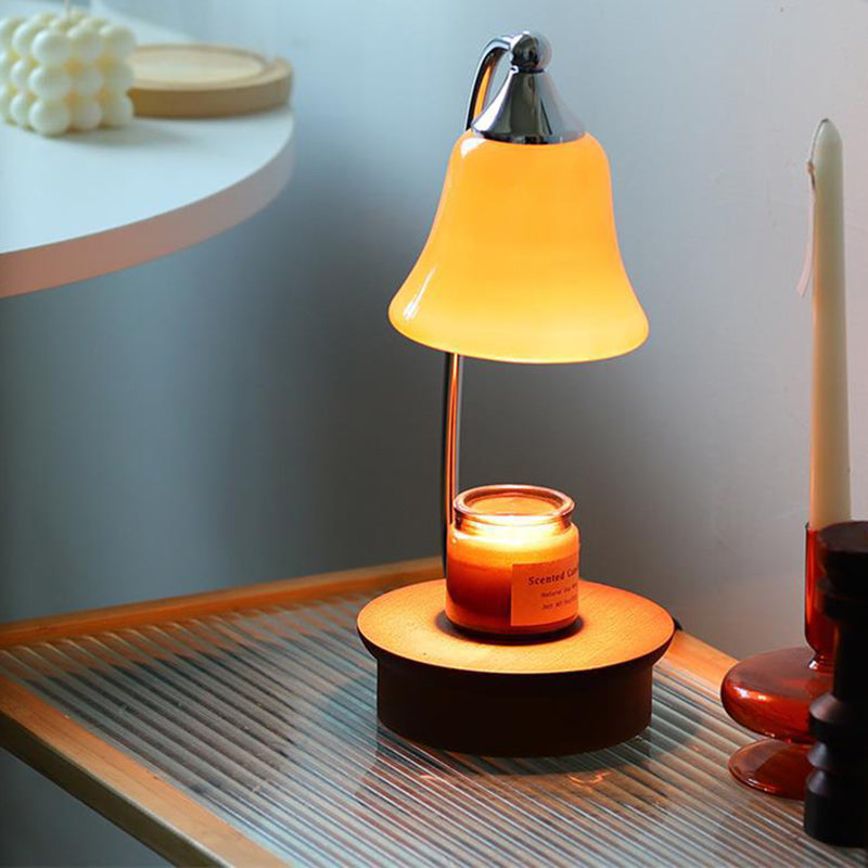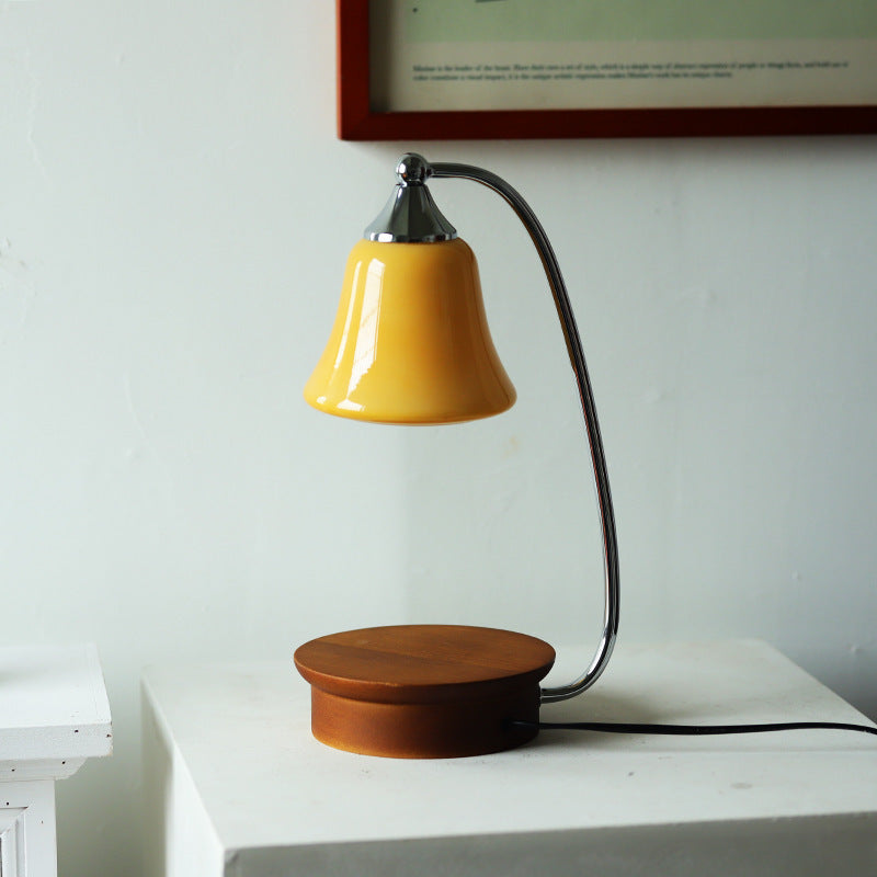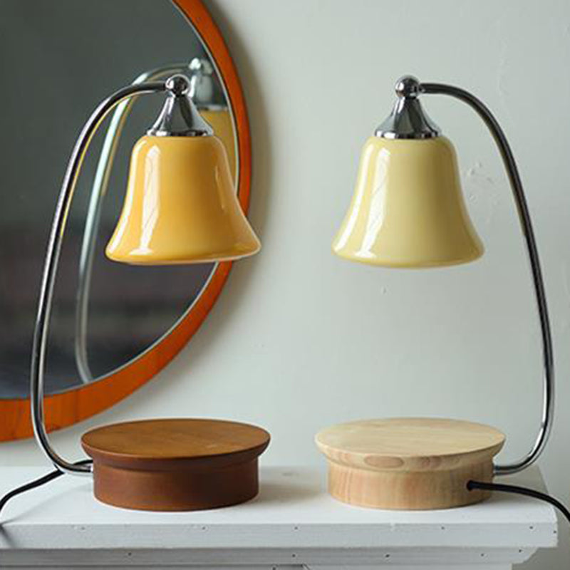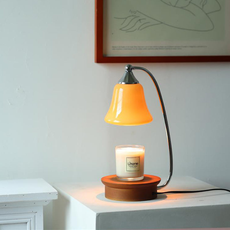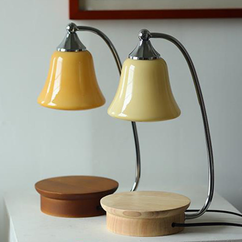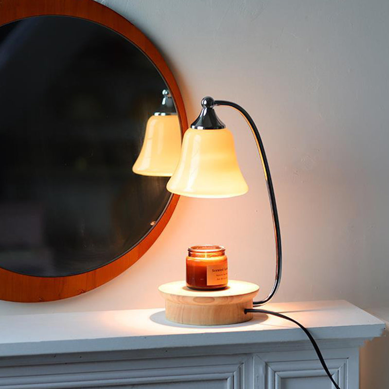 Contemporary Nordic Glass Bell Shade Solid Wood Base 1-Light Melting Wax Table Lamp For Bedroom