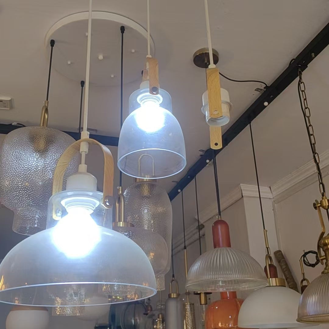 透明なガラスのボウル型シェードと温かみのあるウォールナット材のアクセントが特徴の、現代的な北欧風ペンダントライトで、ダイニングスペースをワンランクアップさせましょう。調節可能な吊り下げコードでフレキシブルな照明を実現し、居心地の良い雰囲気と洗練されたデザインを求めるモダンなレストラン、カフェ、バーに最適です。