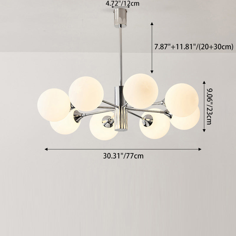モダンで芸術的なシャンデリアは、クロームボディと白いガラスシェードが特徴的な、枝をモチーフにしたユニークなデザインです。寝室やリビングルームにスタイリッシュで居心地の良い雰囲気を演出するのに最適です。柔らかく均一な光を提供し、耐腐食性と耐高温性を備えています。バウハウスと北欧デザインを融合させた、クリエイティブな空間をお探しの方に最適です。