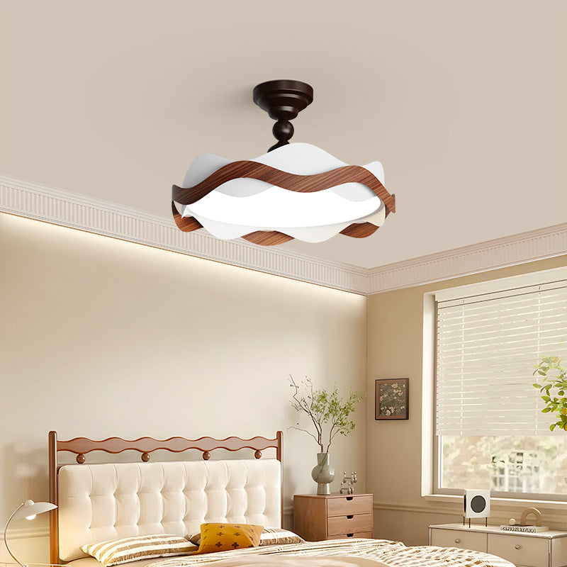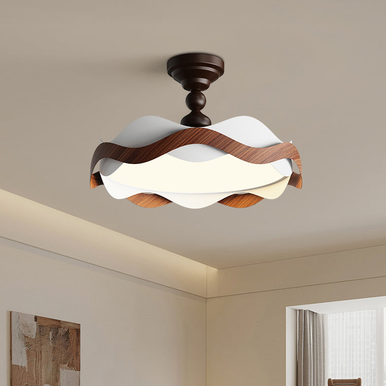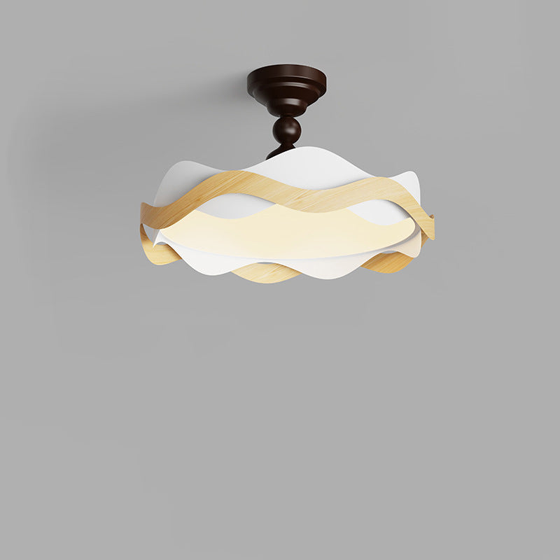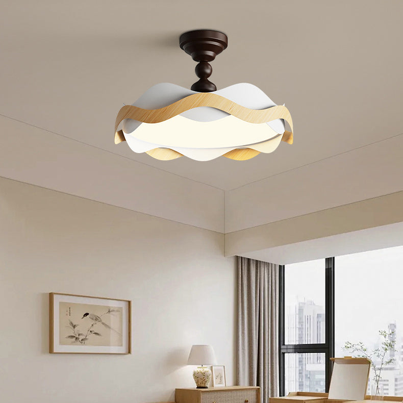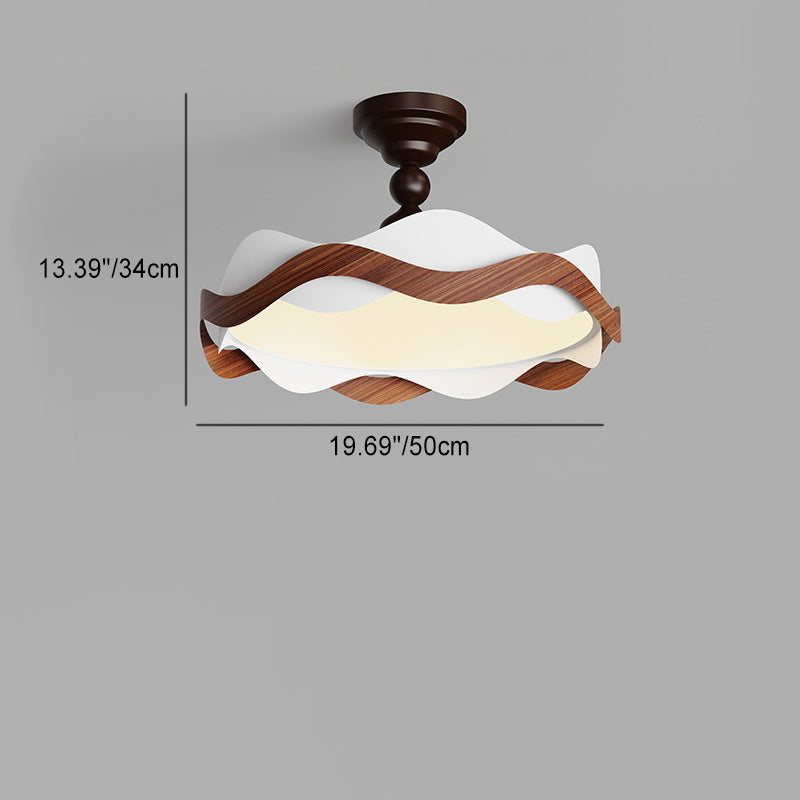 現代的な北欧風アイアン風木目調波形LEDセミフラッシュマウントシーリングライト(寝室用)