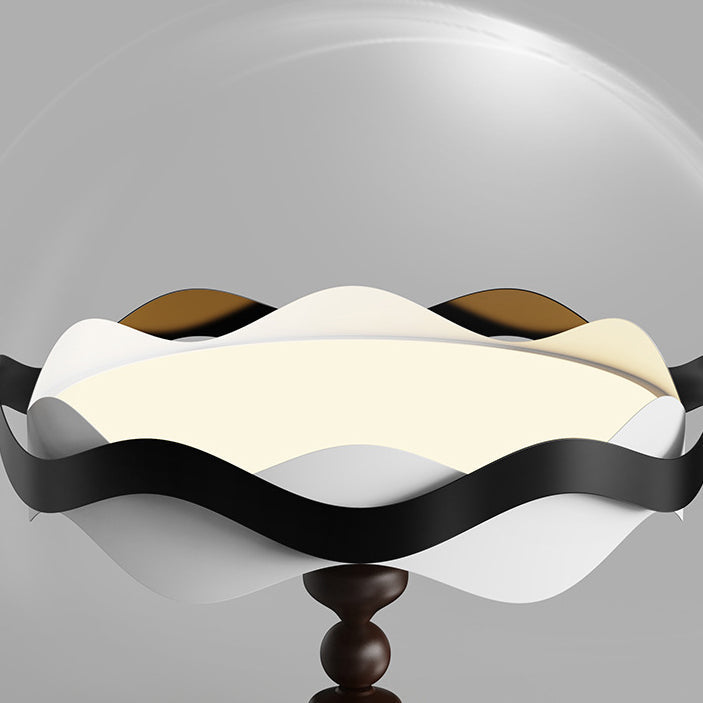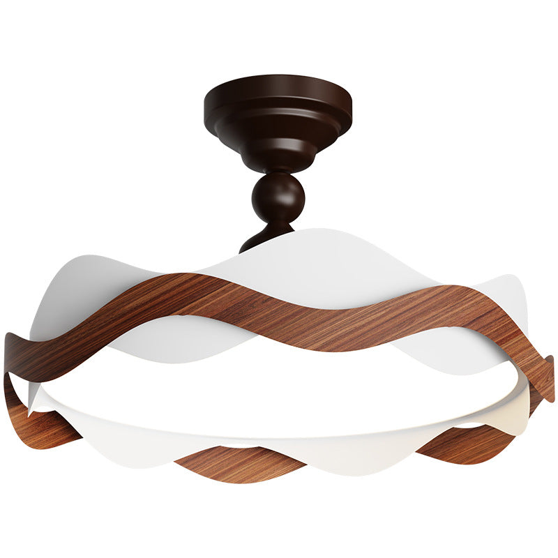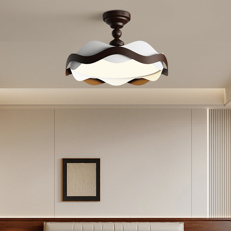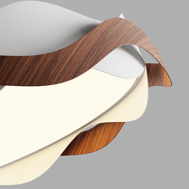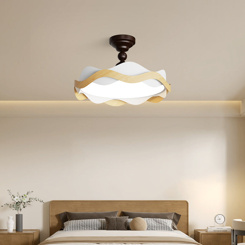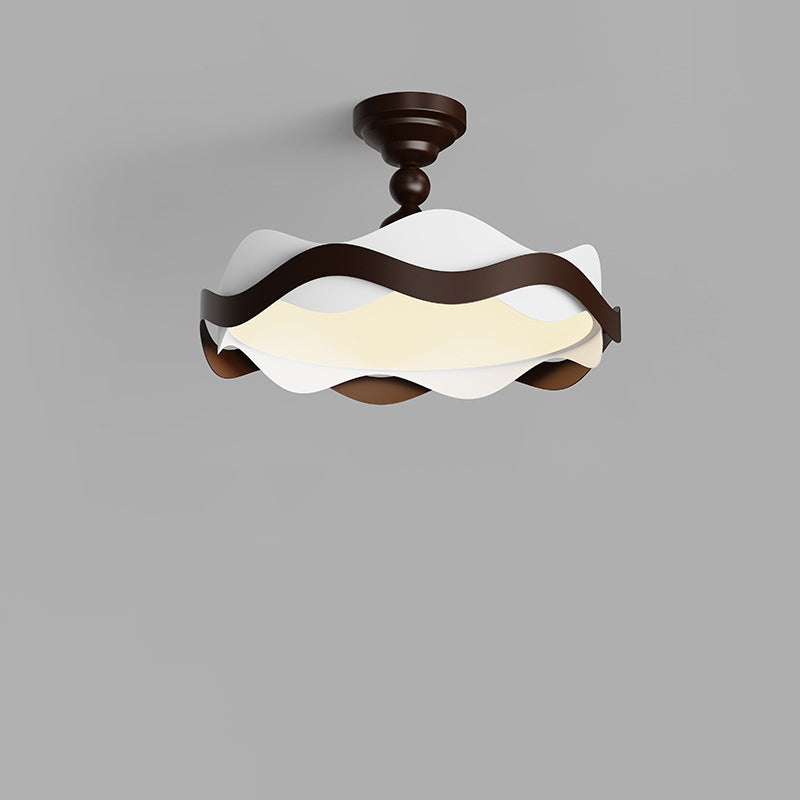 現代的な北欧風アイアン風木目調波形LEDセミフラッシュマウントシーリングライト(寝室用)