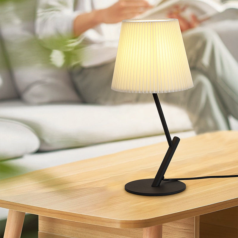 Contemporary Nordic Pleated Fabric Shade Hardware Tube 1-Light Table Lamp For Bedroom
