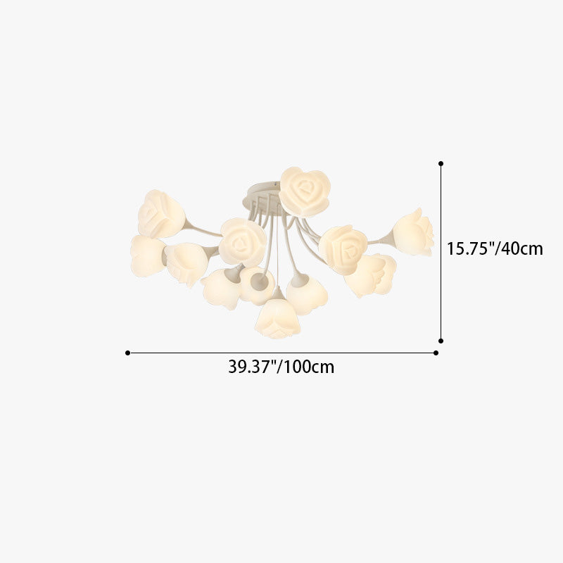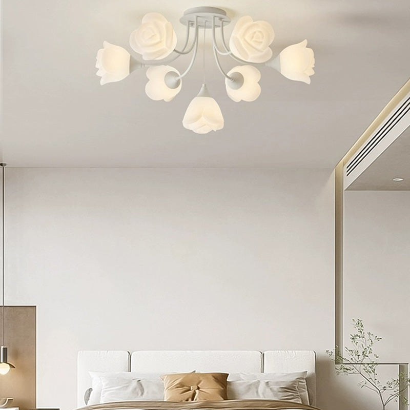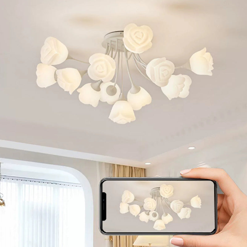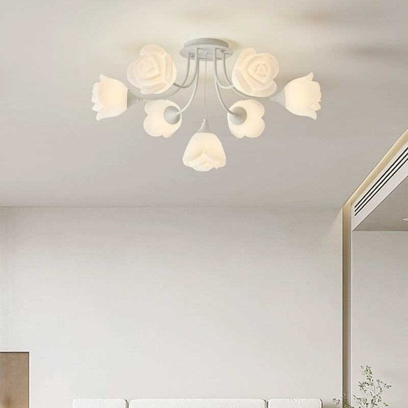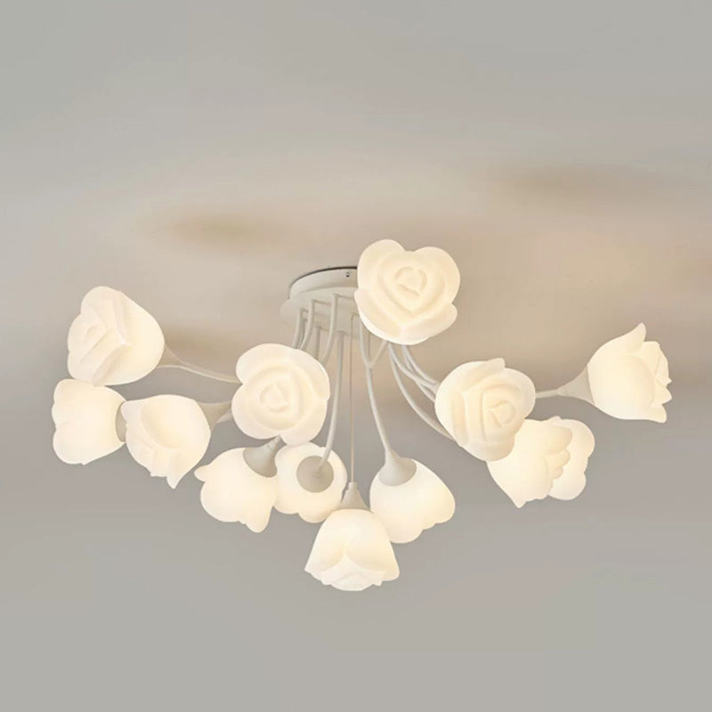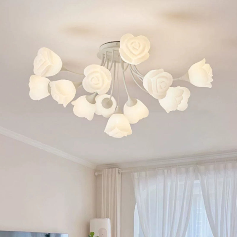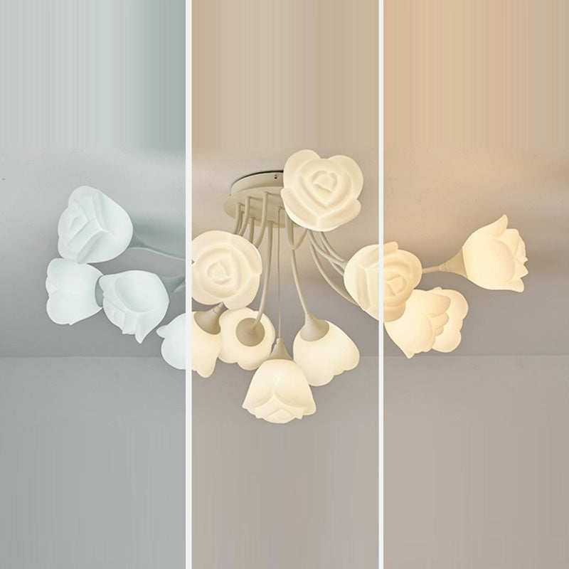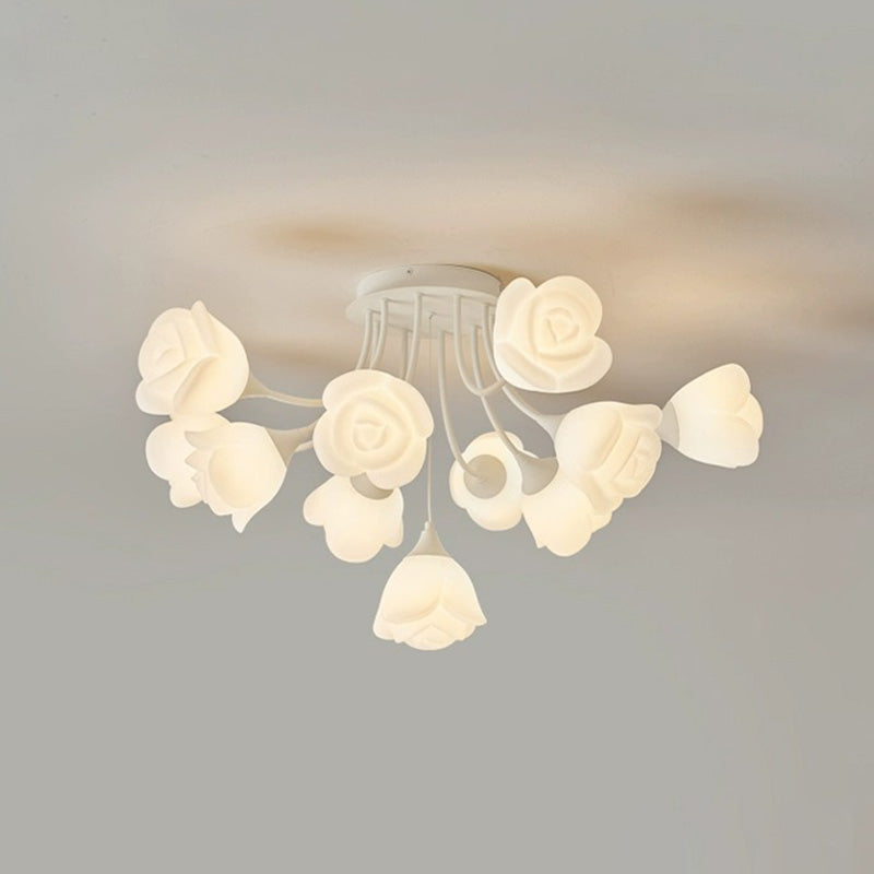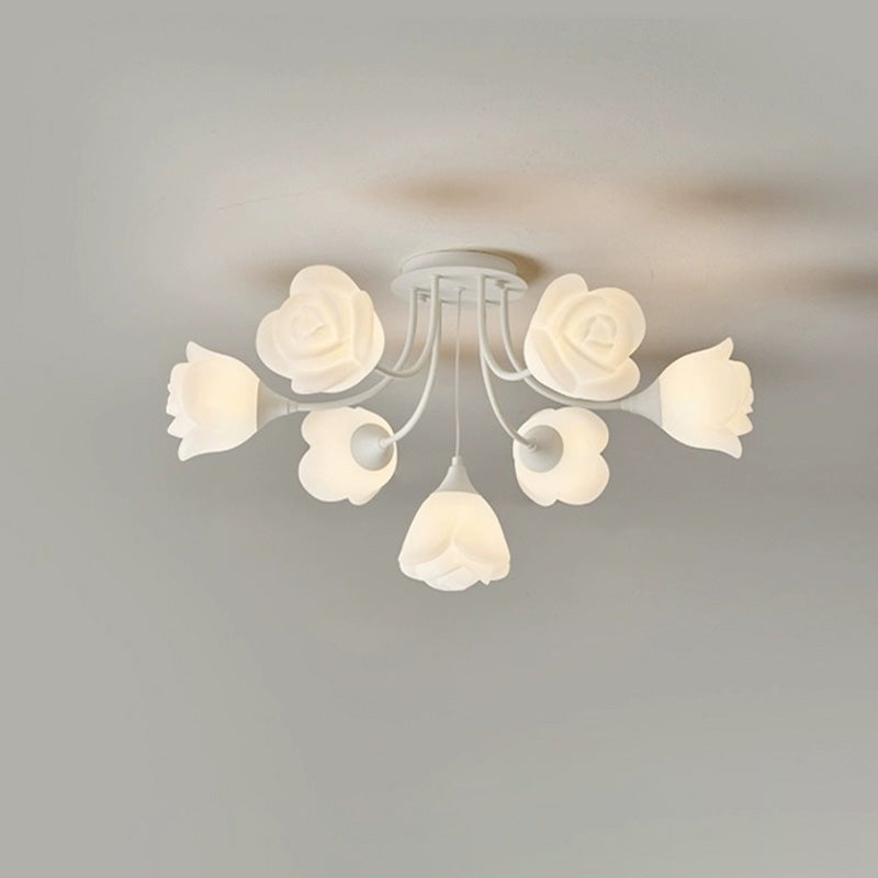 現代北欧風ロマンティックローズシェード鉄樹脂7/11/13ライトセミフラッシュマウントシーリングライトリビングルーム用