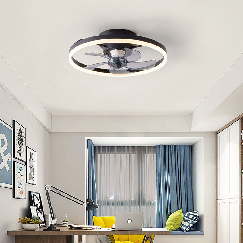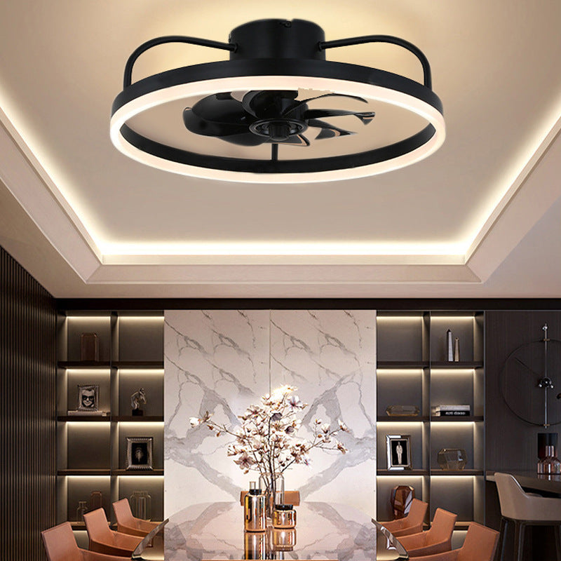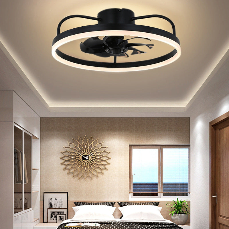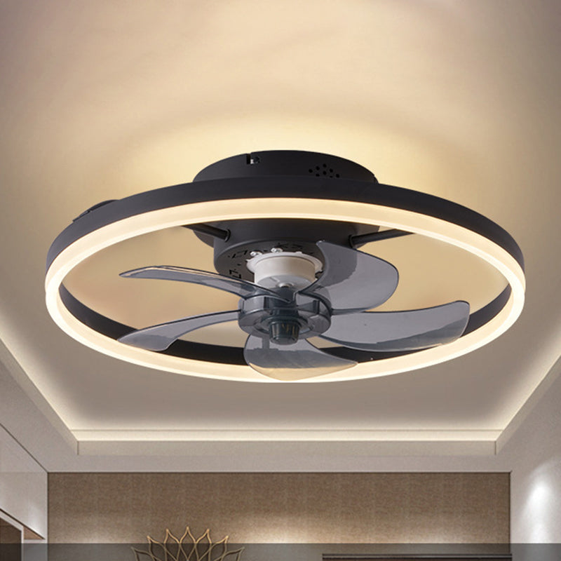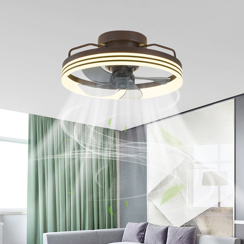 現代的な北欧風回転式円形銅鉄アクリルLED半埋め込み式シーリングファンライトリビングルーム用