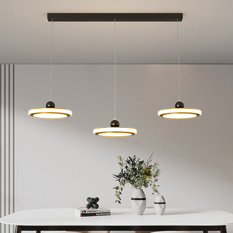 ダイニングルームに最適な、現代的な北欧風ラウンドアクリルランプシェードとアイアン製LEDシャンデリア