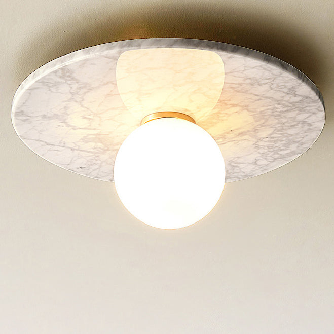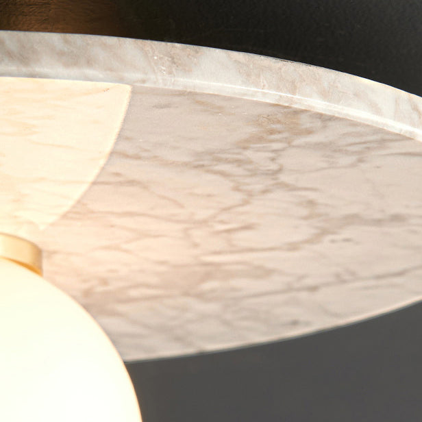 現代的な北欧風ラウンドオーブ銅大理石シェード1灯セミフラッシュマウントシーリングライトリビングルーム用