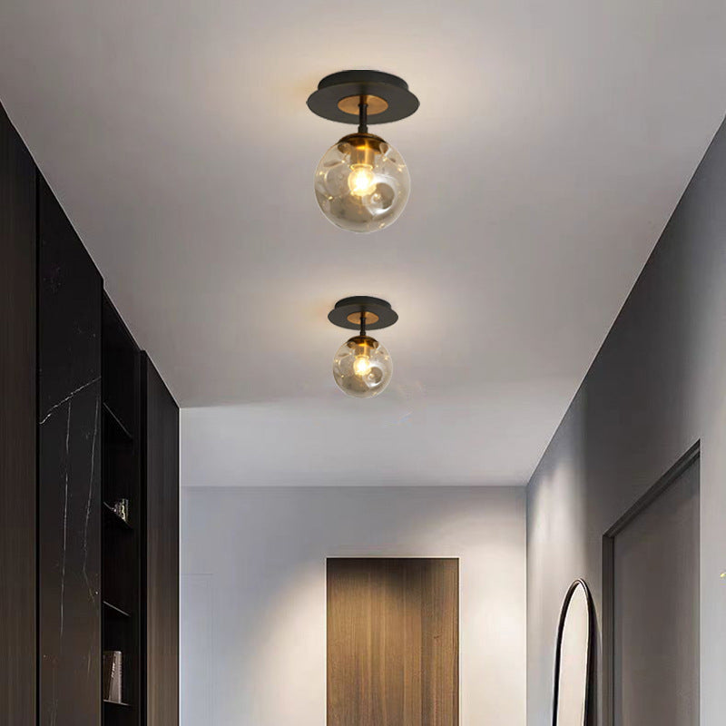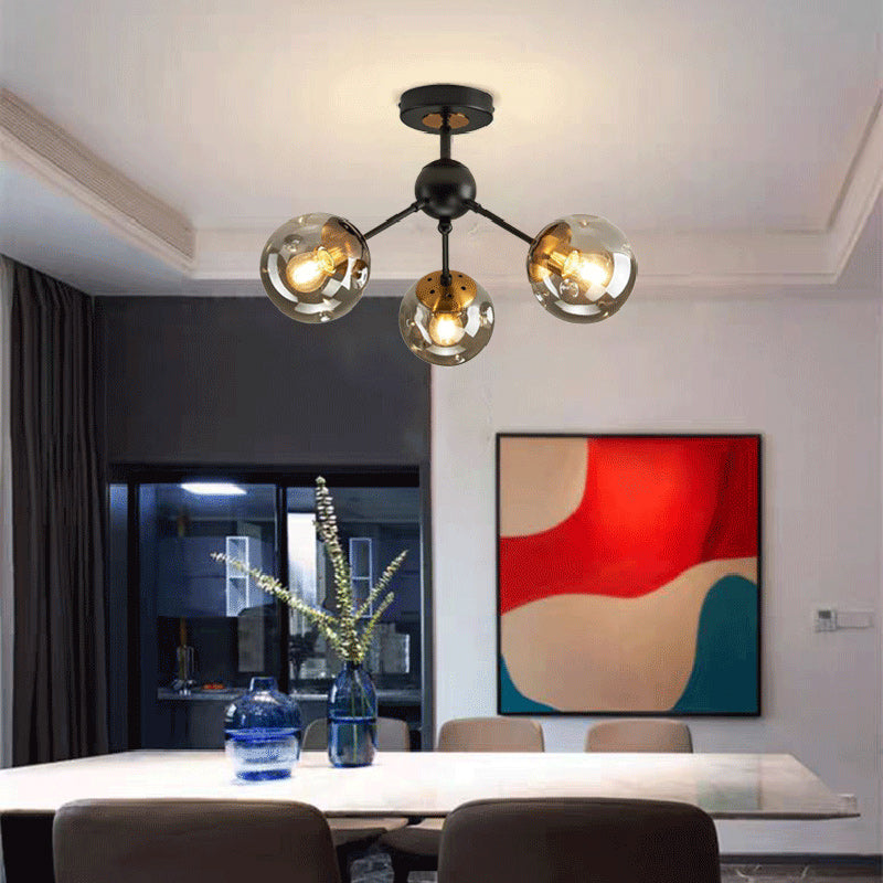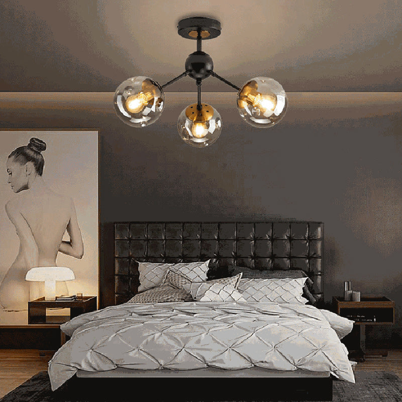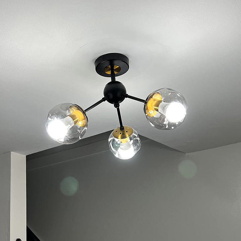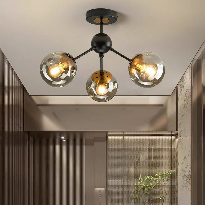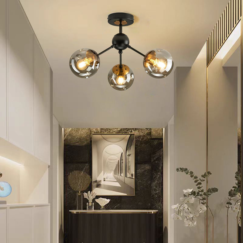 現代的な北欧風ラウンドオーブアイアンガラス1/3/5ライトセミフラッシュマウント天井照明(廊下用)