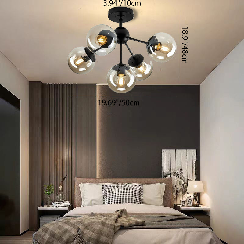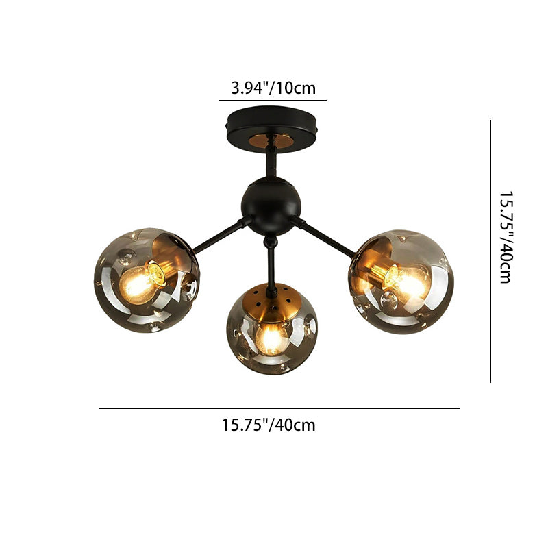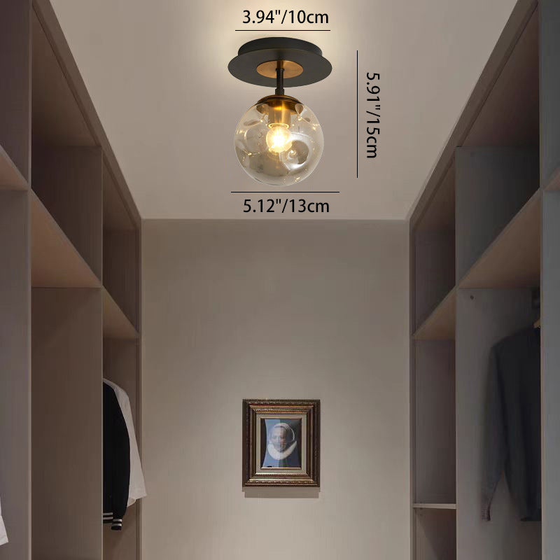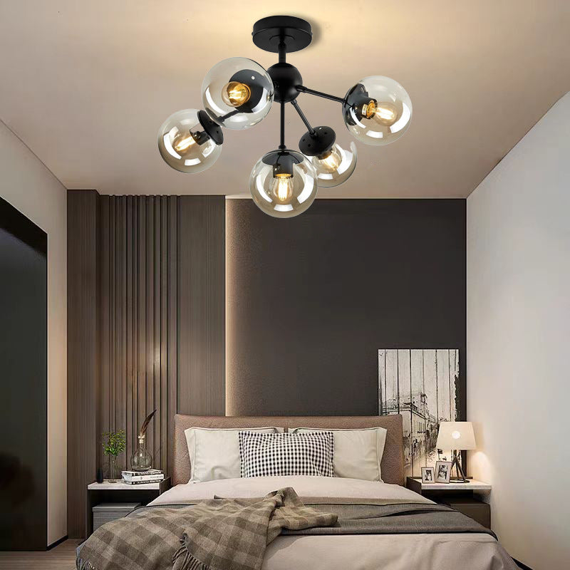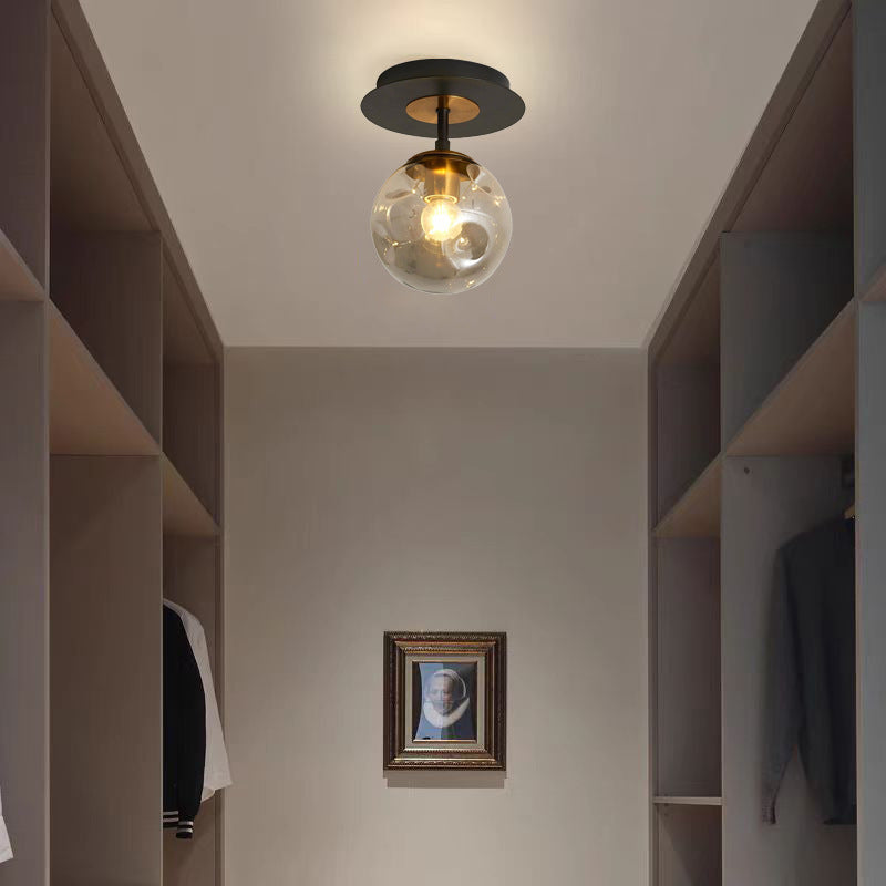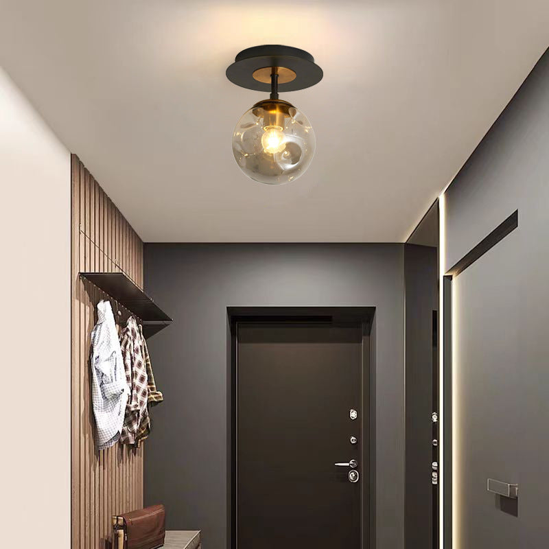 現代的な北欧風ラウンドオーブアイアンガラス1/3/5ライトセミフラッシュマウント天井照明(廊下用)