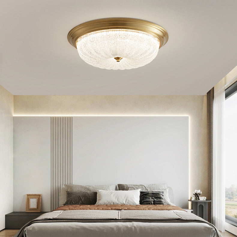 寝室用コンテンポラリー北欧ラウンドストリップクリスタルガラス銅LEDフラッシュマウントシーリングライト