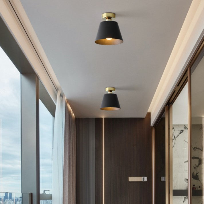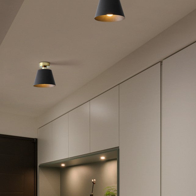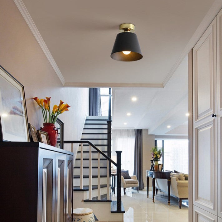 現代的な北欧風ラウンド台形カップアイアン1灯セミフラッシュマウント天井照明(廊下用)