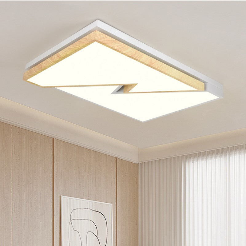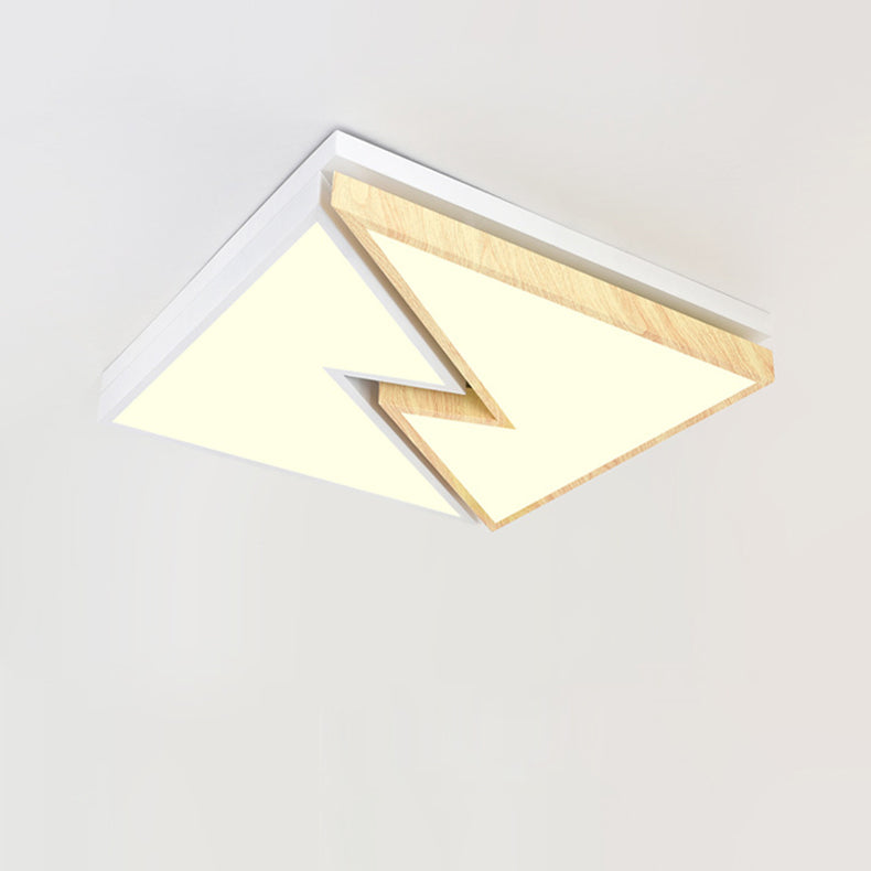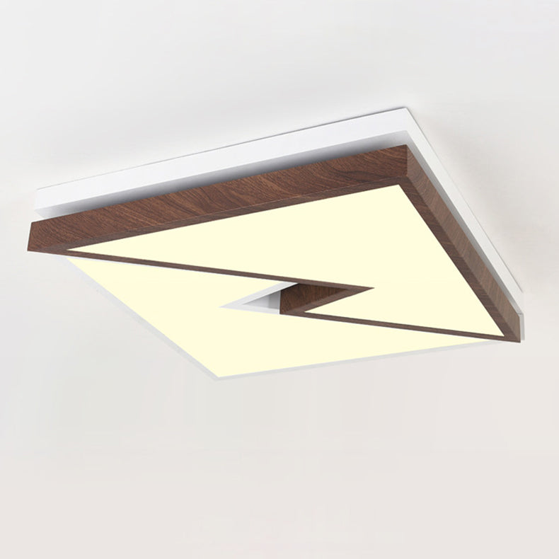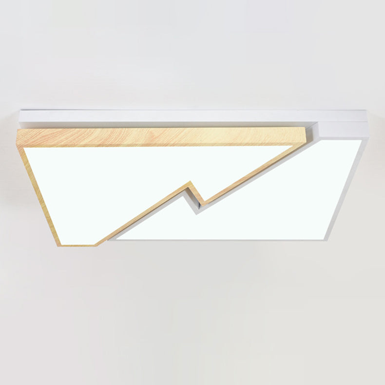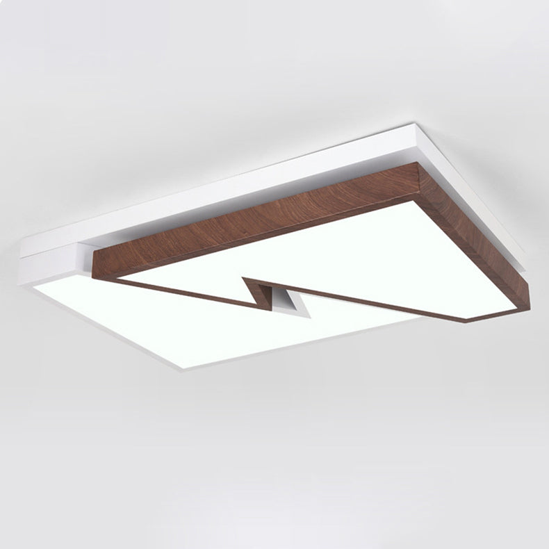 現代的な北欧風スクエア長方形木目調ライトニングアイアンアクリルLEDフラッシュマウントシーリングライトリビングルーム用