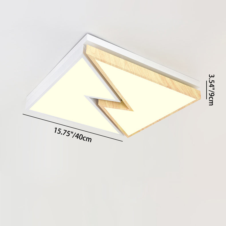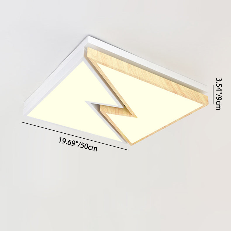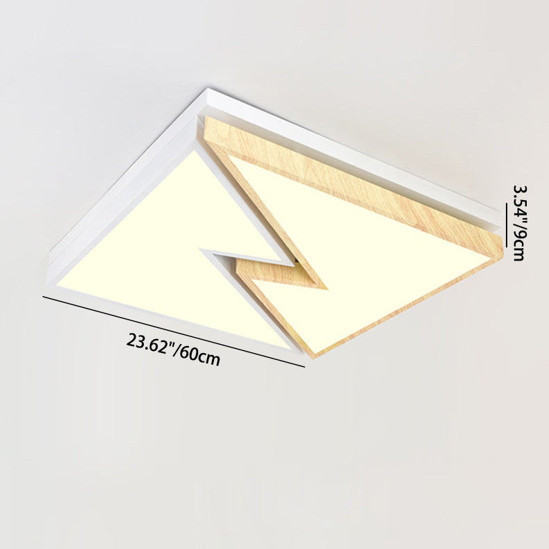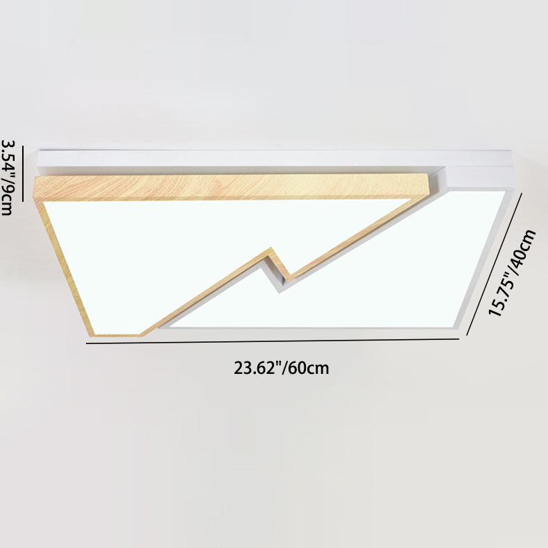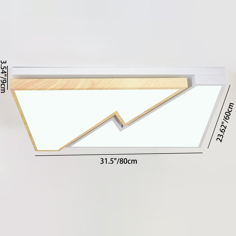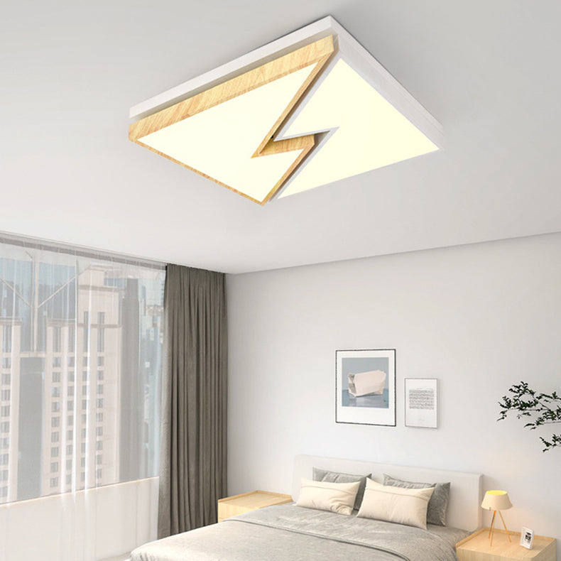 現代的な北欧風スクエア長方形木目調ライトニングアイアンアクリルLEDフラッシュマウントシーリングライトリビングルーム用