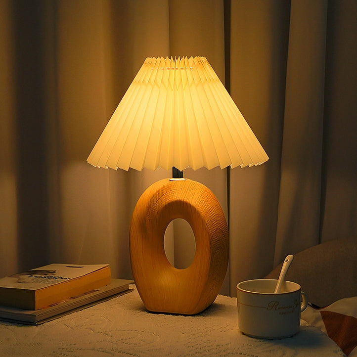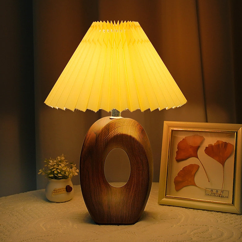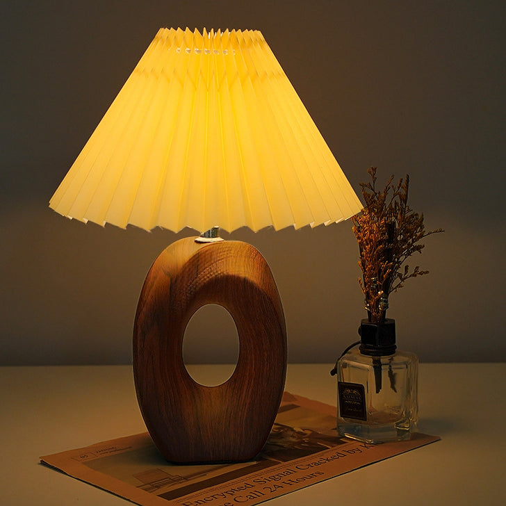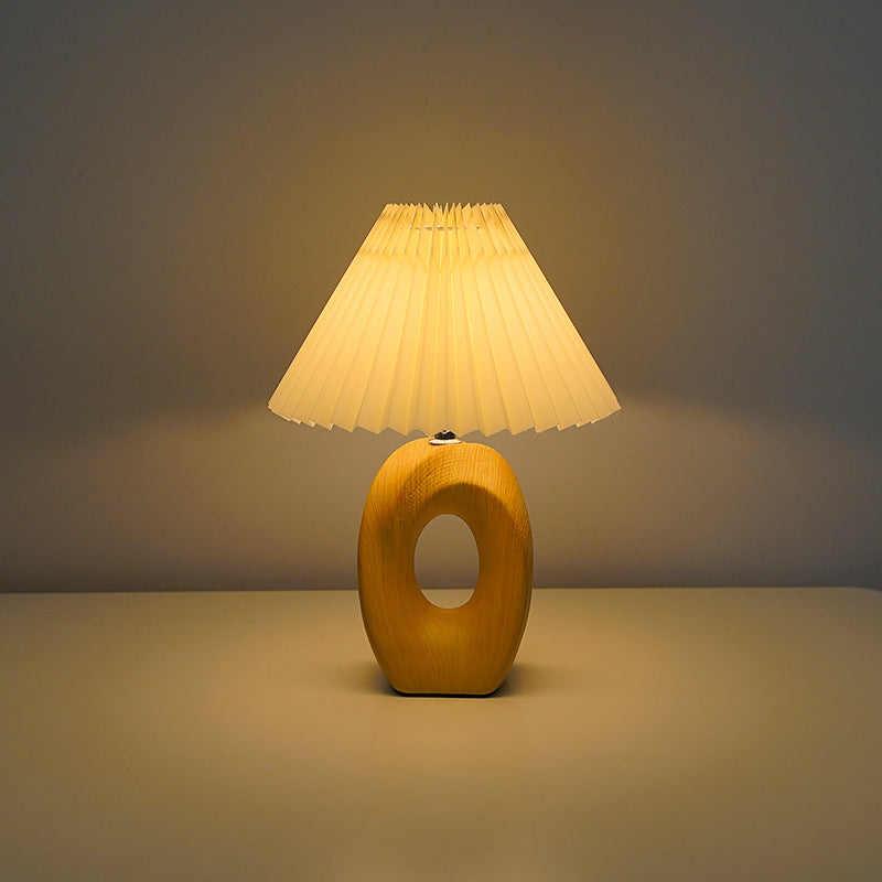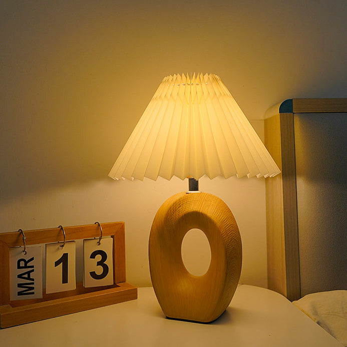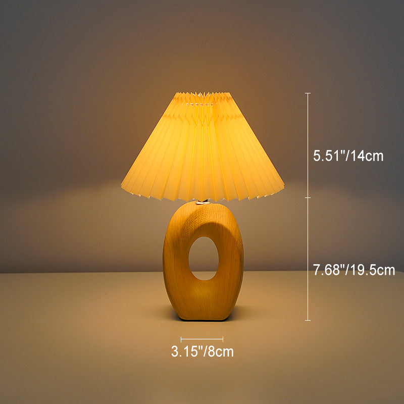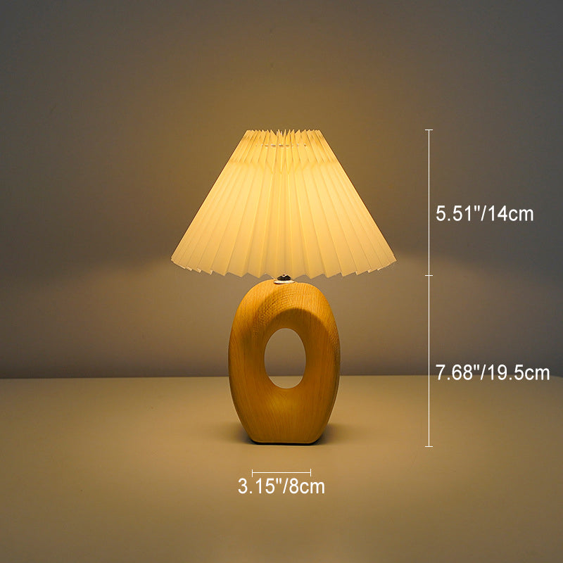 Contemporary Nordic USB Fabric Ceramic Conic Pleated Skeletonized LED Table Lamp For Bedroom