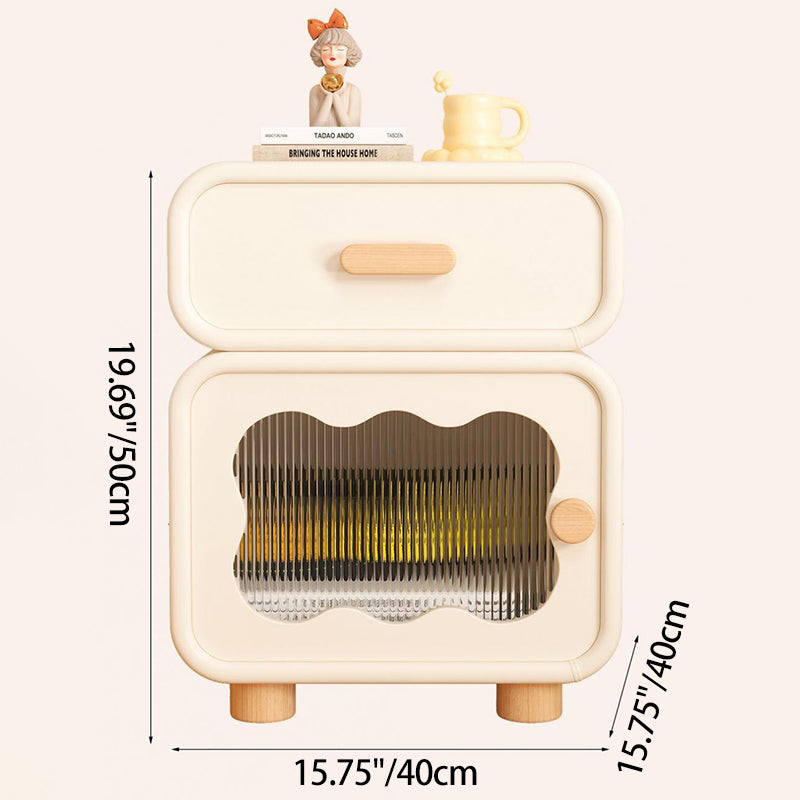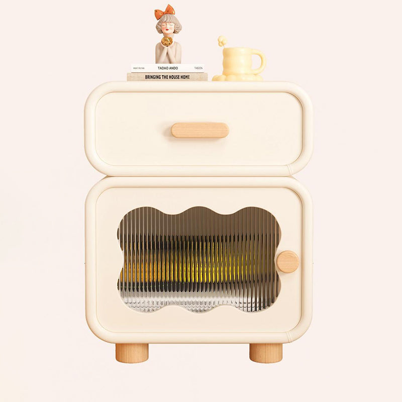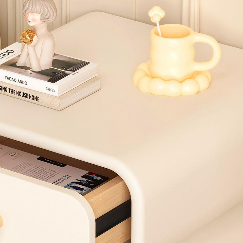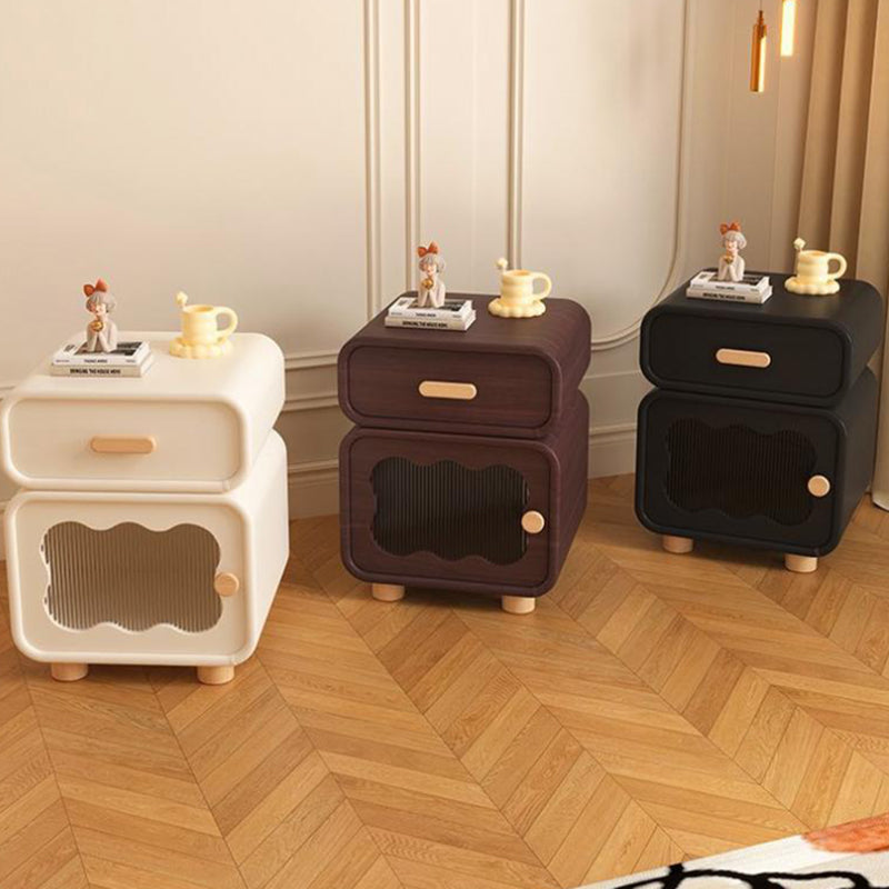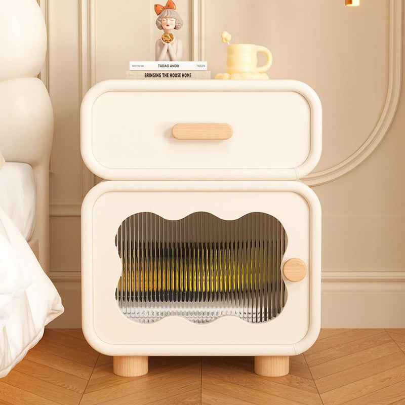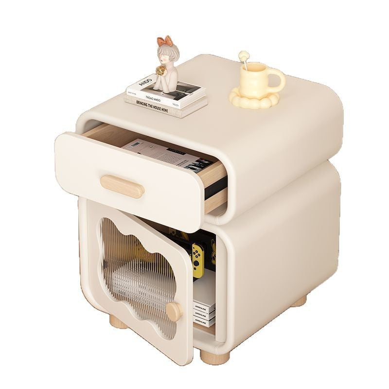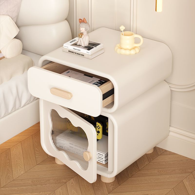 現代的な北欧風の波型長方形の無垢材多層ボード、マイクロファイバーレザー、ガラス製ナイトスタンド、寝室用引き出し1つ