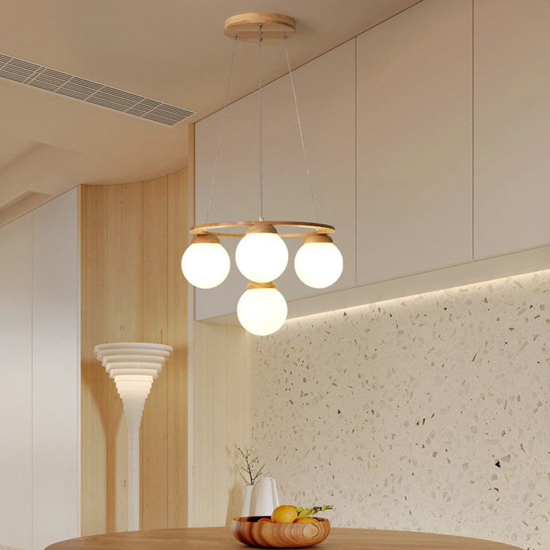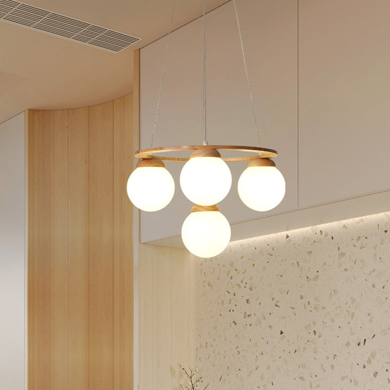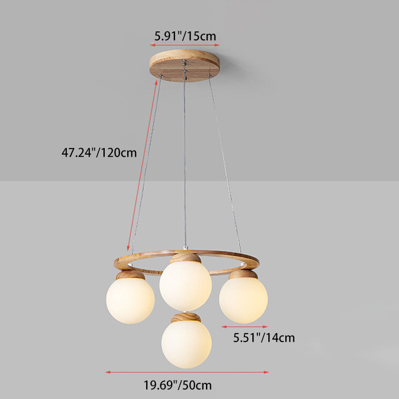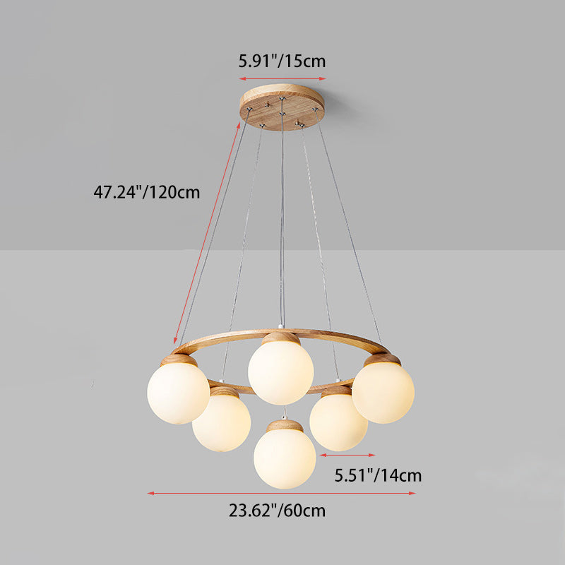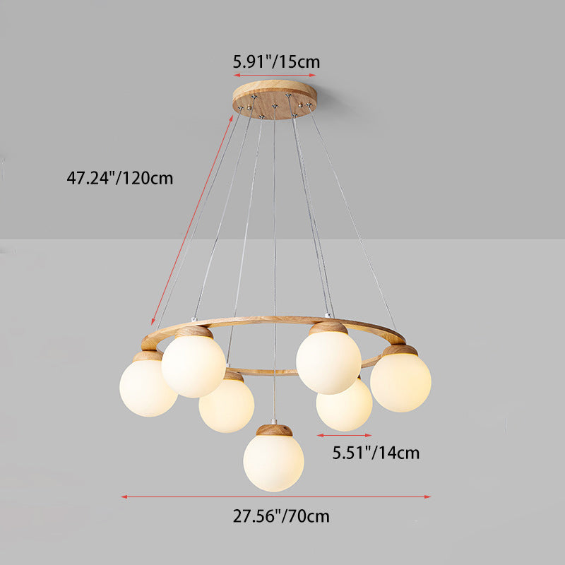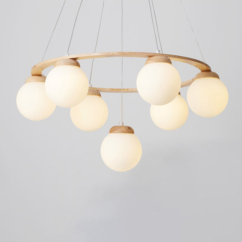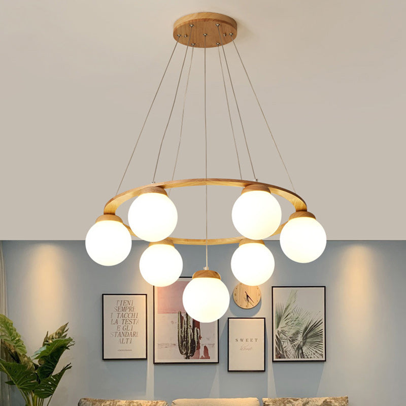寝室やリビングルームに最適な、現代的な北欧風木製鉄製ガラス製ラウンド型4/6/7灯シャンデリア