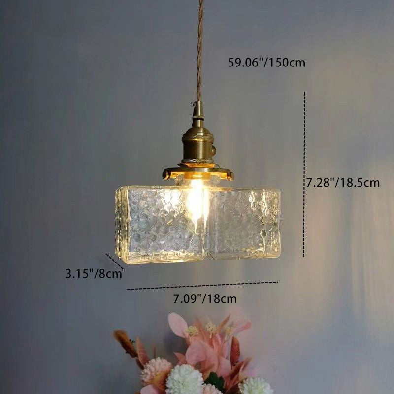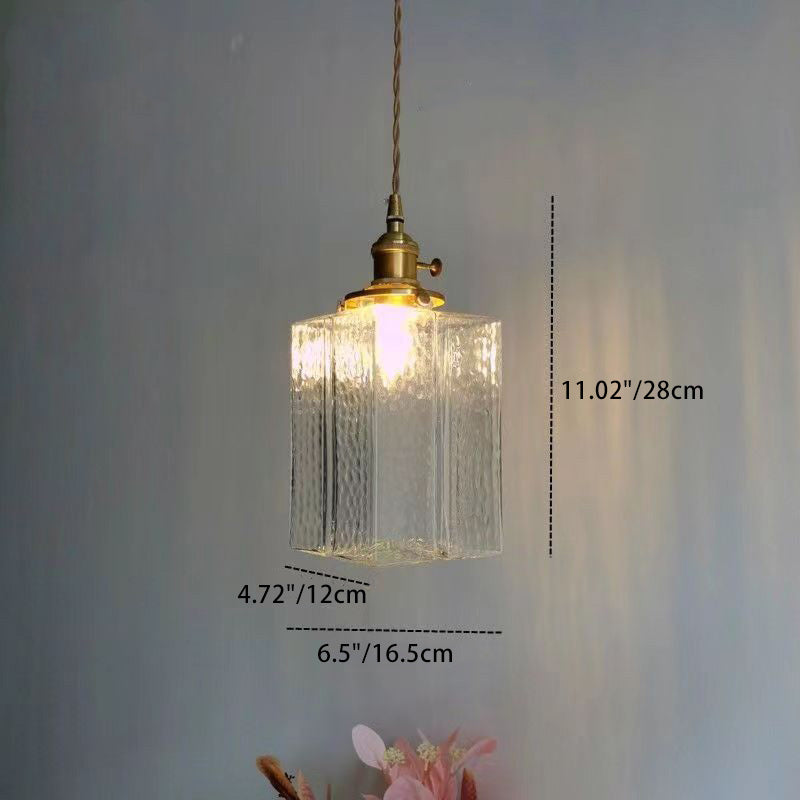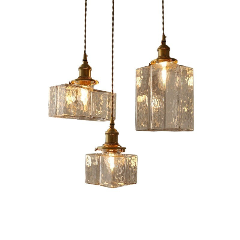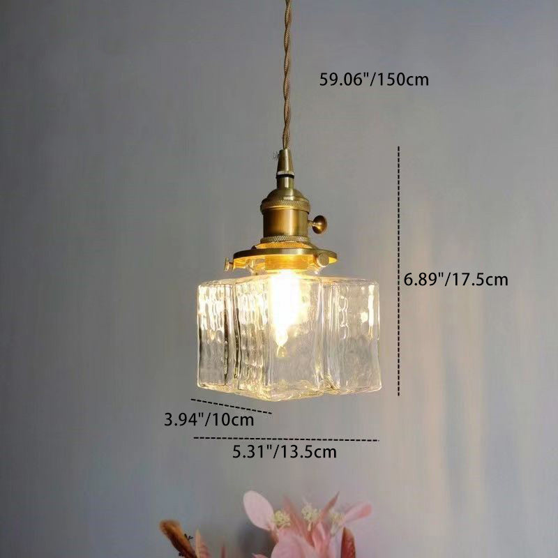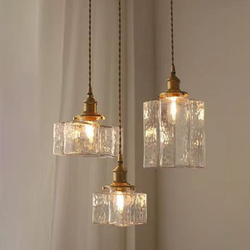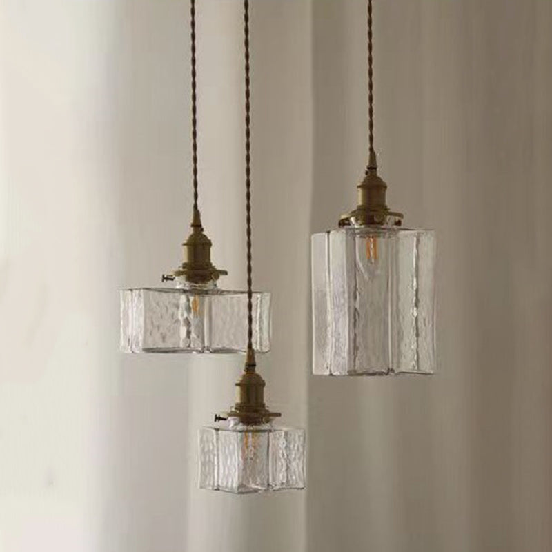 ダイニングルームに最適な、現代的なレトロ真鍮と鉄ガラスのシリンダーキューブ型1灯ペンダントライト