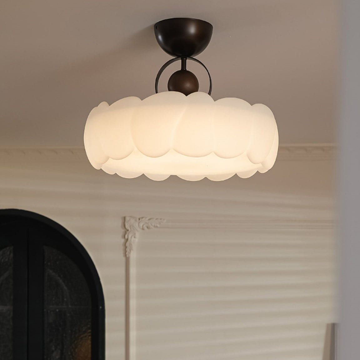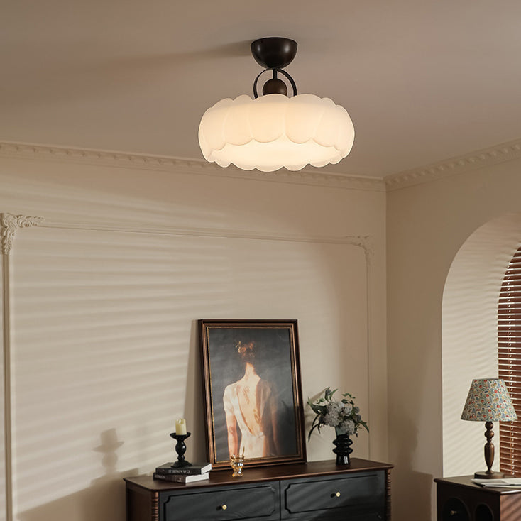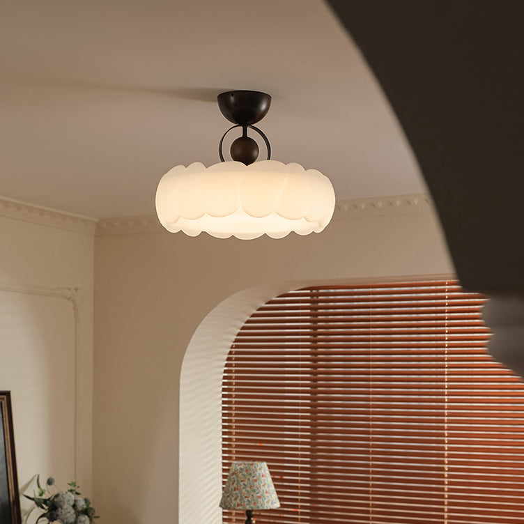 寝室用 モダンレトロクラウドドームアイアンアクリルLEDセミフラッシュマウントシーリングライト
